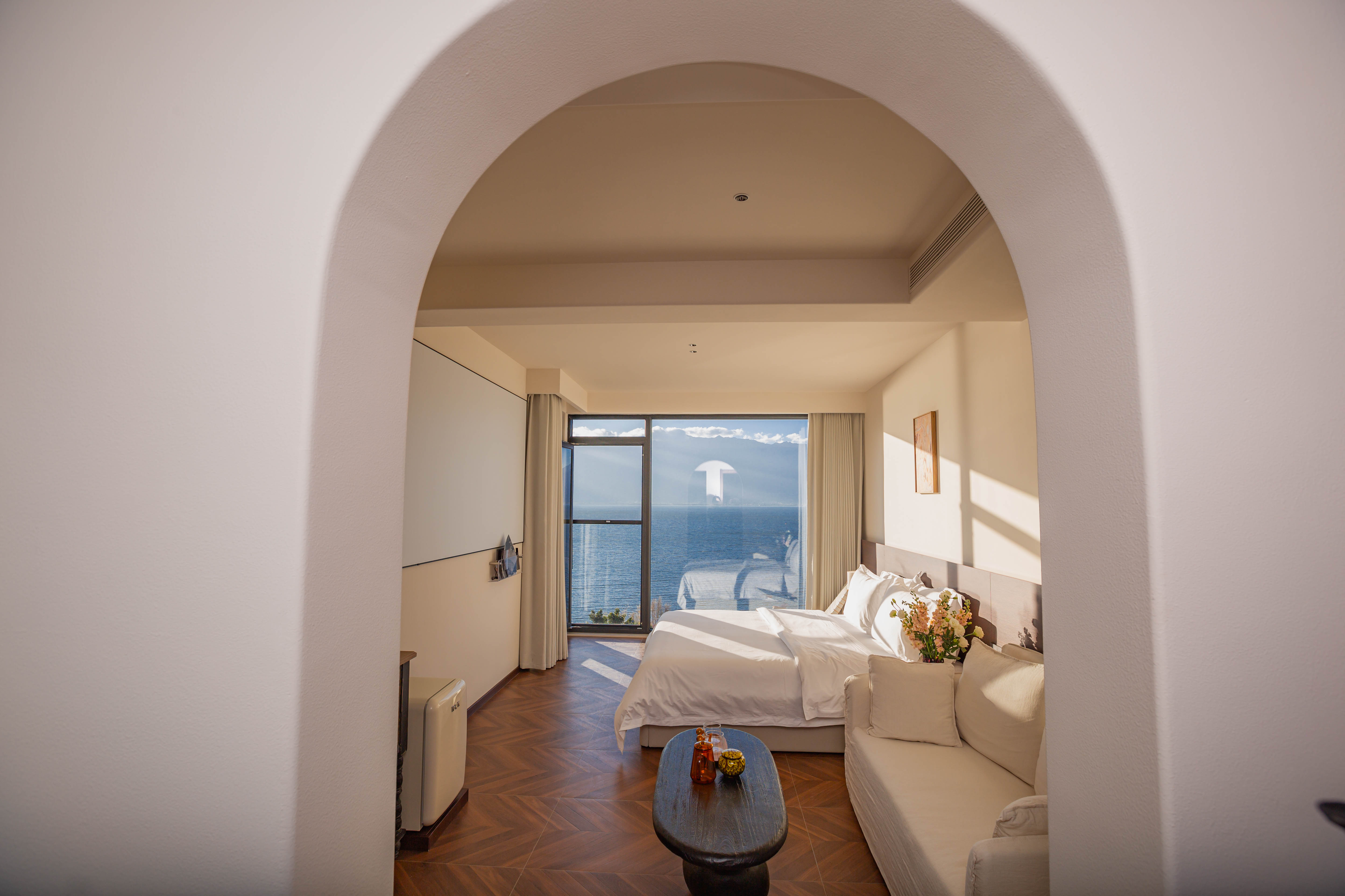 瀾溪·180°海景雅緻大床房【100寸堅果投影+地暖空調軟水+小度全屋智能+金可兒床墊+漢斯格雅衞浴智能馬桶】