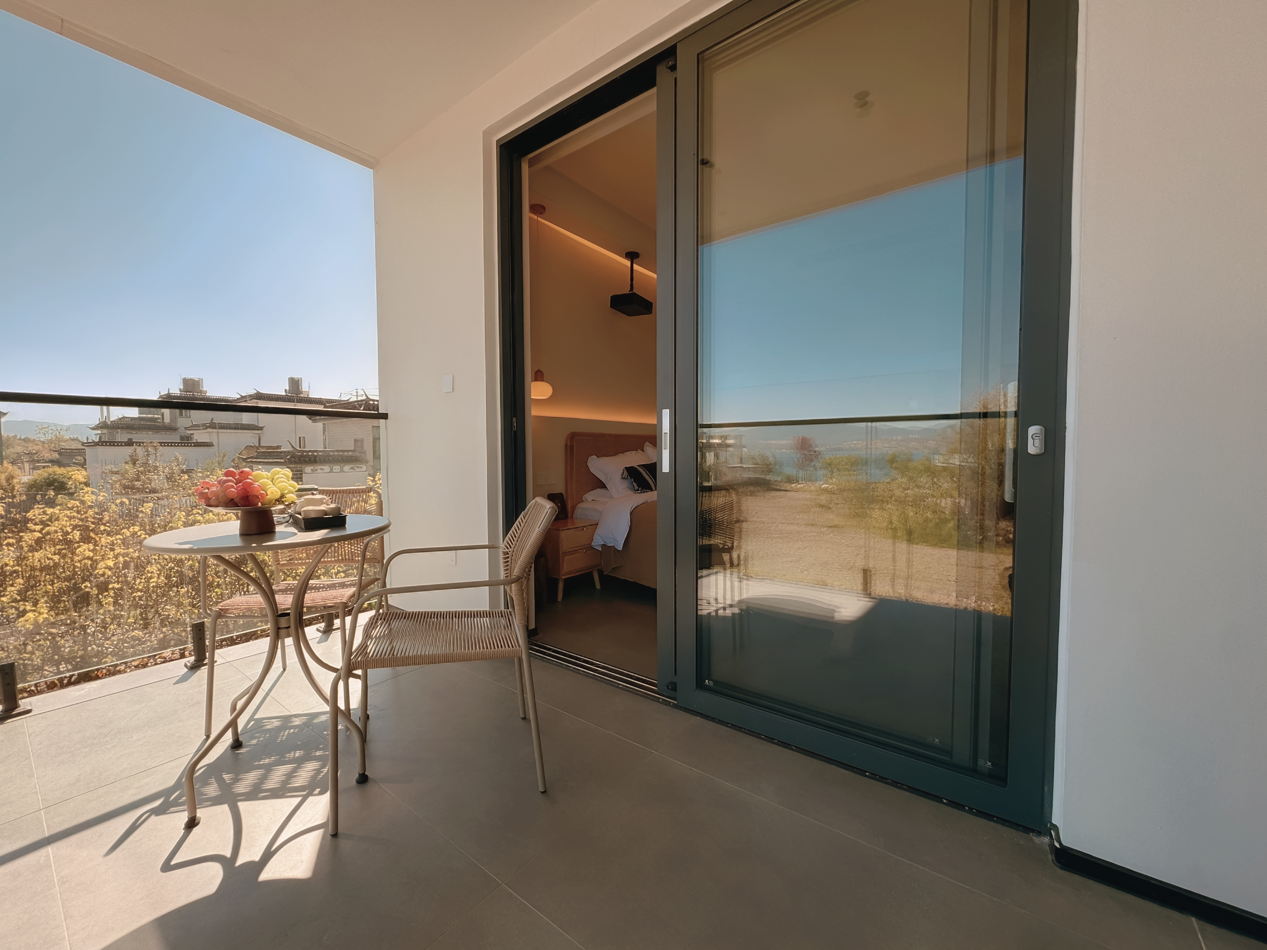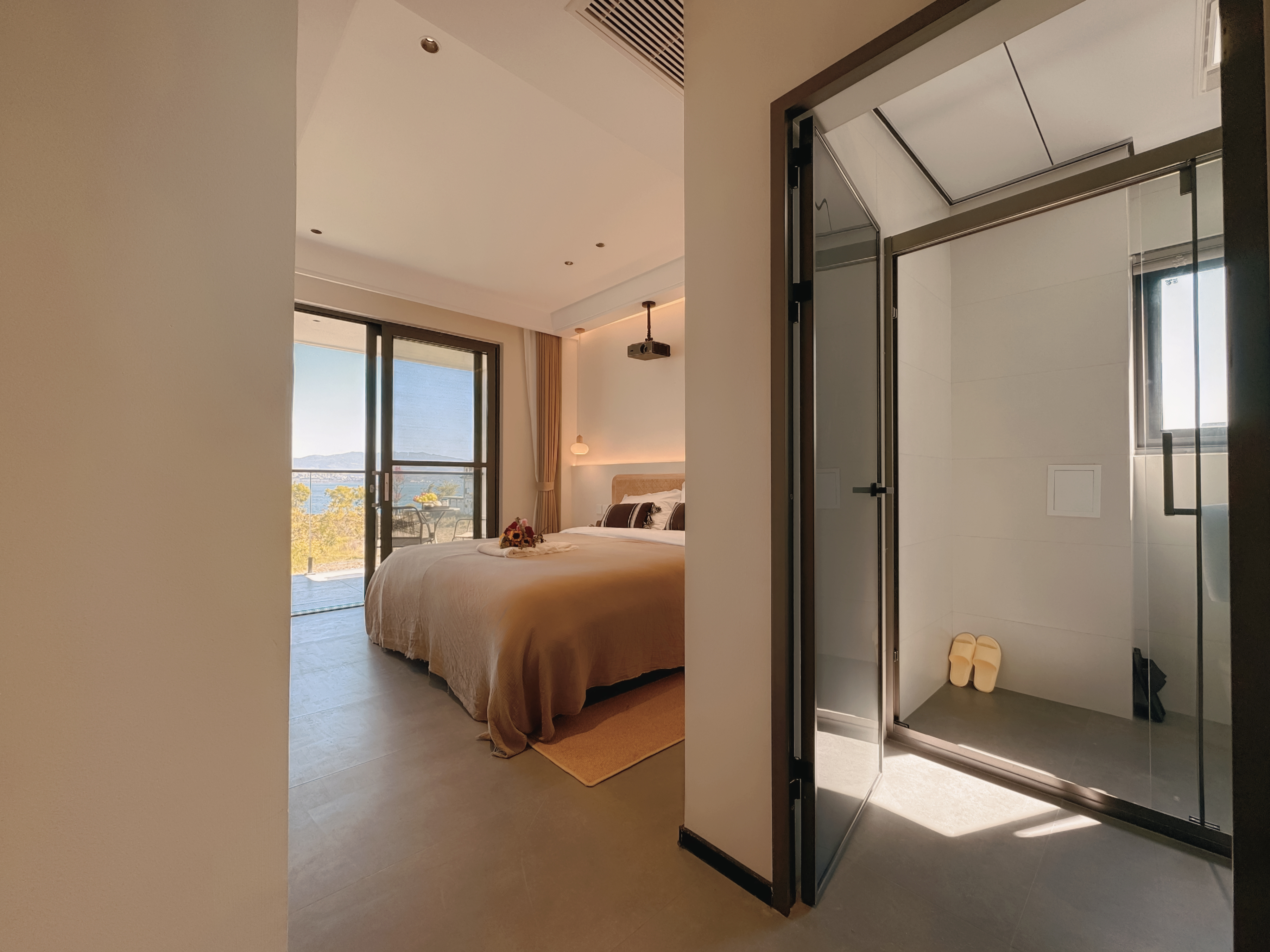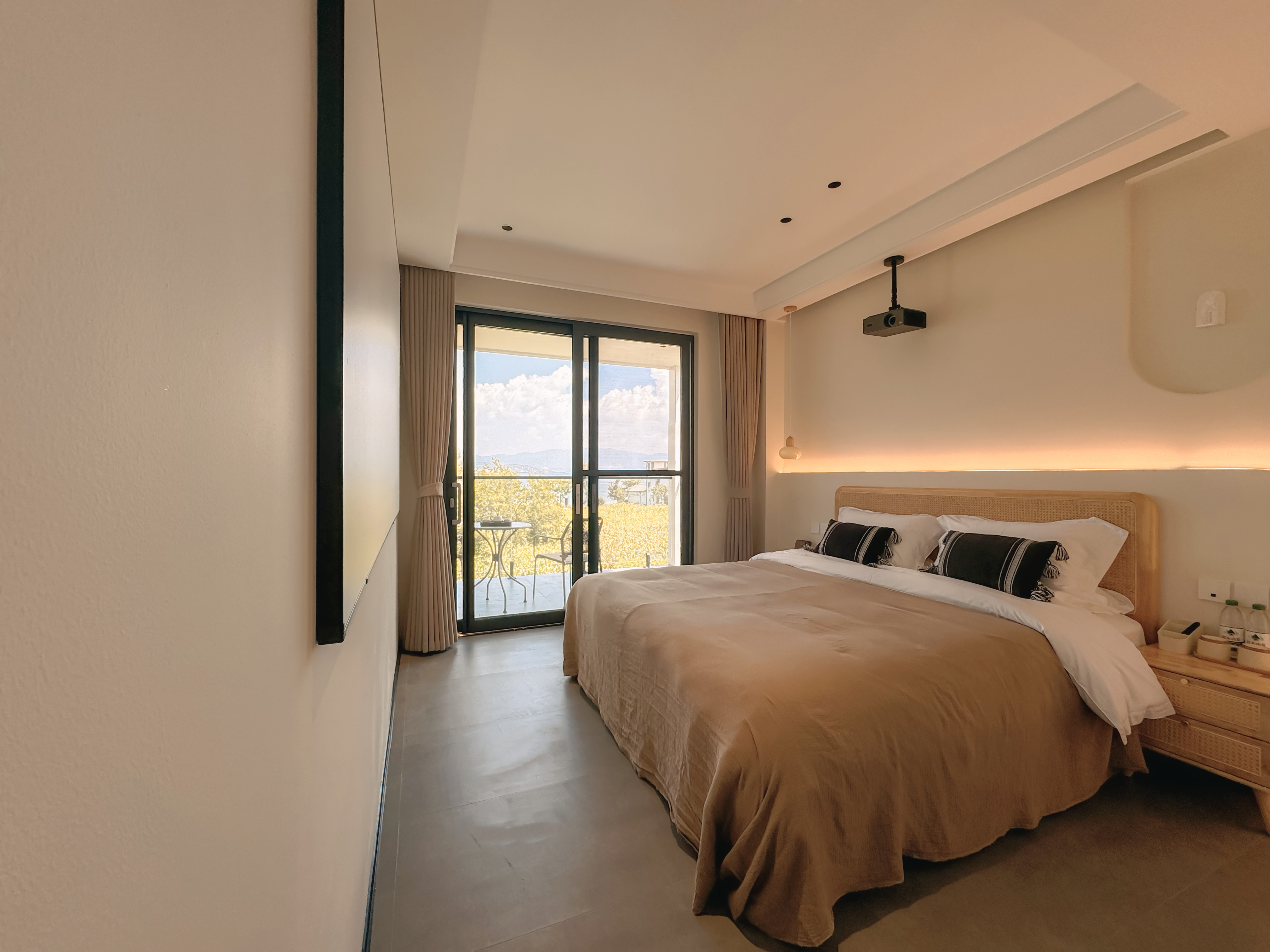 靜夜·日出陽台海景大床房|4K巨幕觀影|户外造型座椅|悠閑茶座|智能衞浴