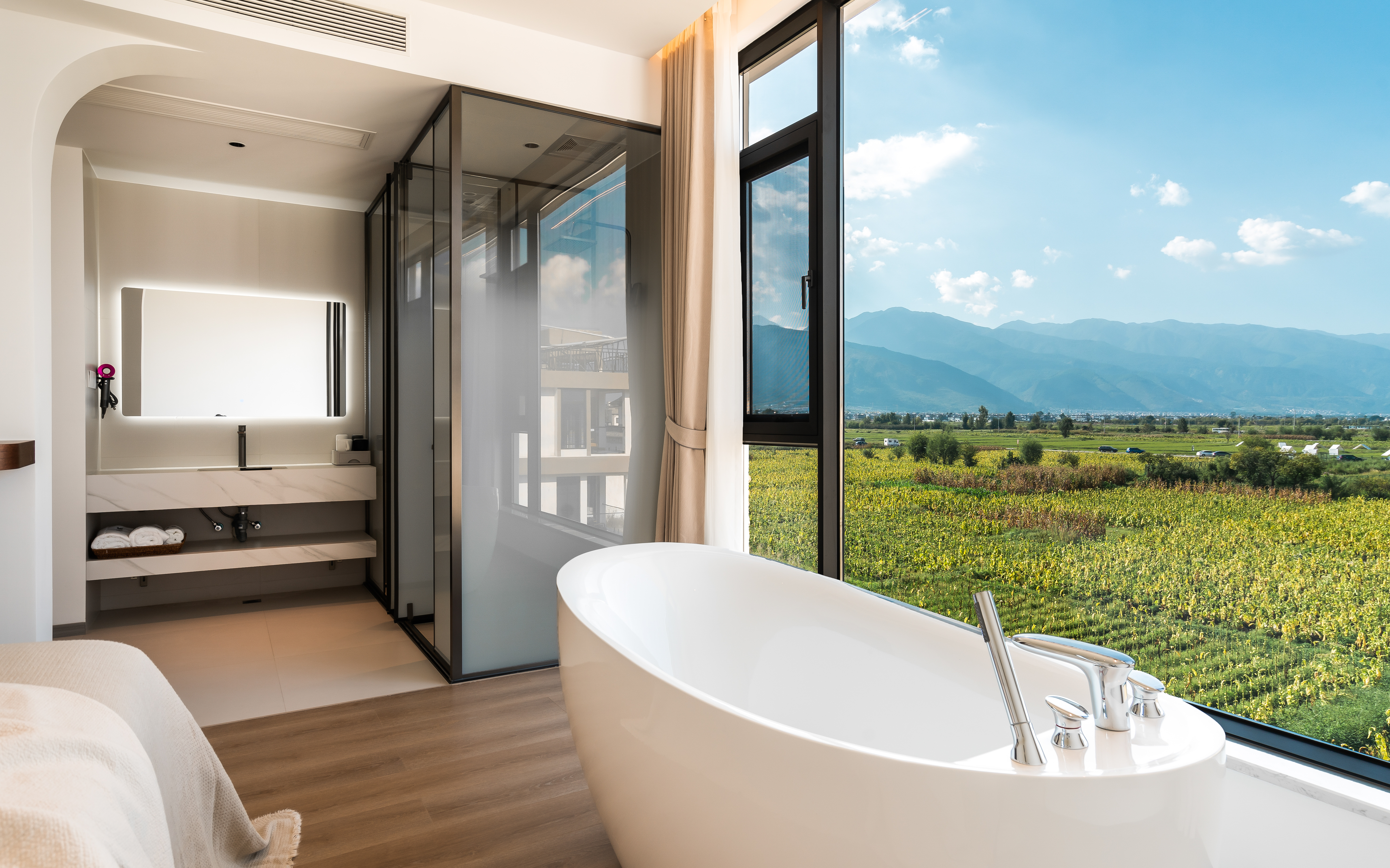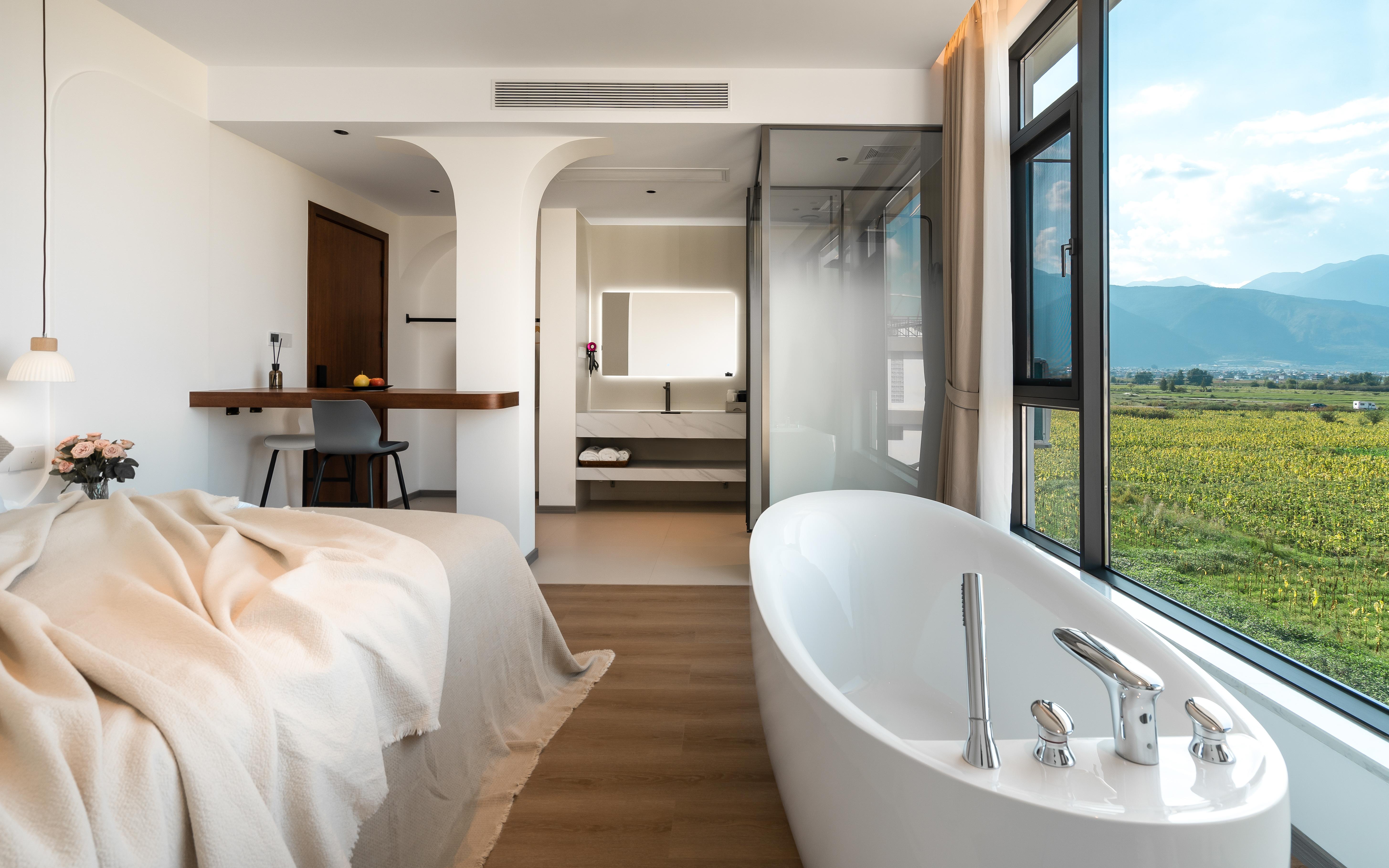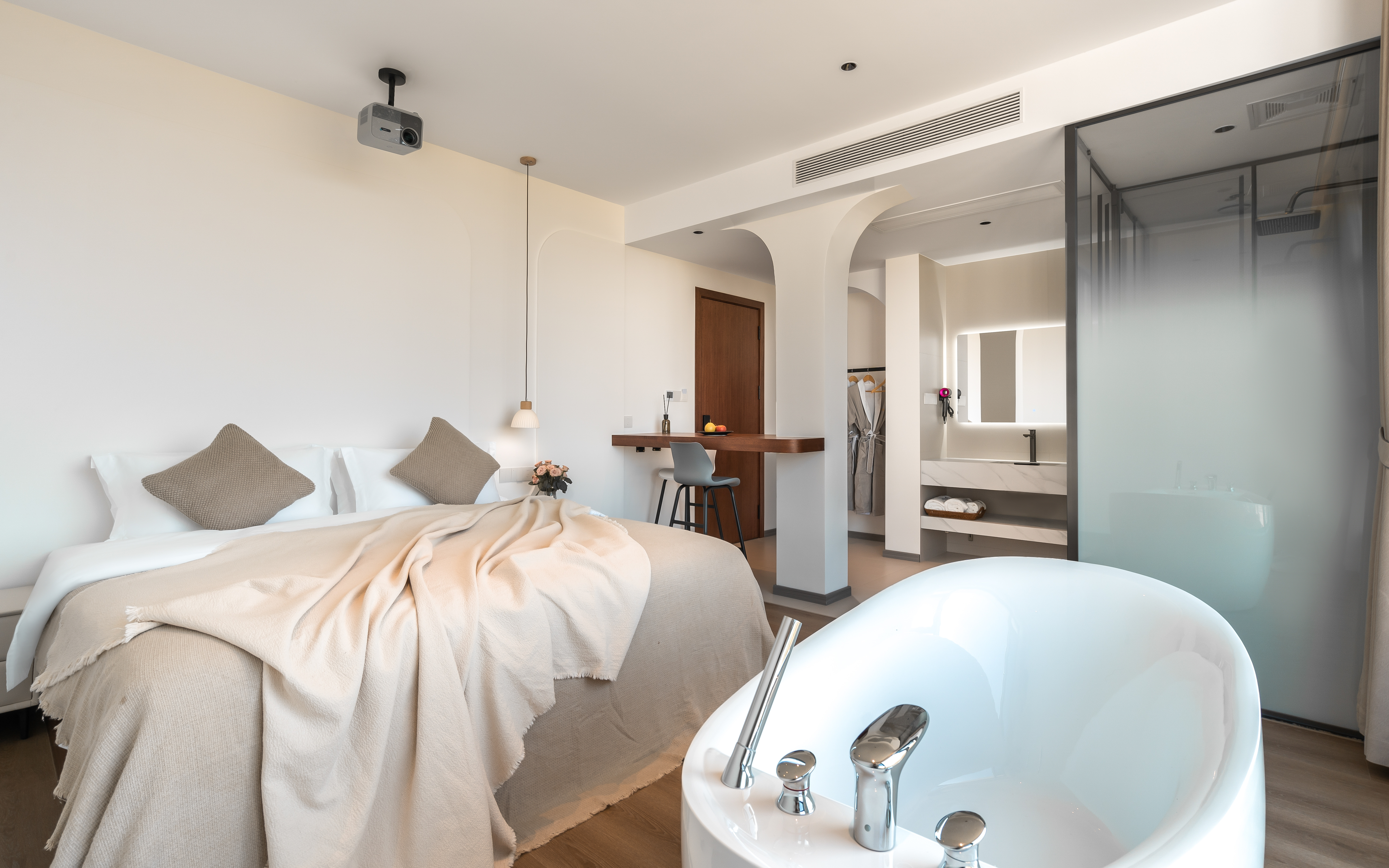 萇楚·大床房丨山景+百寸投影+浴缸+休閑椅+智能馬桶丨