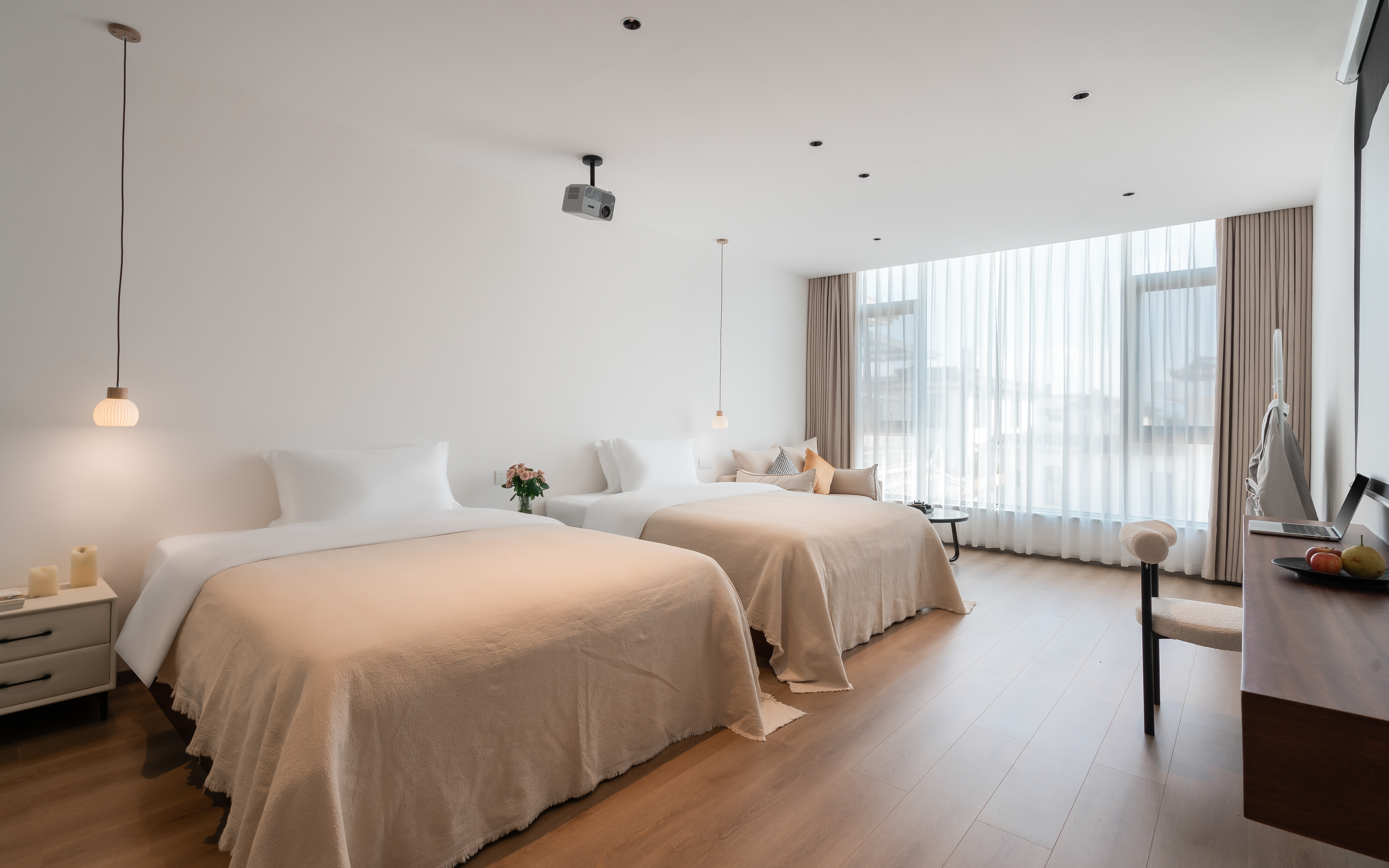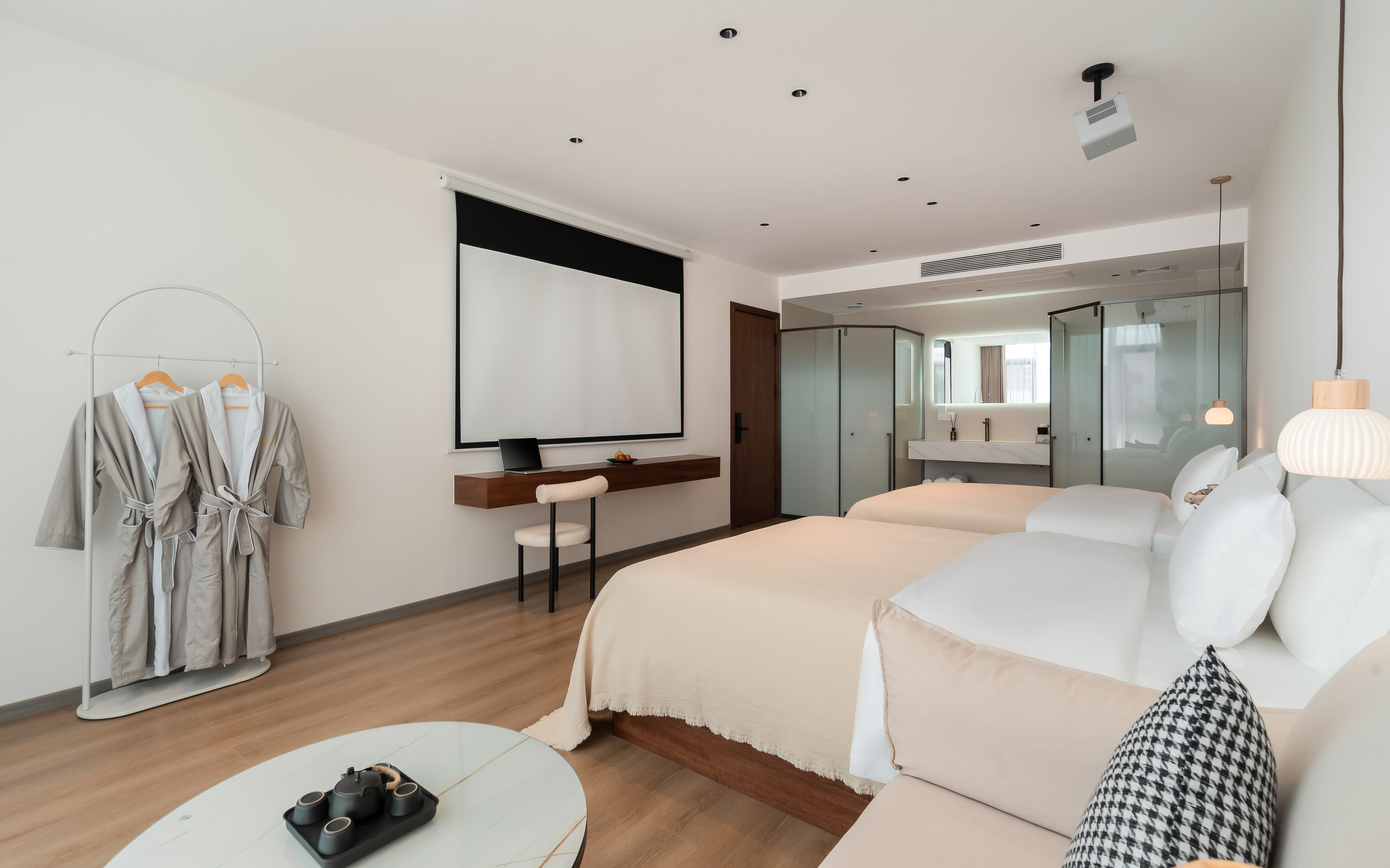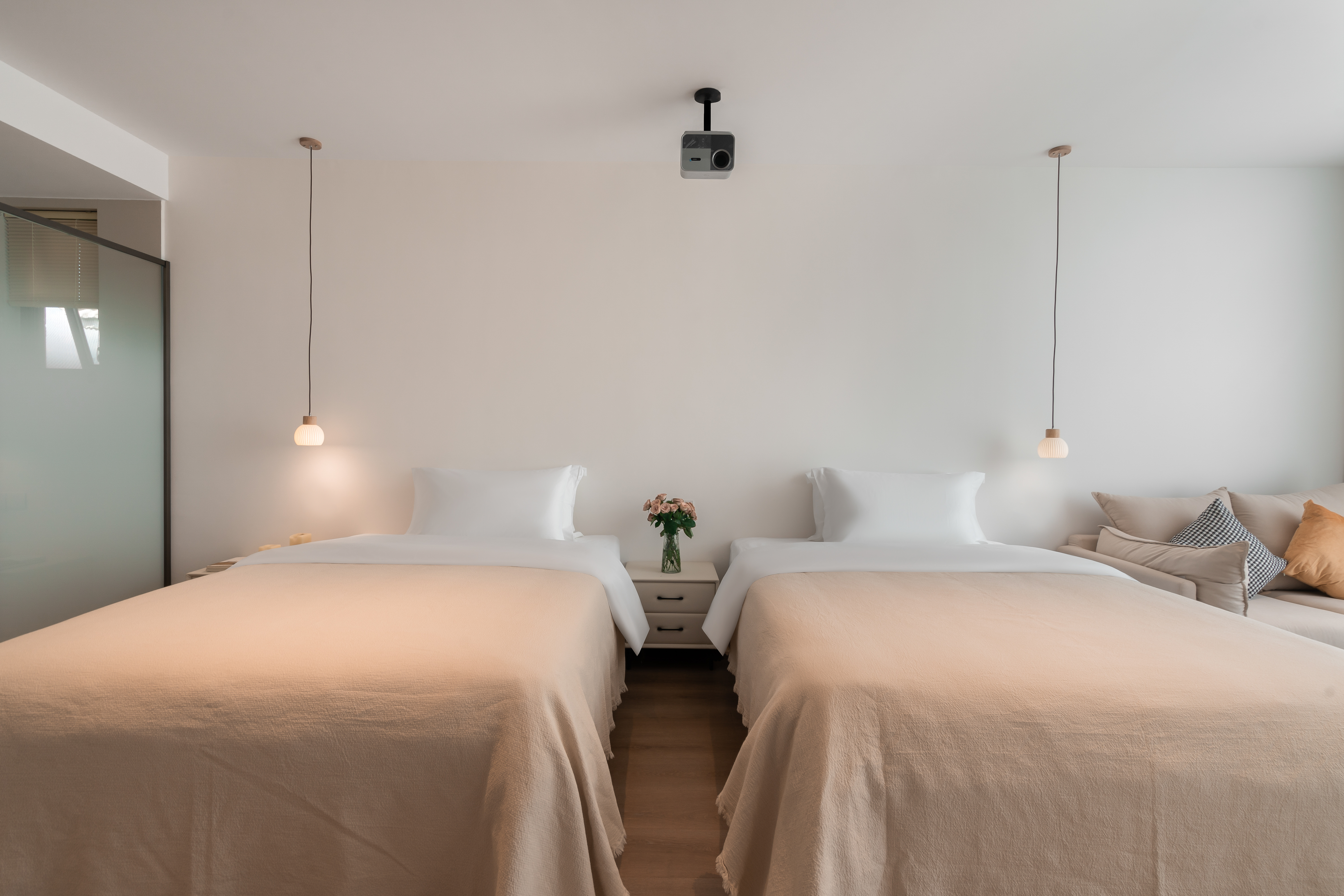 雲苓·雙床房丨百寸投影+休閑椅+智能馬桶丨