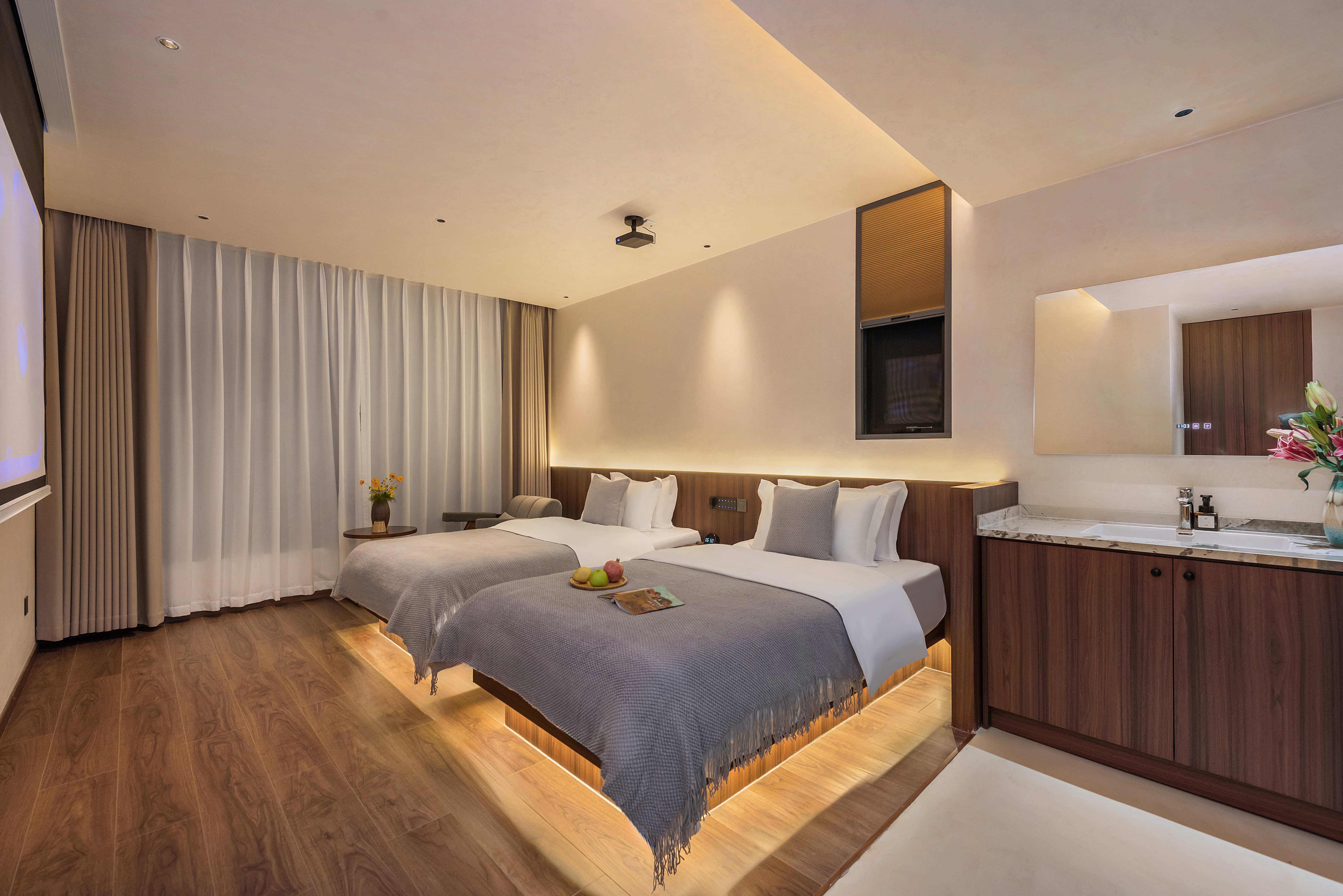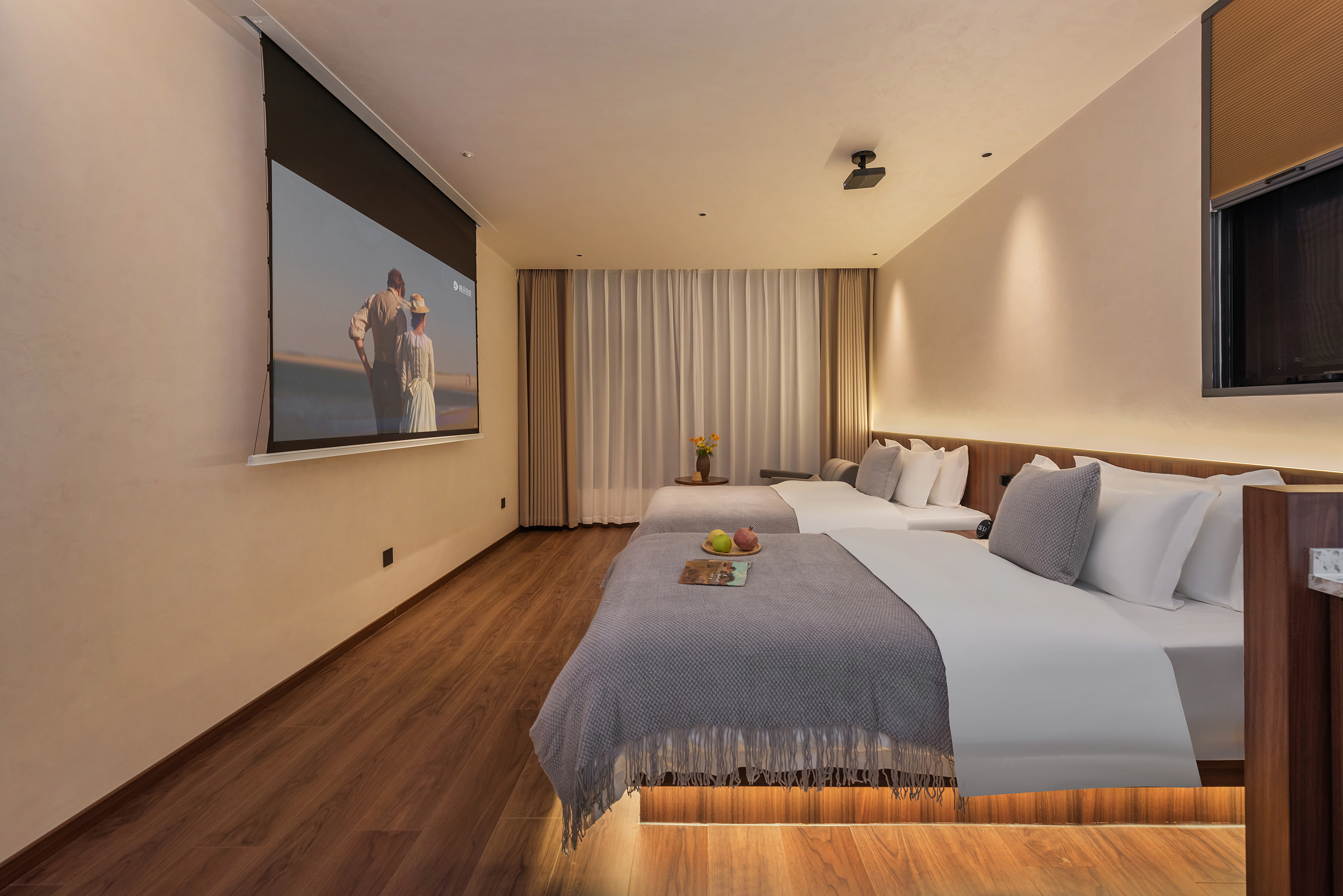 玖歌.投影智能豪華雙床房|高清投影|全屋智能|休閑座椅
