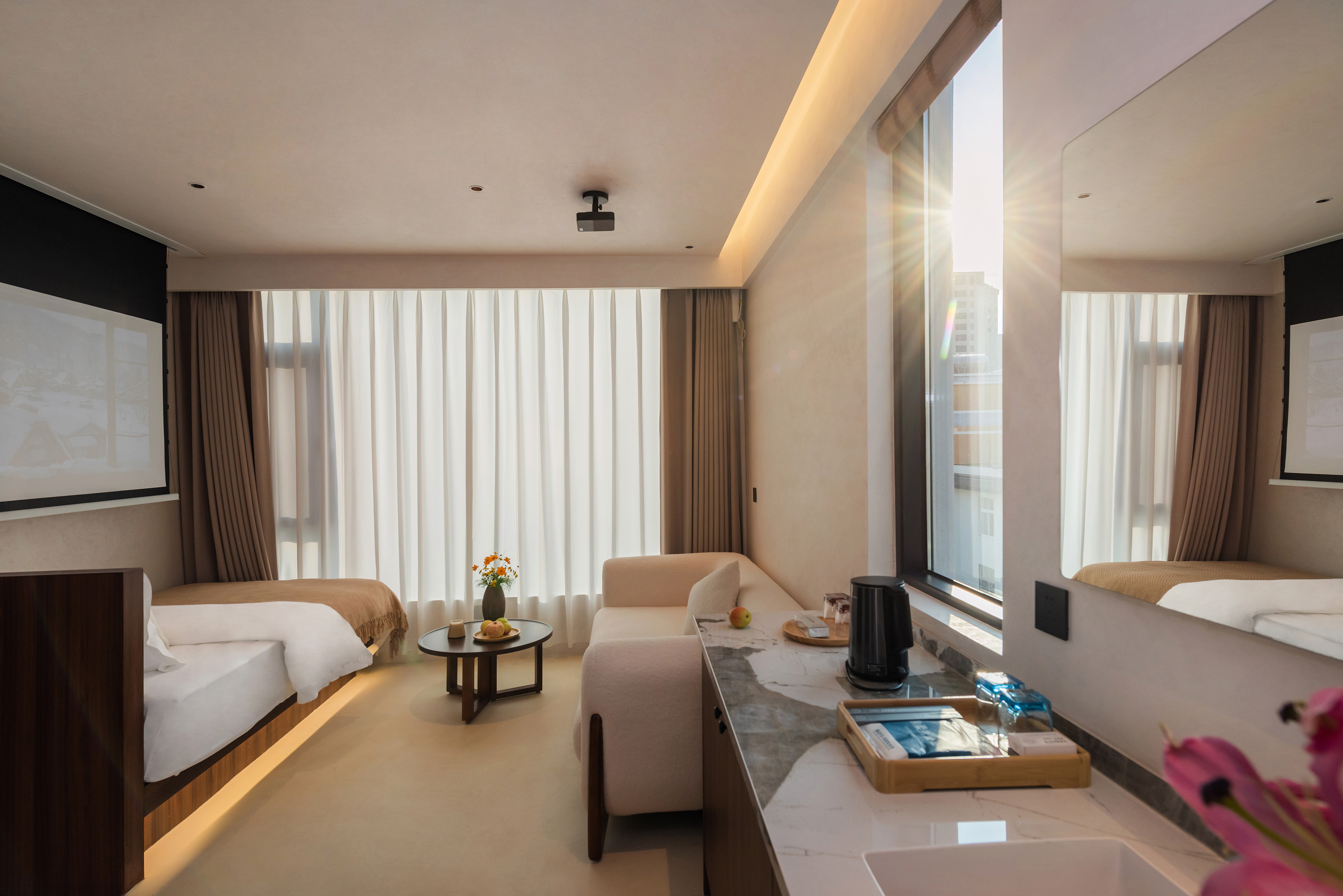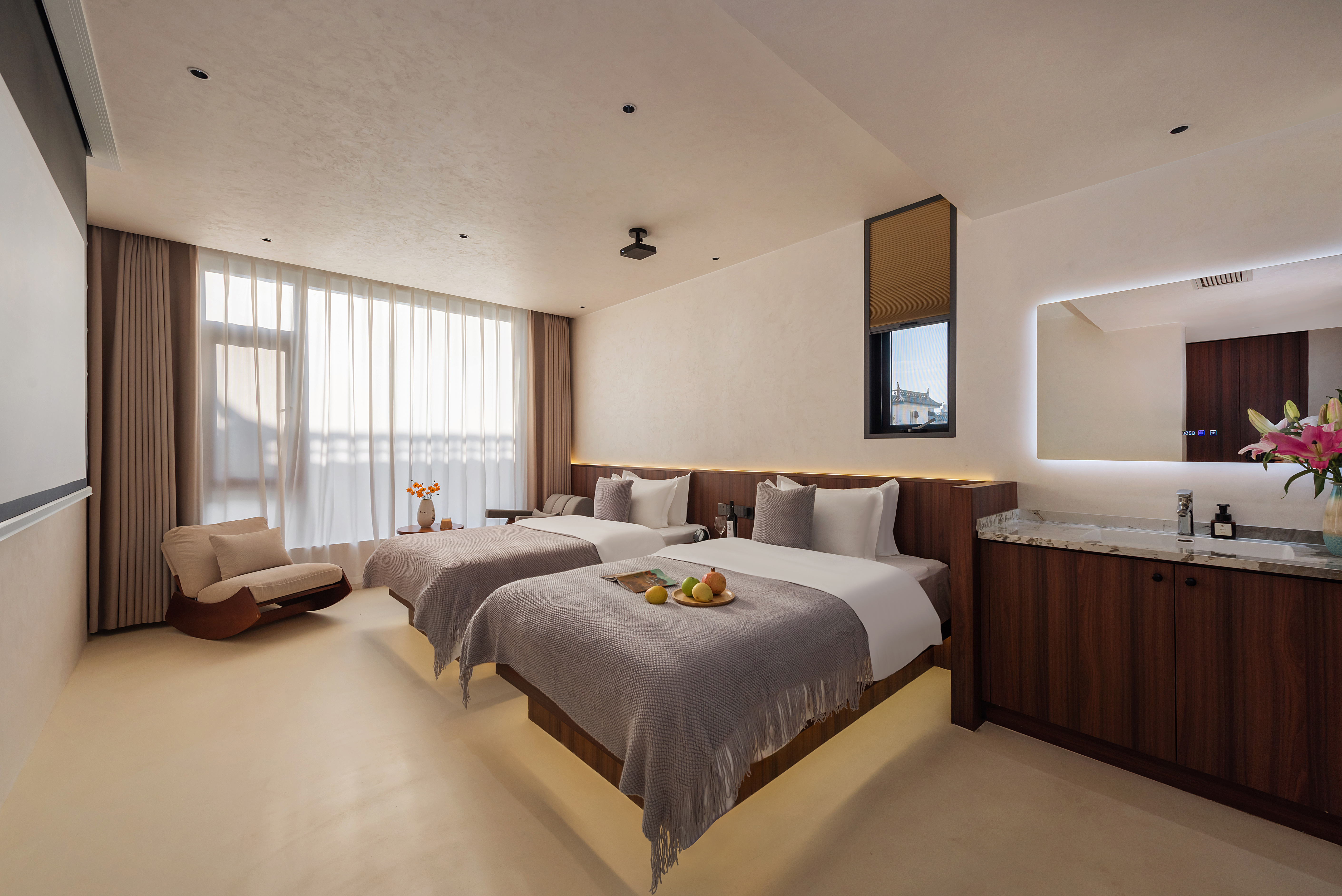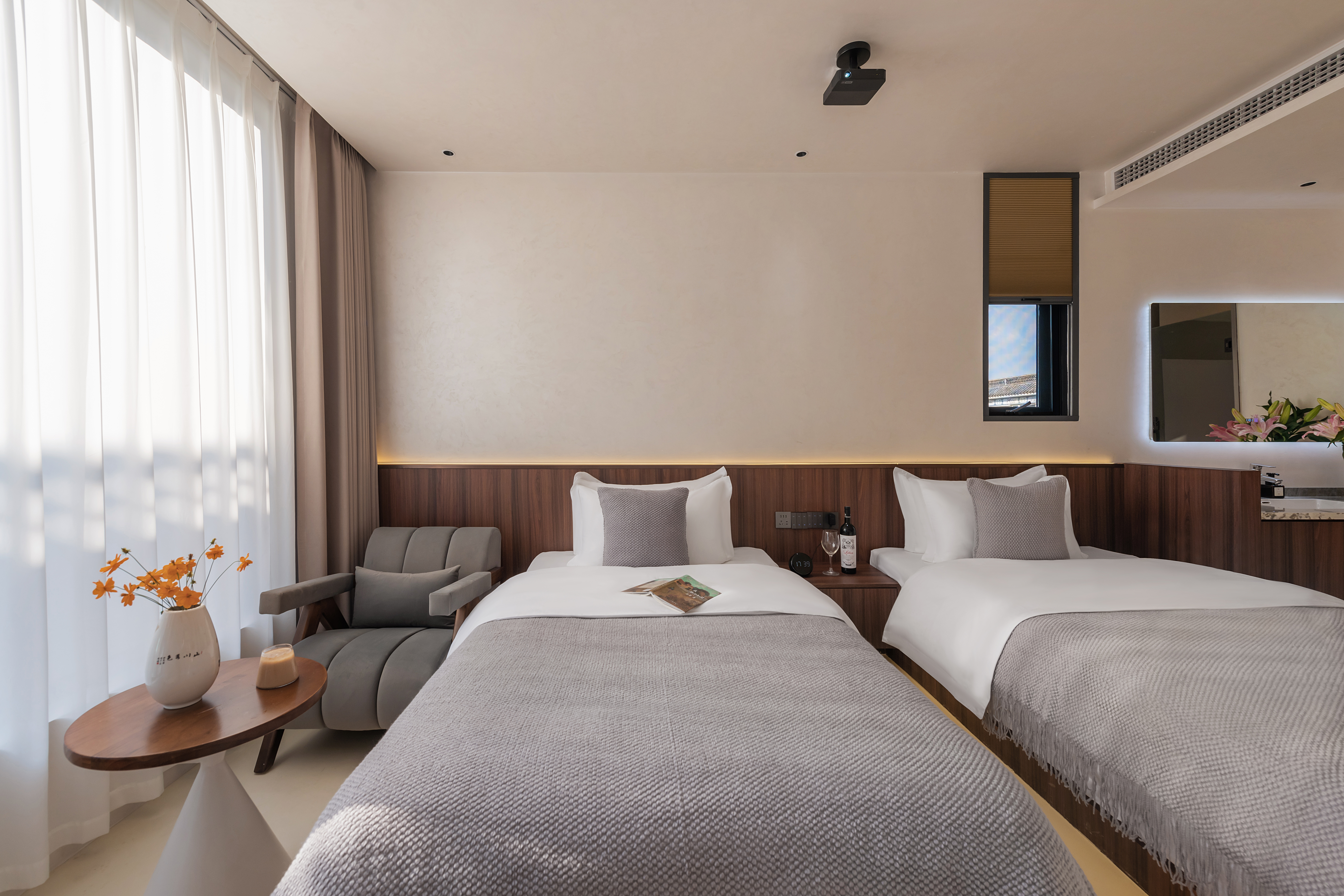 玖歌.投影智能豪華雙床房|高清投影|全屋智能|休閑座椅