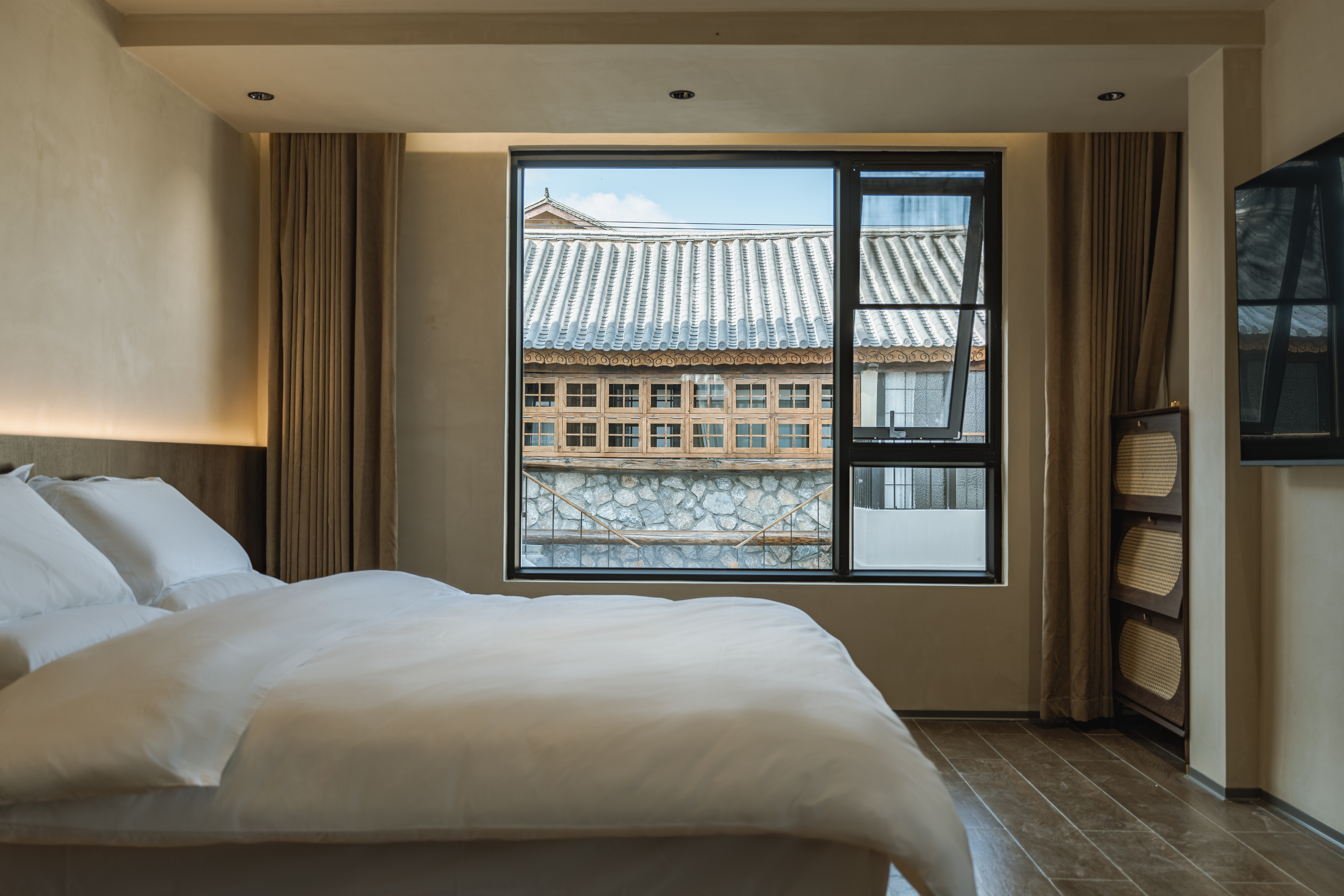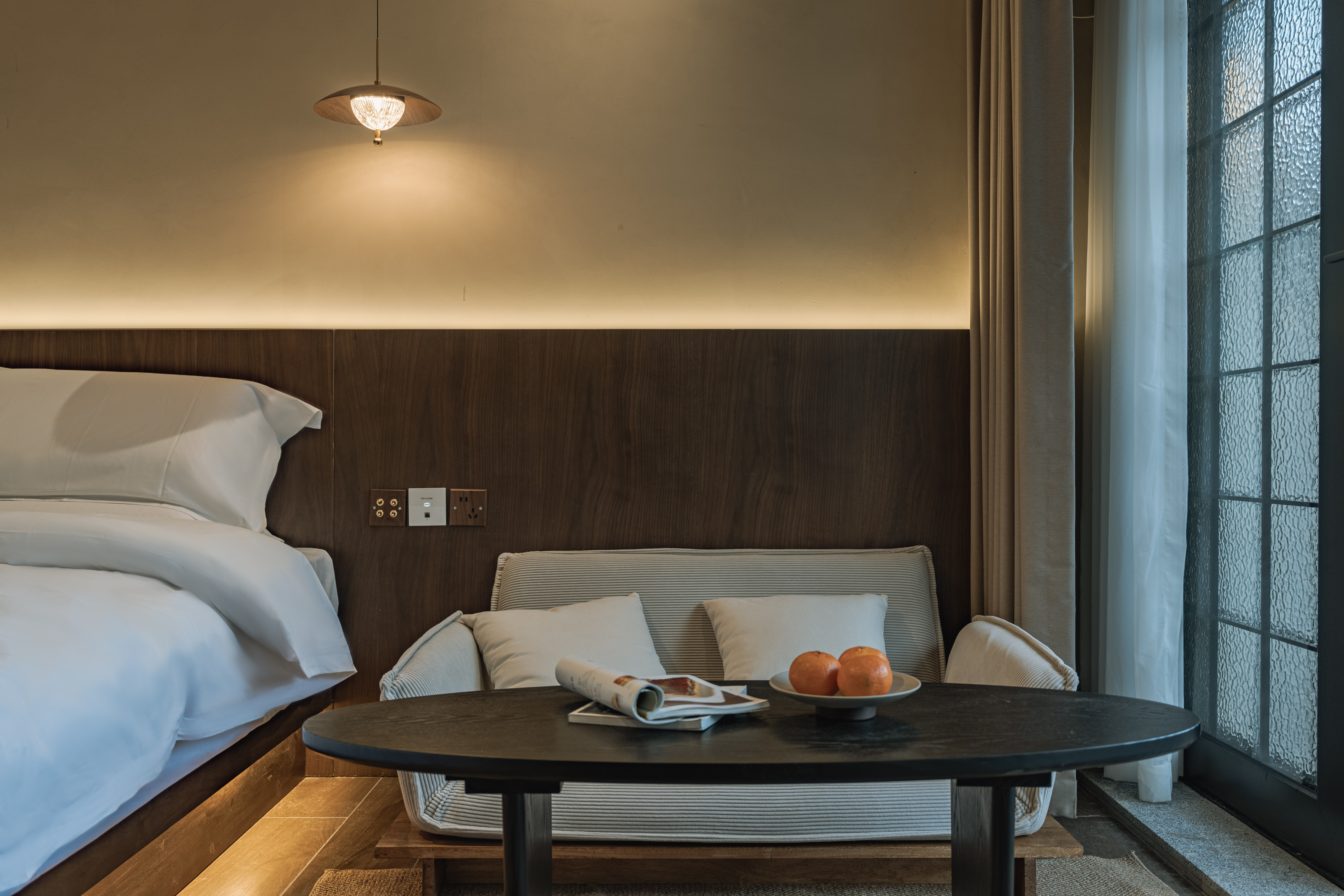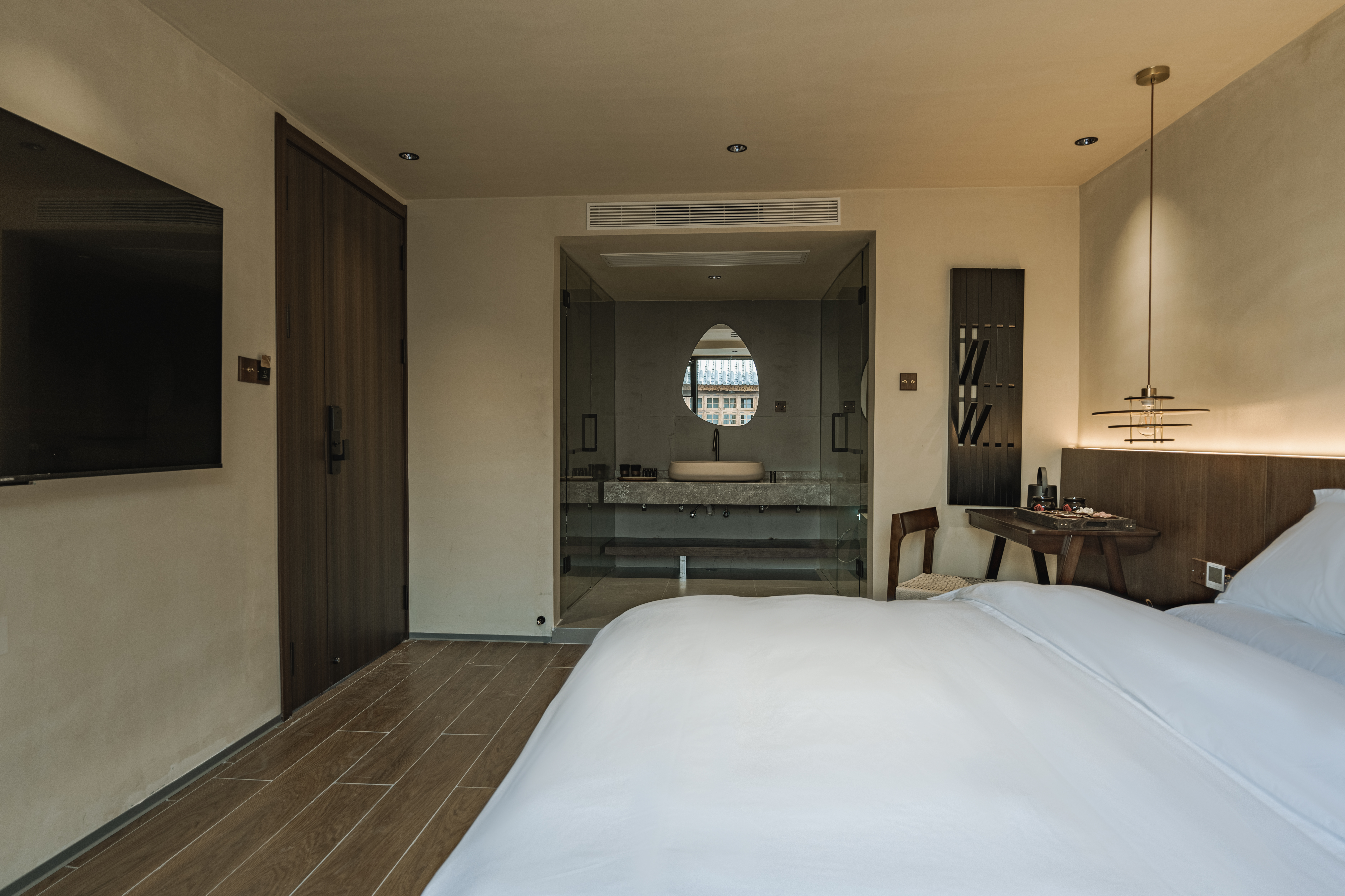 园景大床房【落地玻璃飘台朝着花园、中央空调】