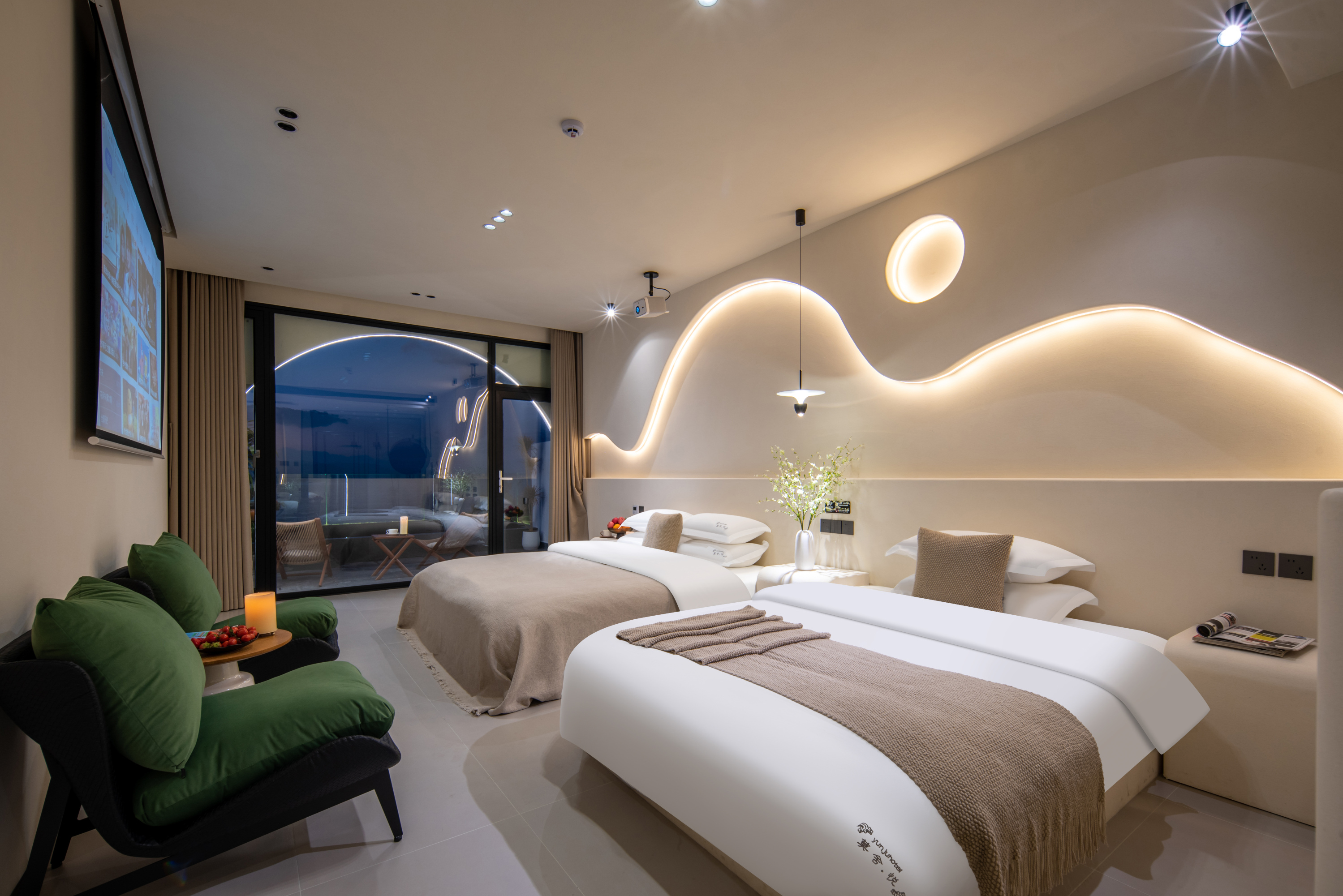 莫舍180度正海景超大陽台觀景家庭[巨幕投影.藍牙音箱]