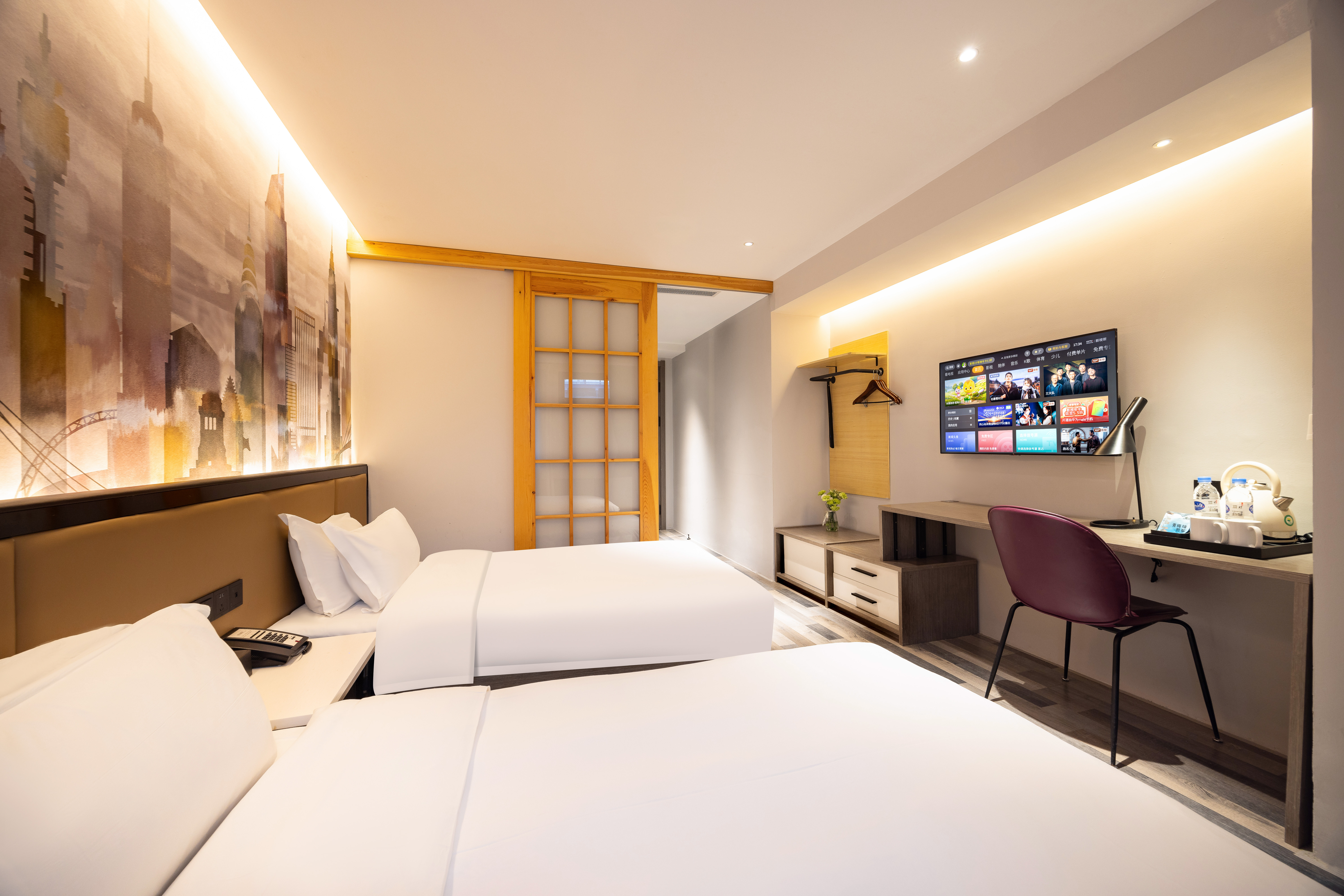 清雅·双床房丨斯得福羽绒被+AS品牌衞浴+办公桌椅