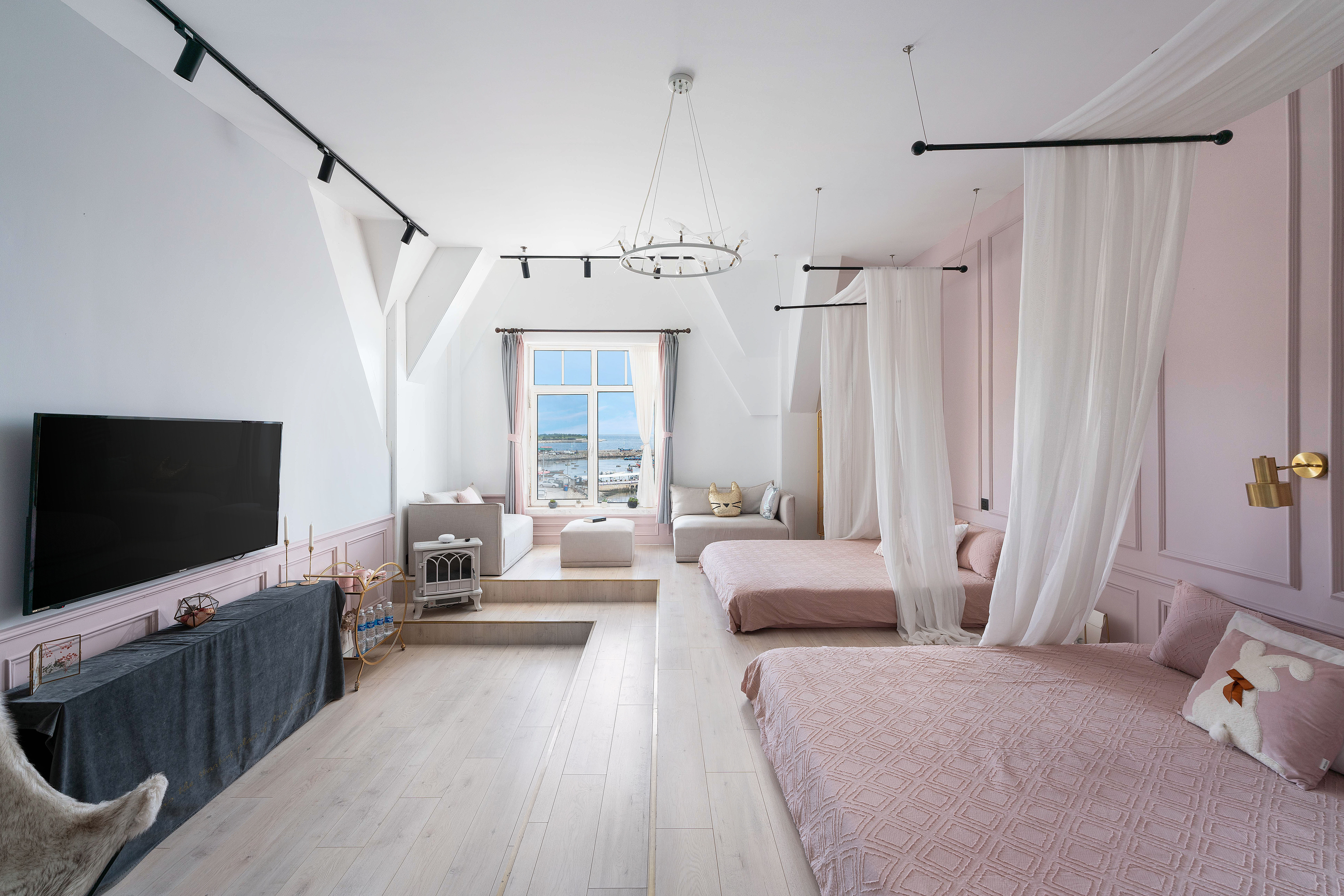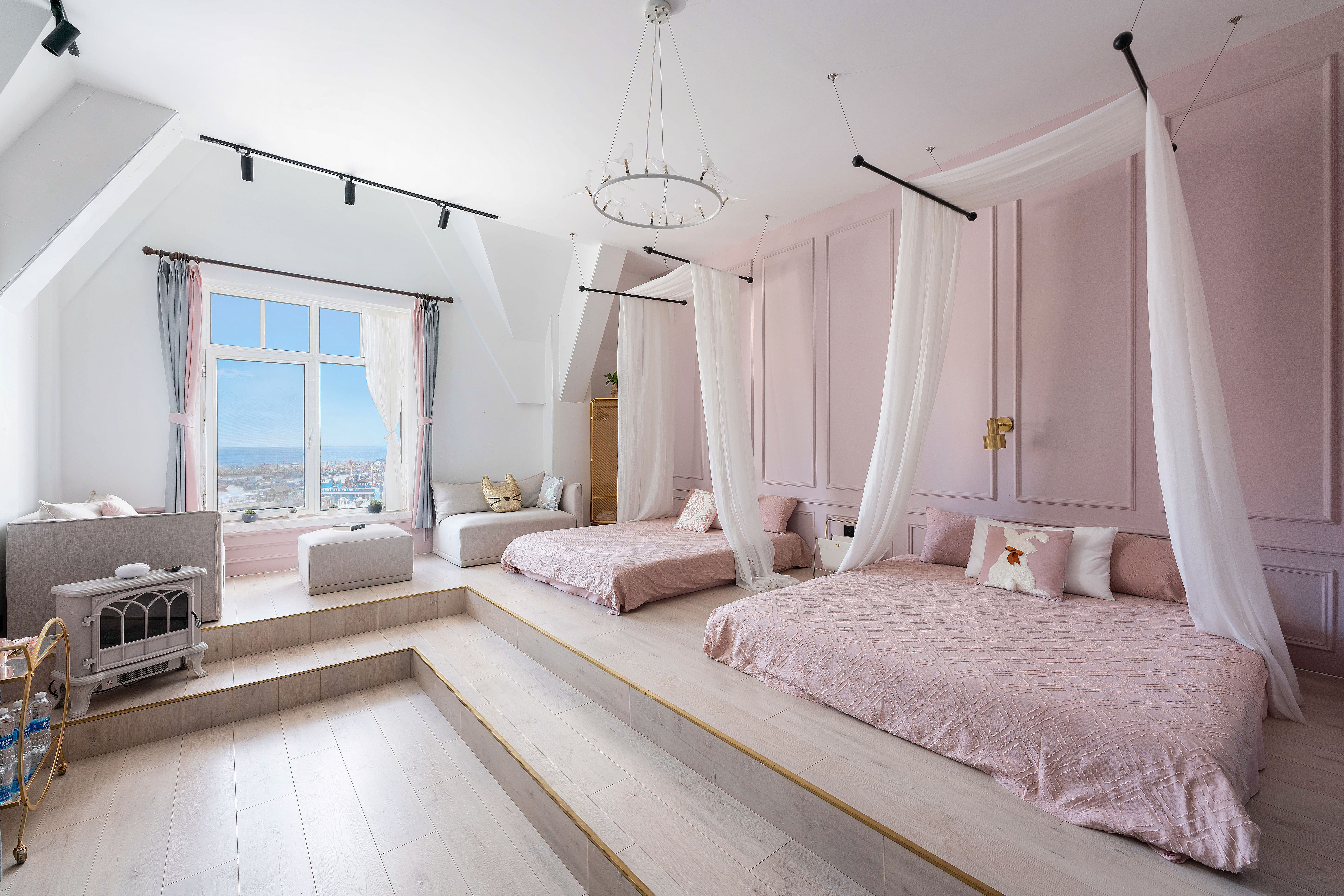 蜜糖·甜腻可爱闺蜜双床海景公主房