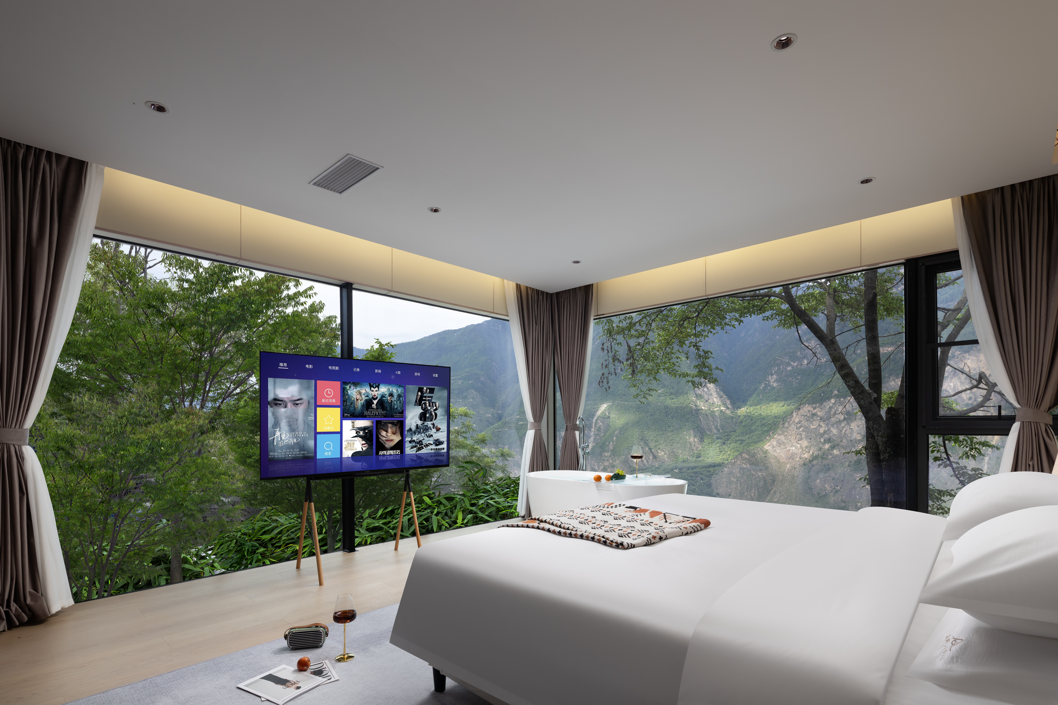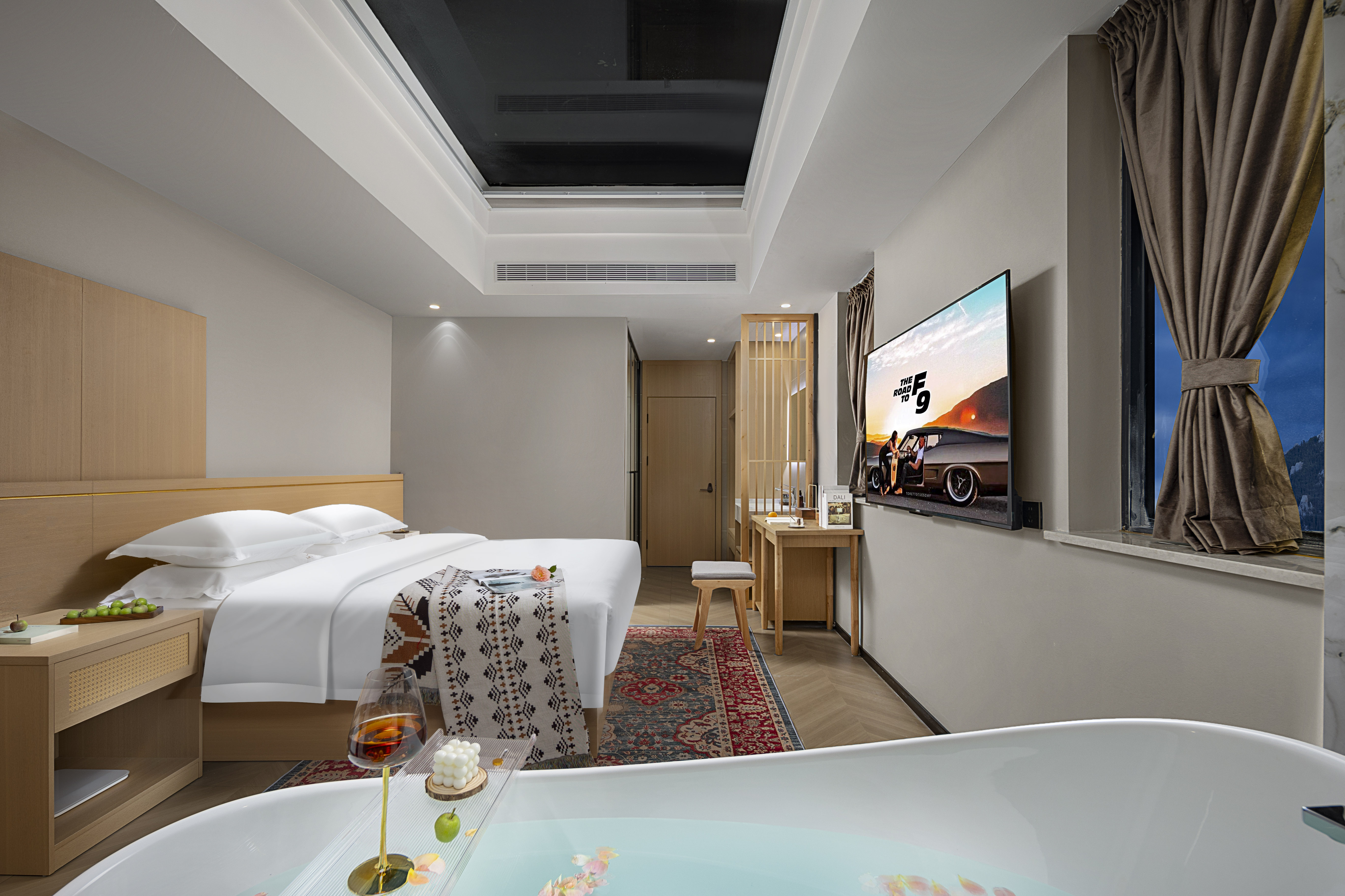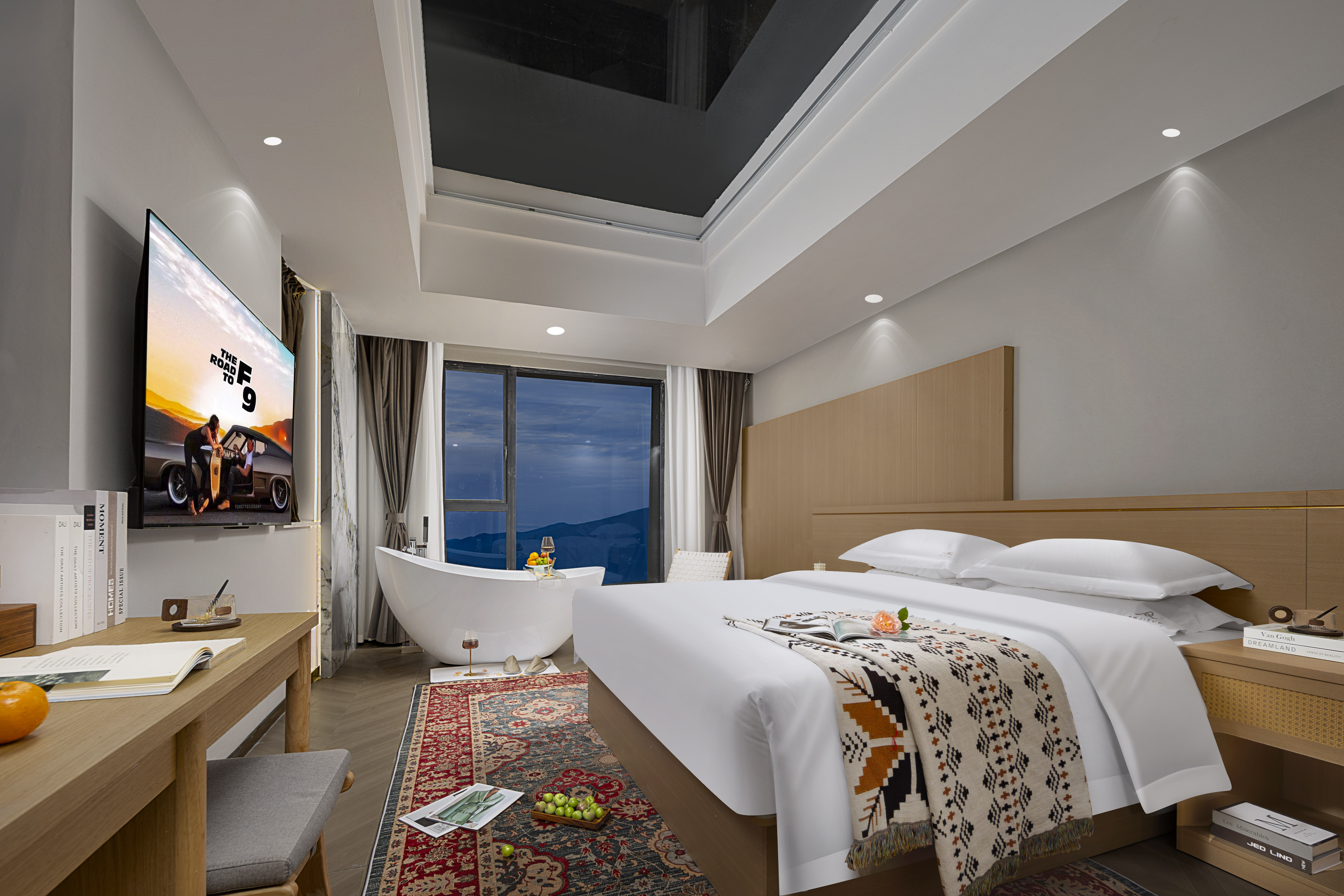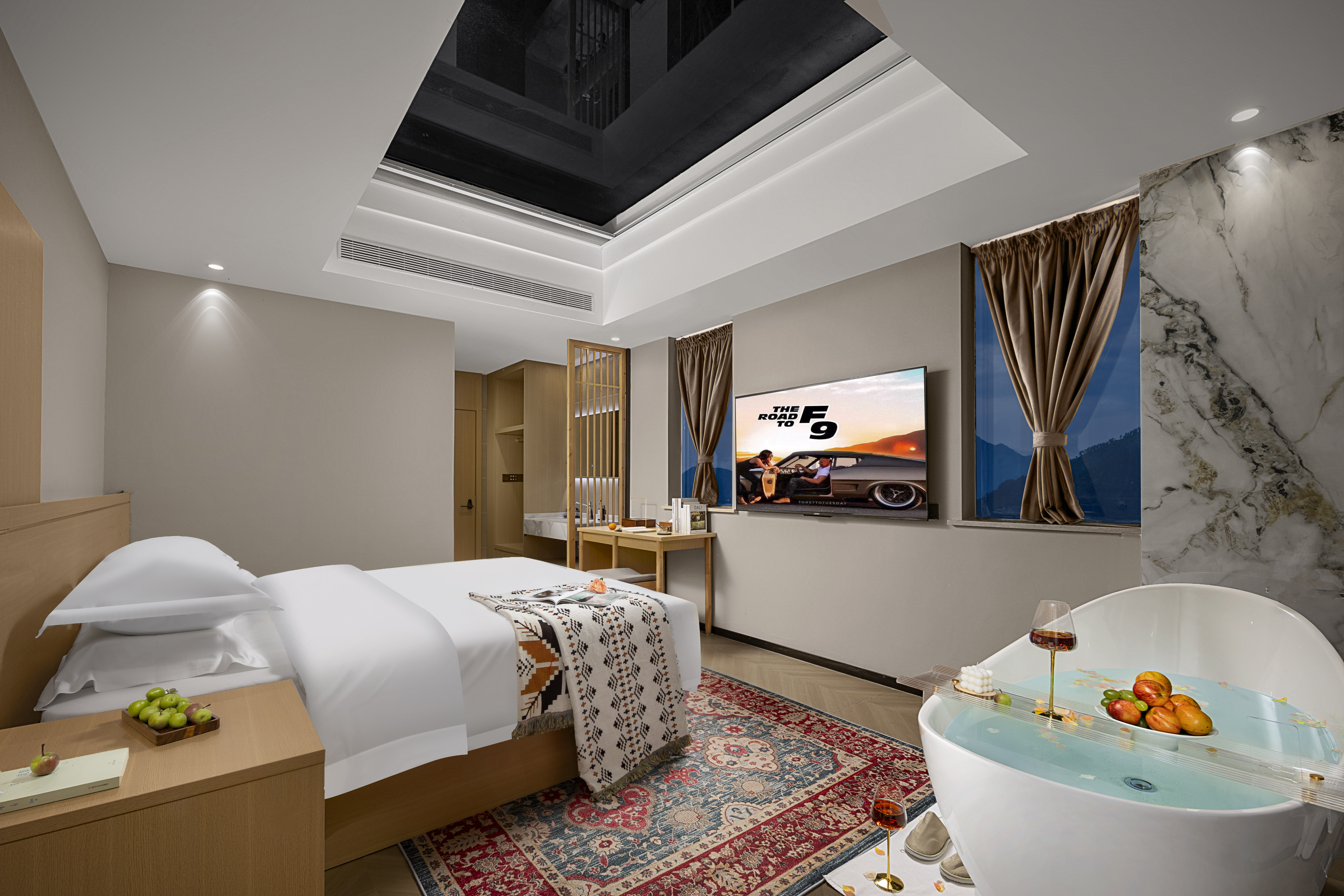 一览梦幻星空大床环绕视野全屋智能夜观星月超大浴缸