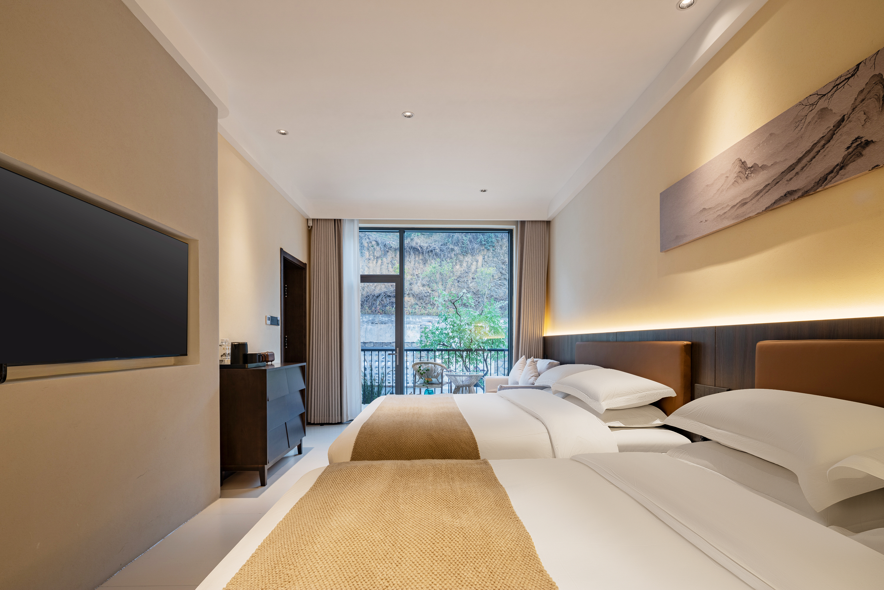 如愿家庭双床房【悠闲许愿品茗阳台+赏漫山绿景】