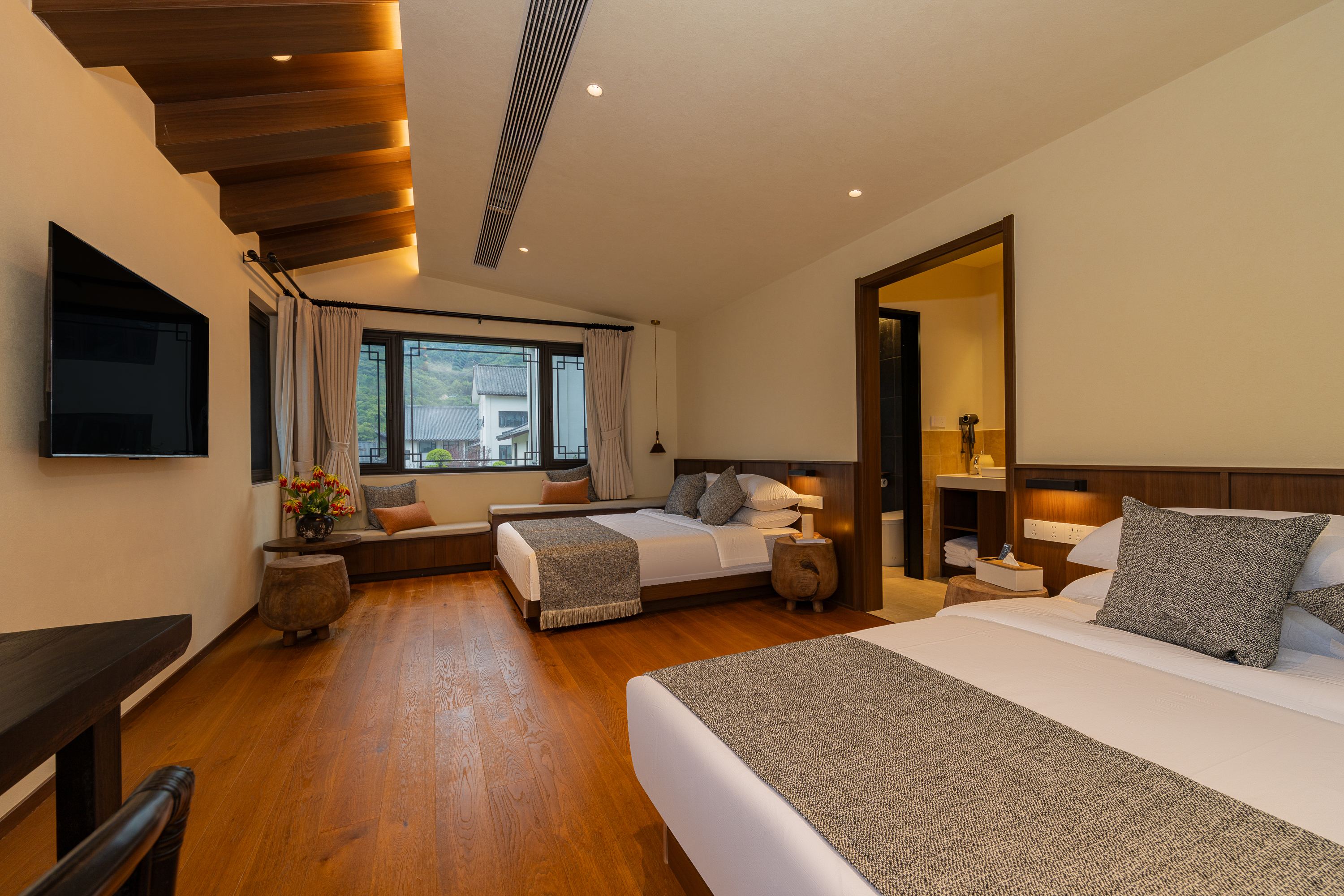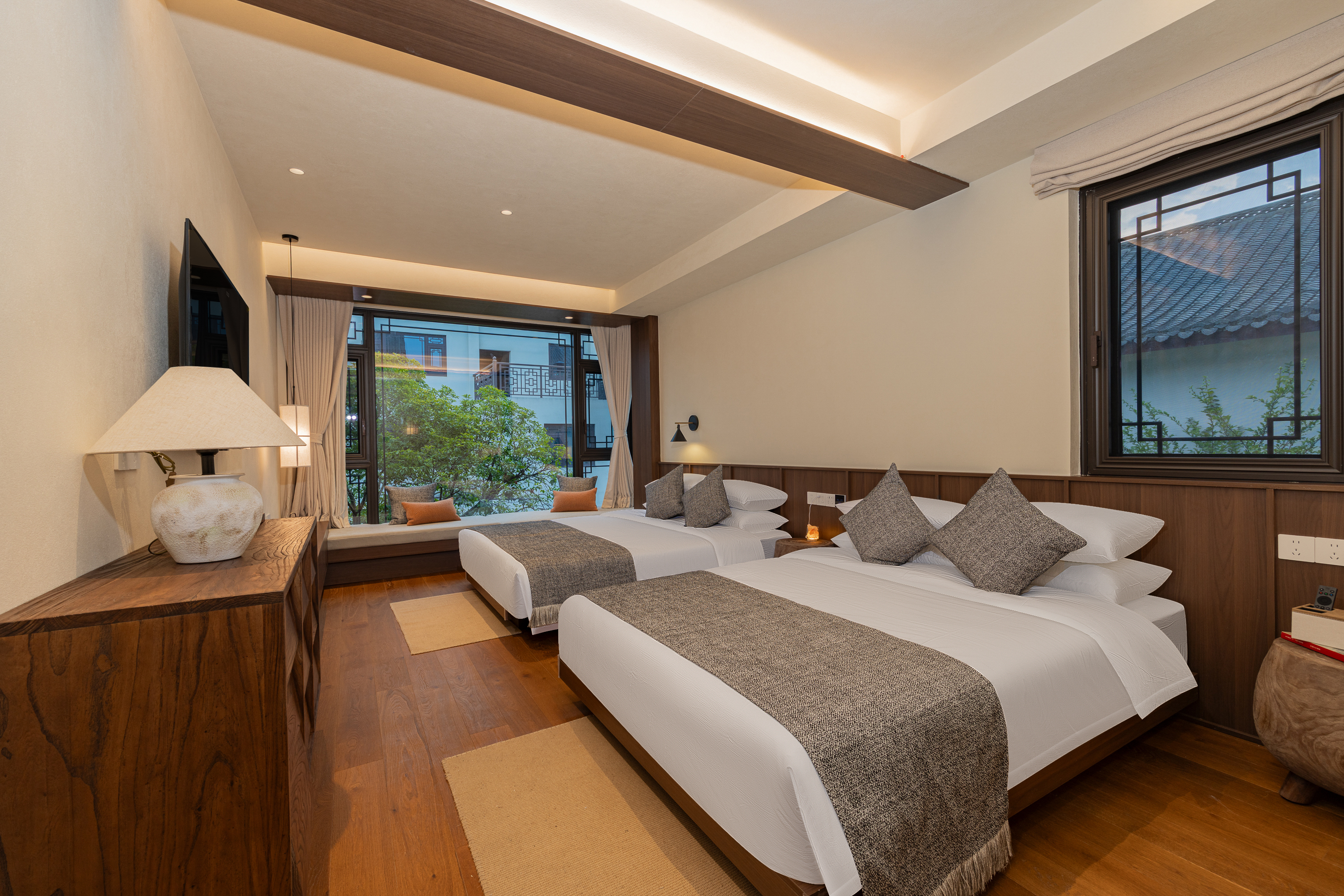 云栖·负离子双床房(梦百合床垫?全屋地暖?景观茶榻)