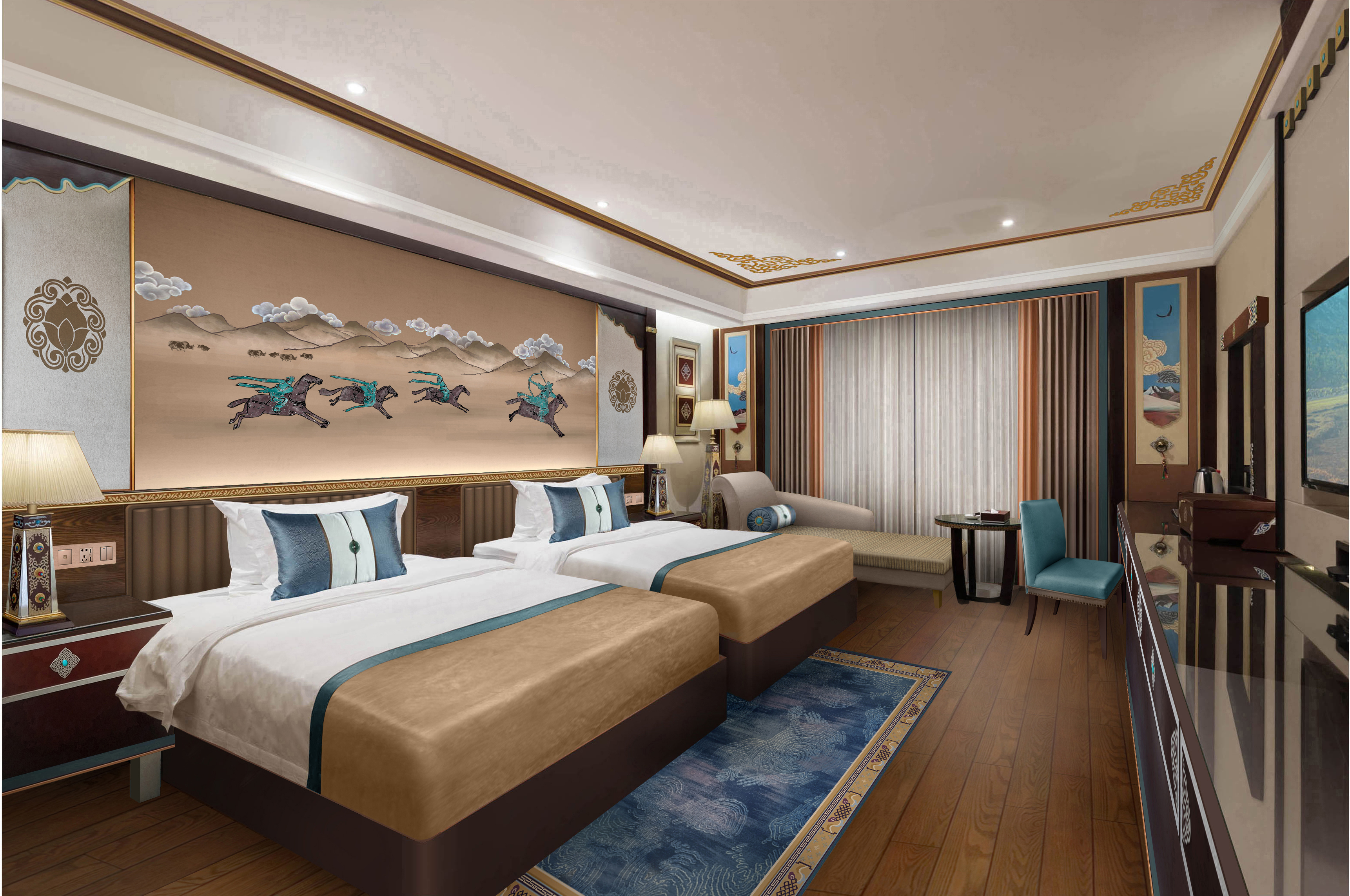 侧山景豪华双床房丨地暖+洗衣烘乾+科勒衞浴+80支棉
