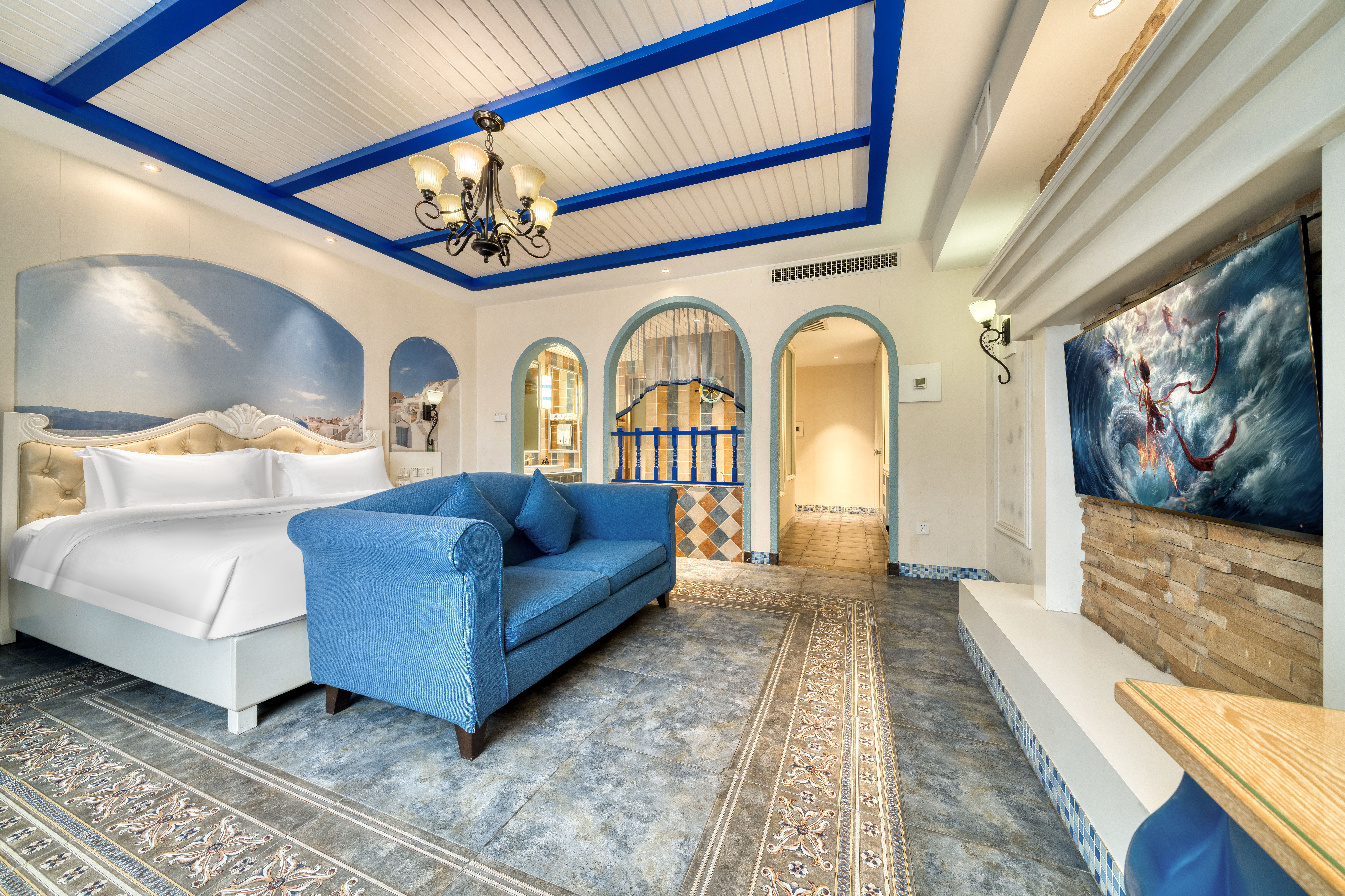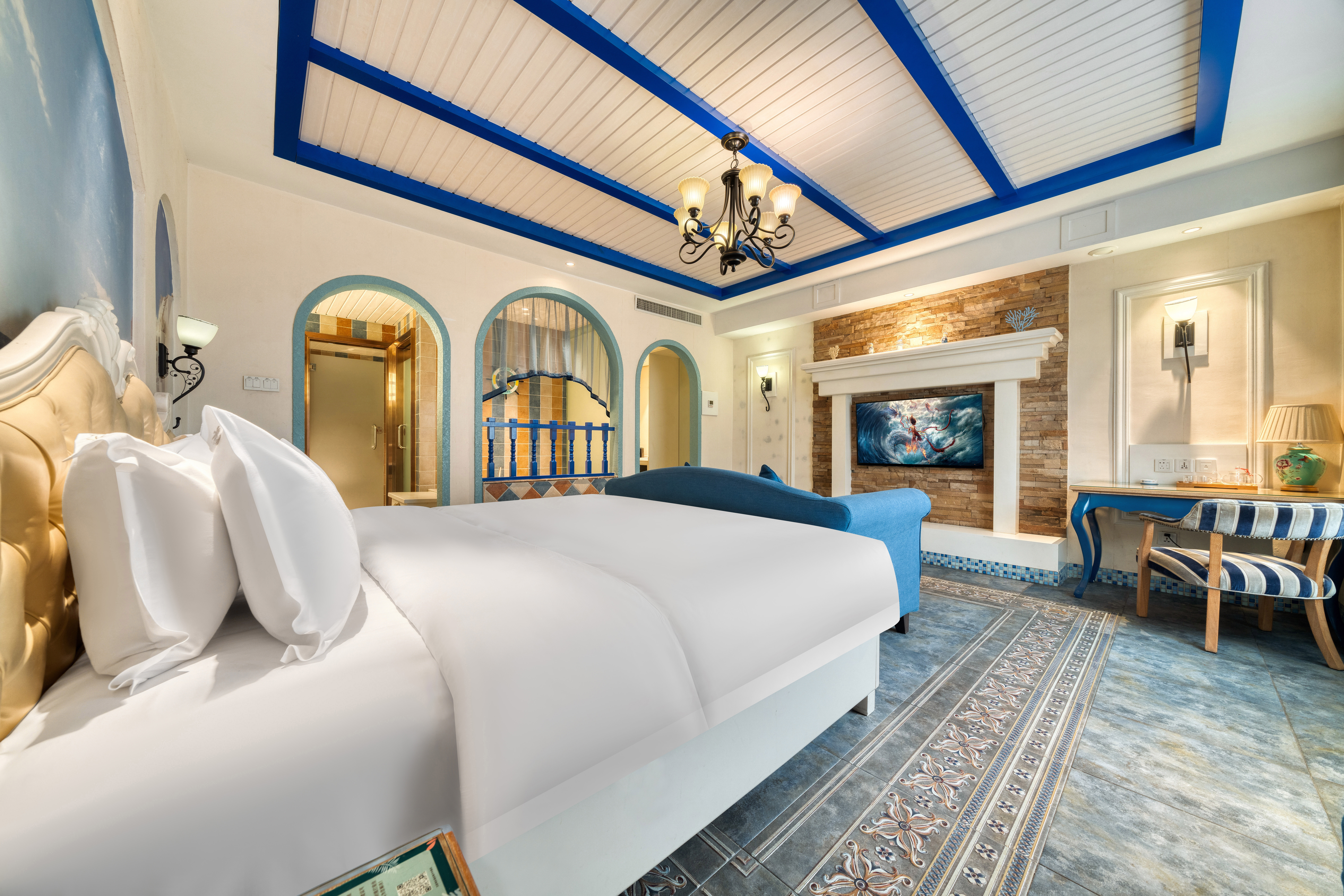 唯美爱琴海主题浴缸大床房【可投屏+冰箱+智能坐便】