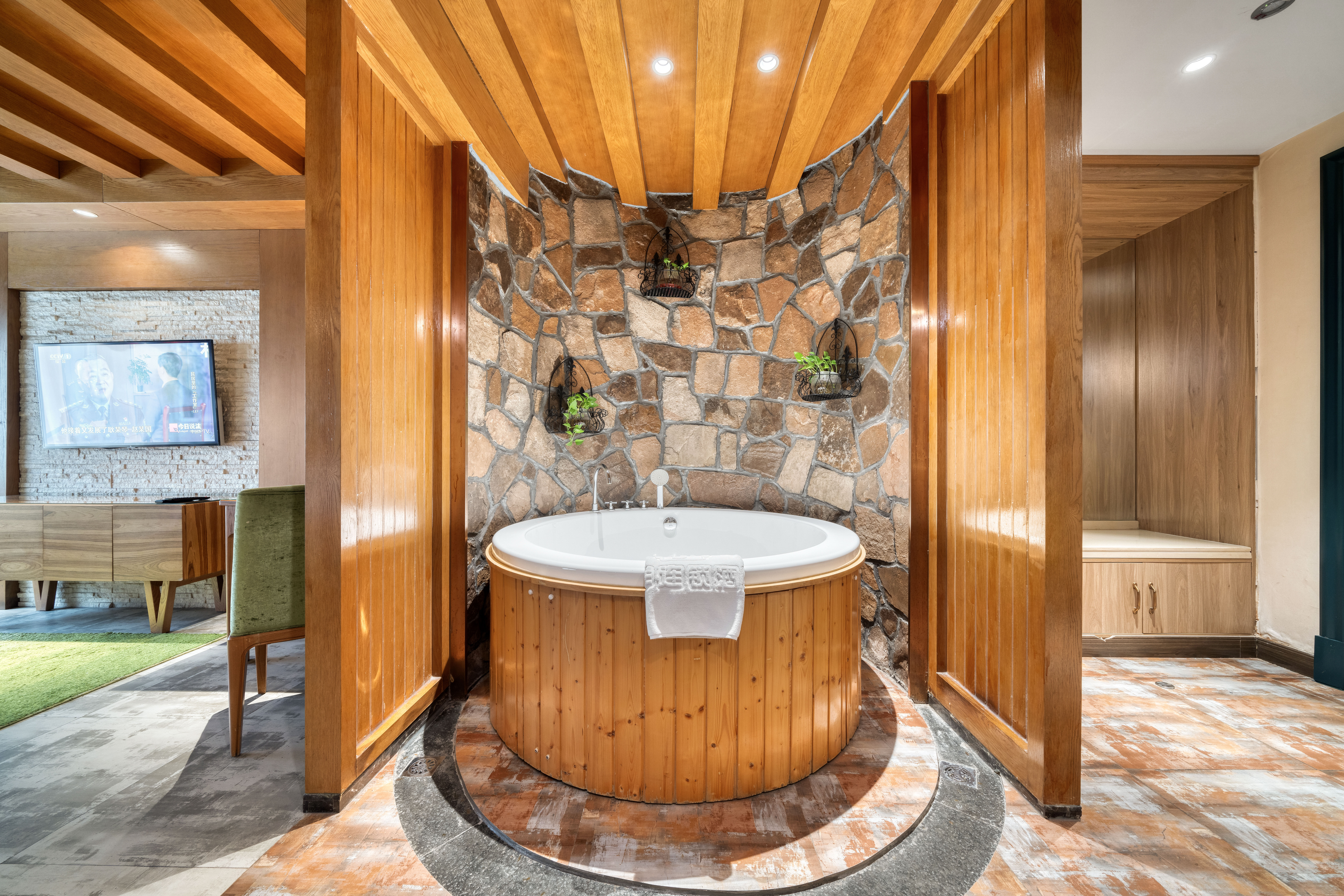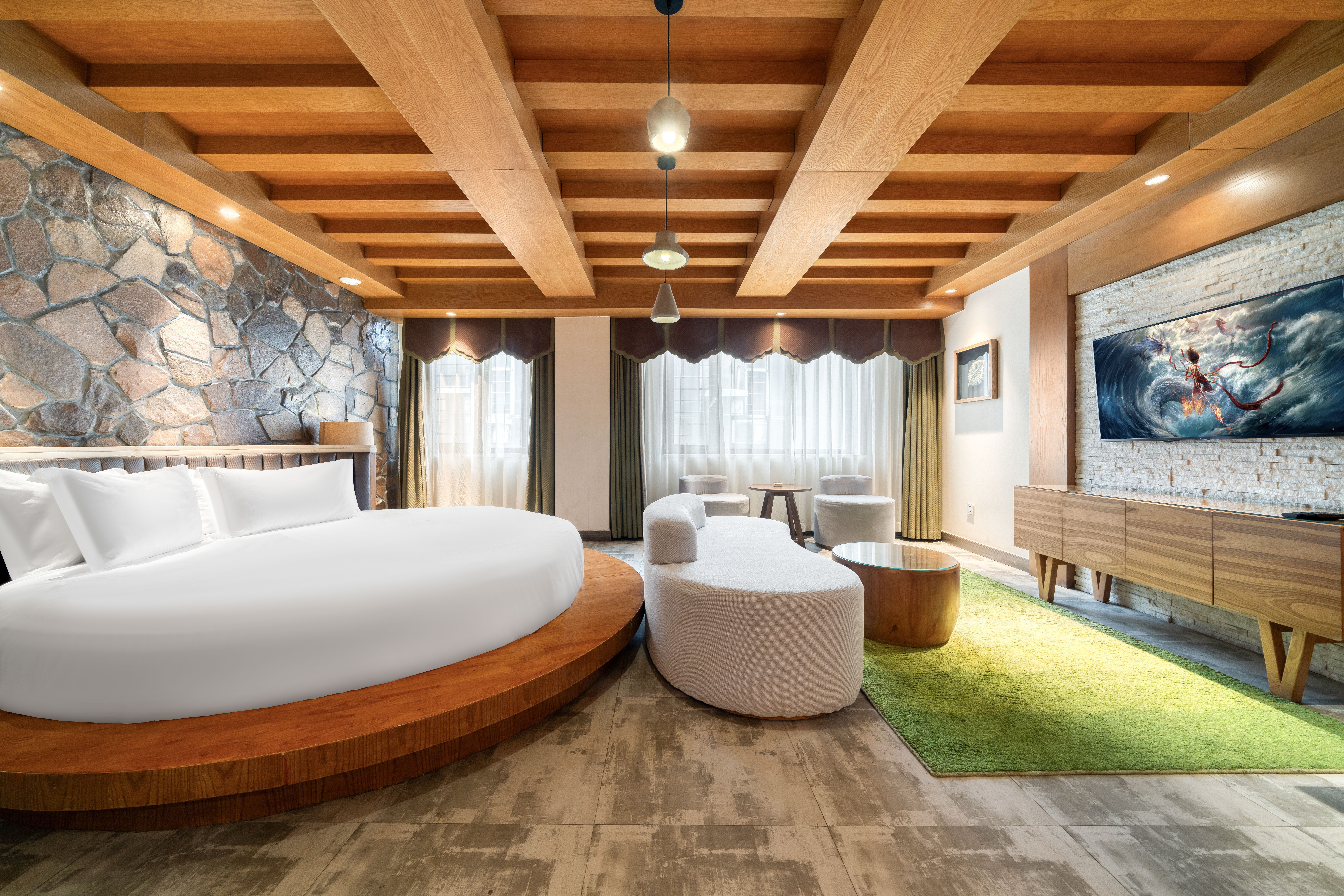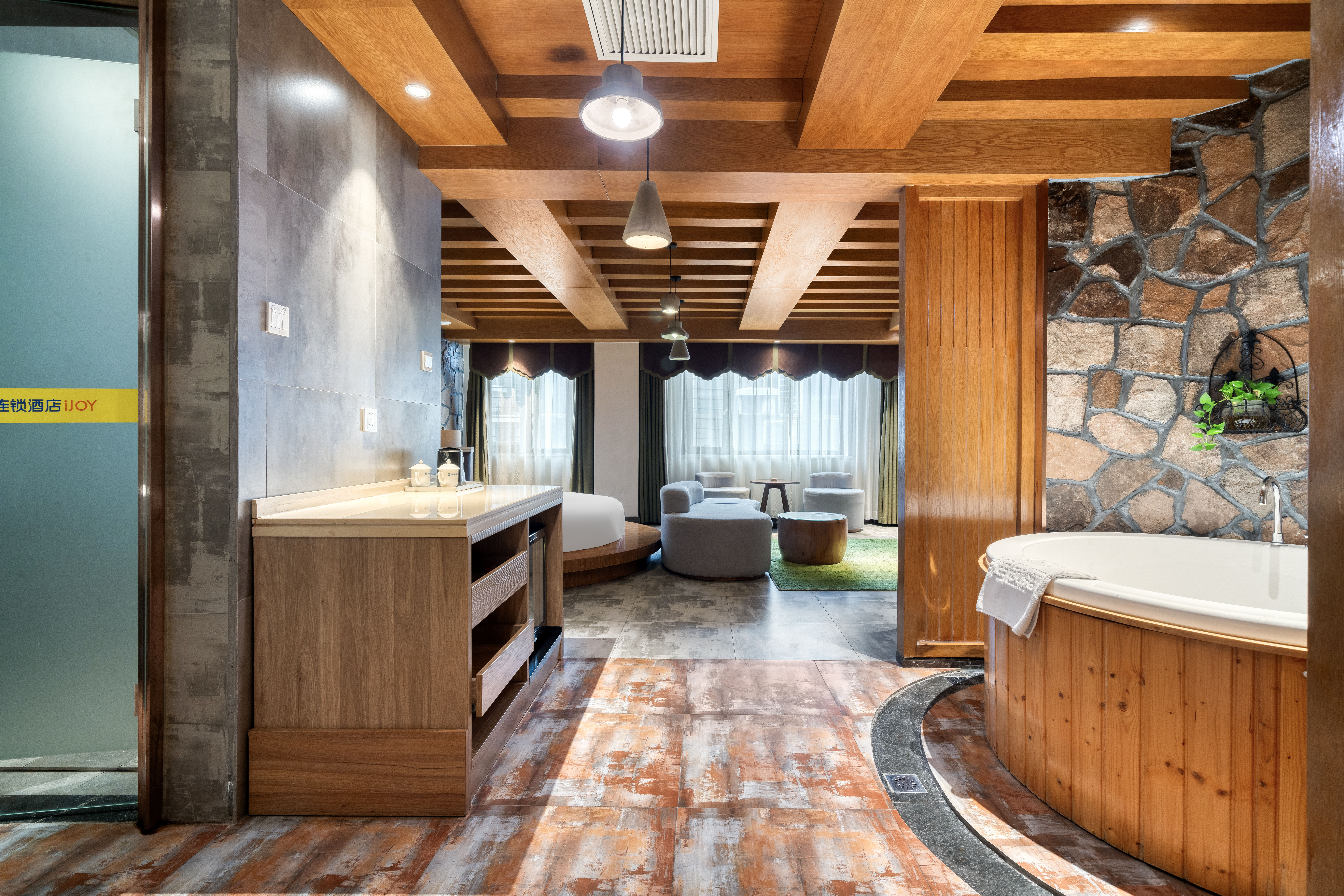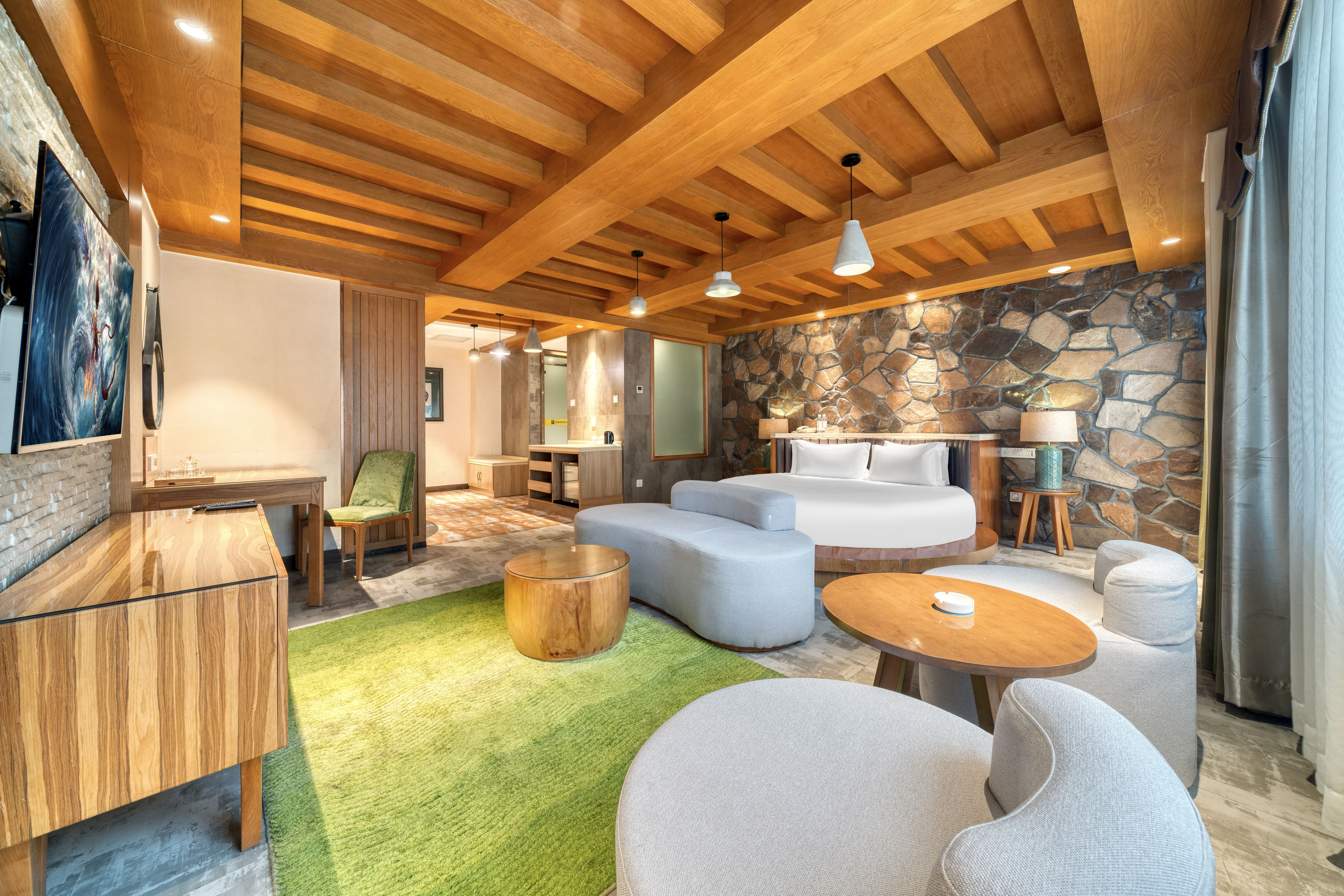 自然之美原石主题浴缸圆床房【可投屏+冰箱+智能马桶】