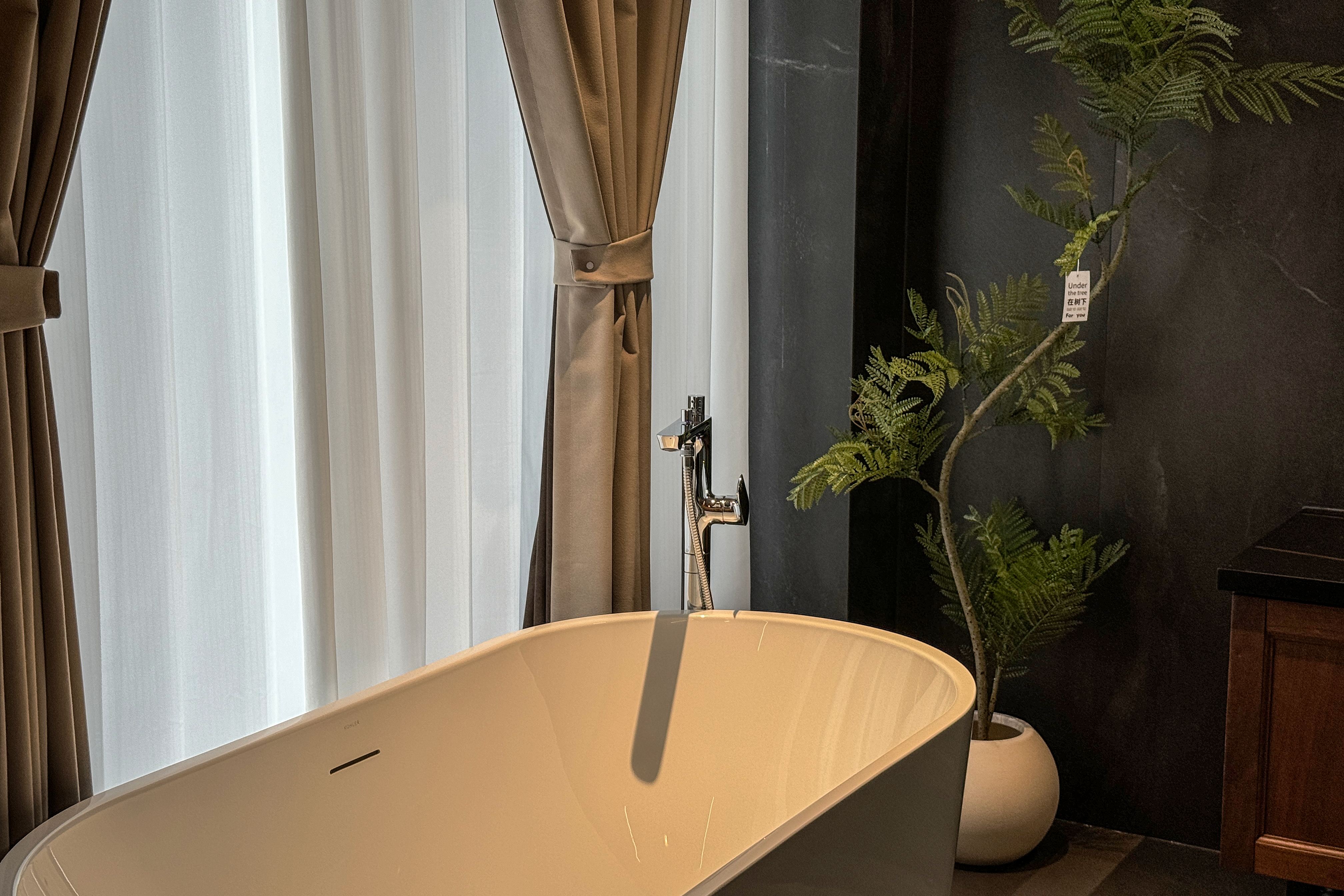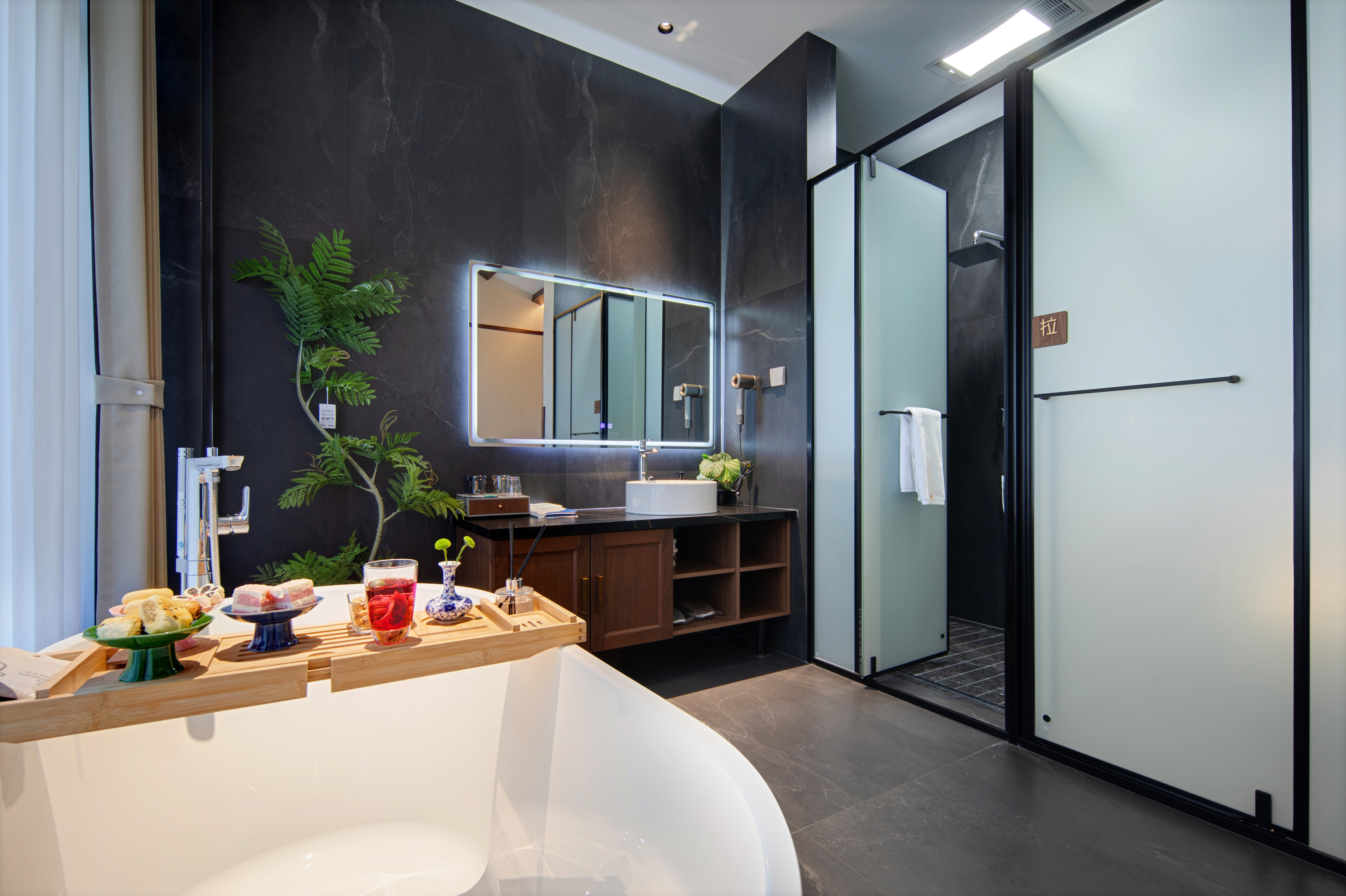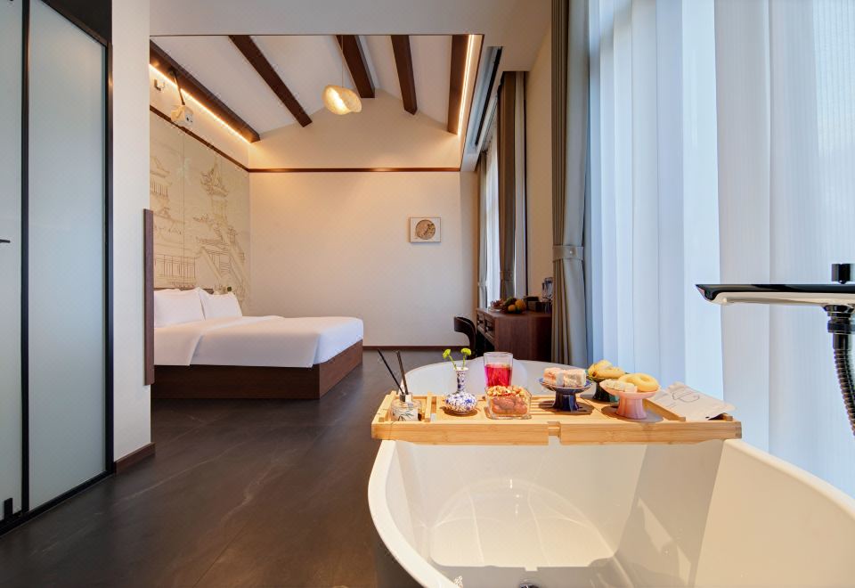 雨墨·影音浴缸大床房『小度智能+絲漣床墊+諾頓系列洗漱品+科勒衞浴』