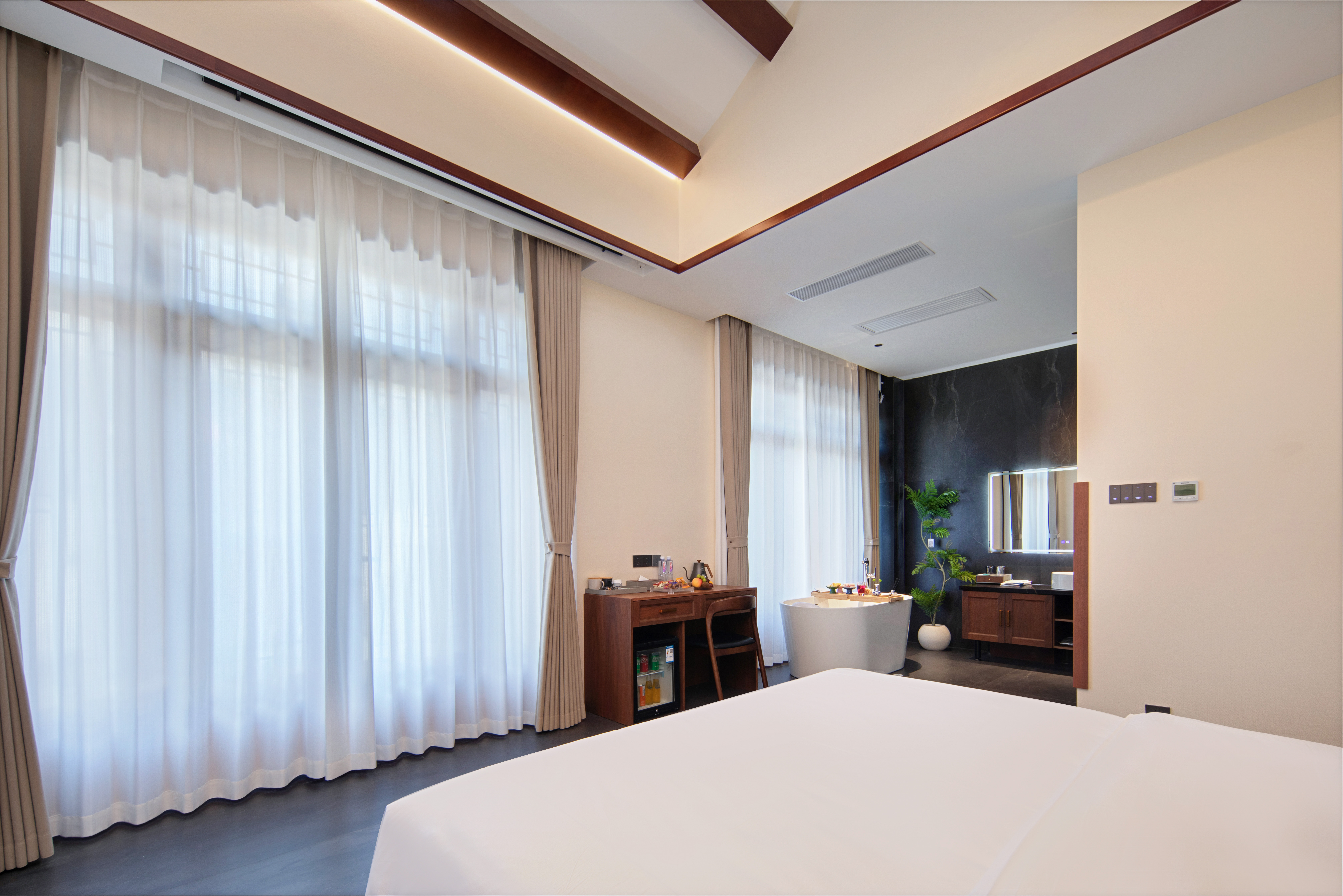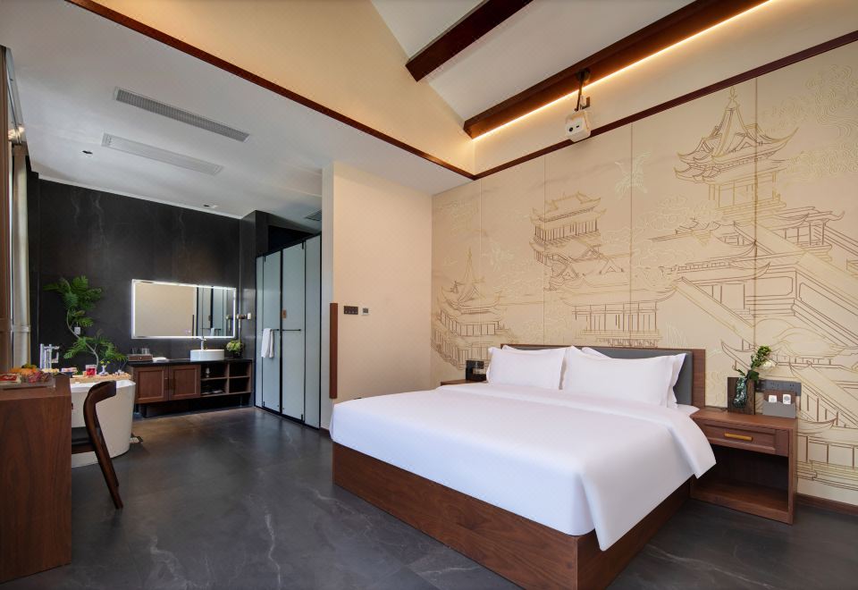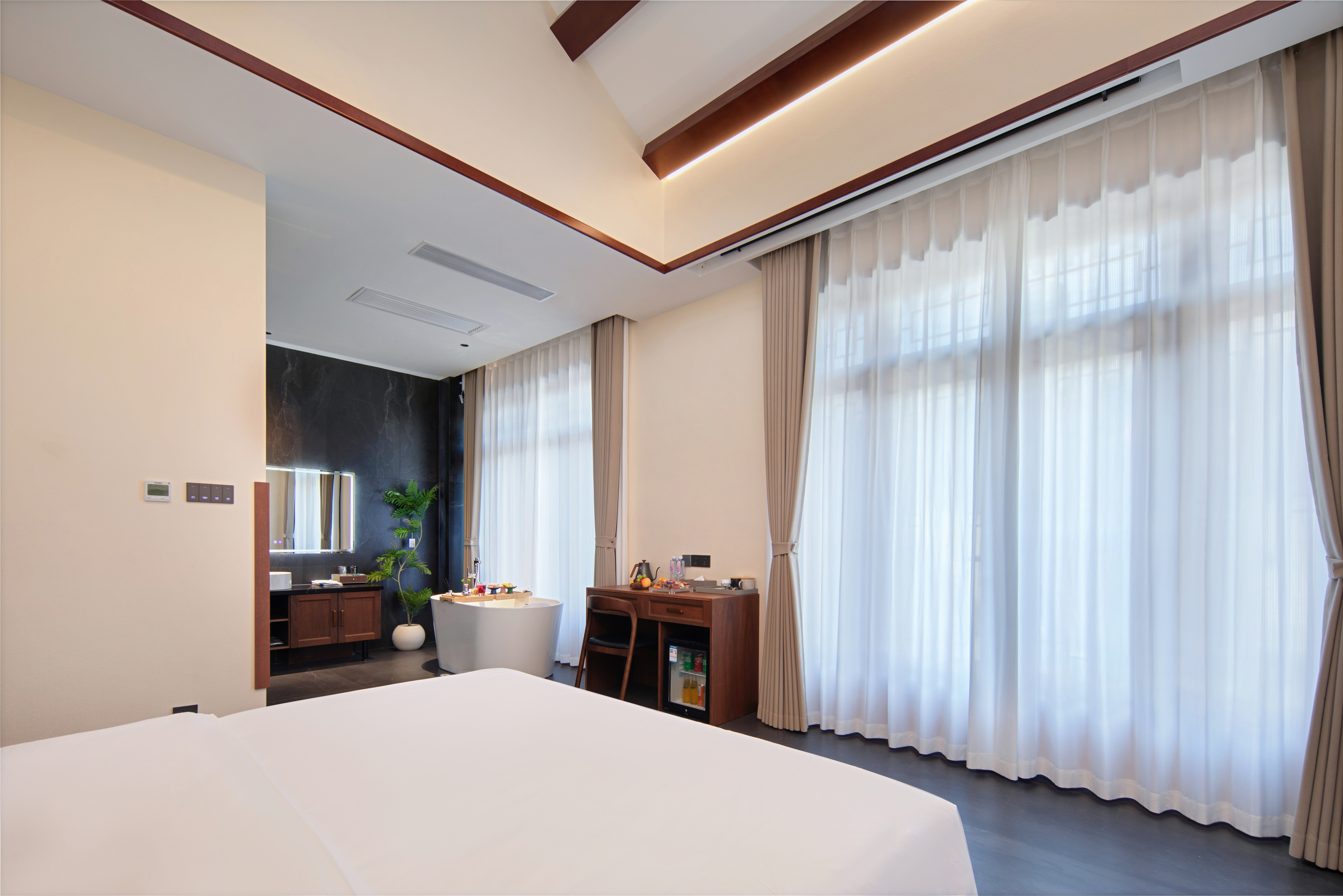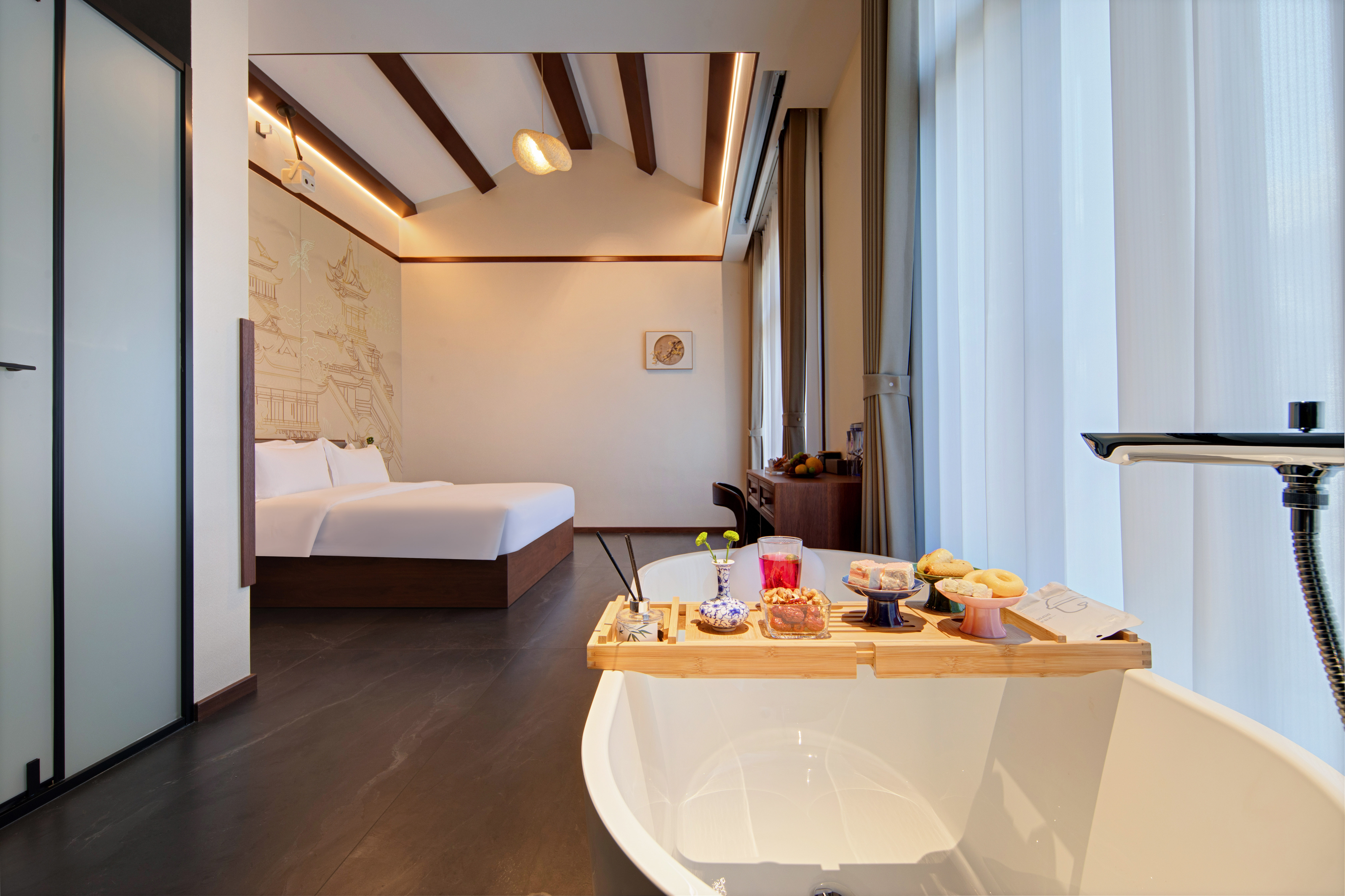 雨墨·影音浴缸大床房『小度智能+絲漣床墊+諾頓系列洗漱品+科勒衞浴』