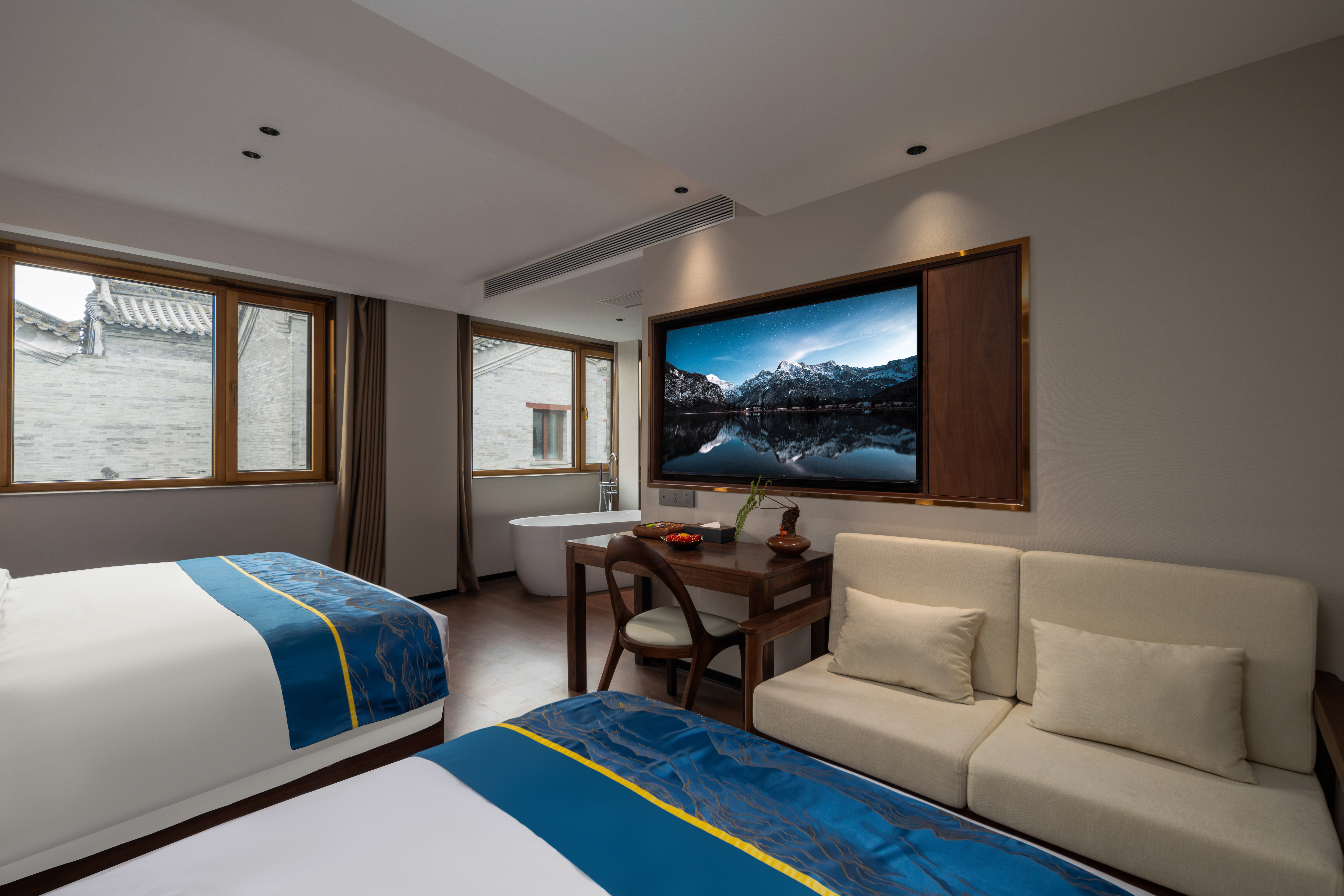 俯瞰王府•浴缸大床房【全屋智能+凈化器+零壓床墊+冰箱