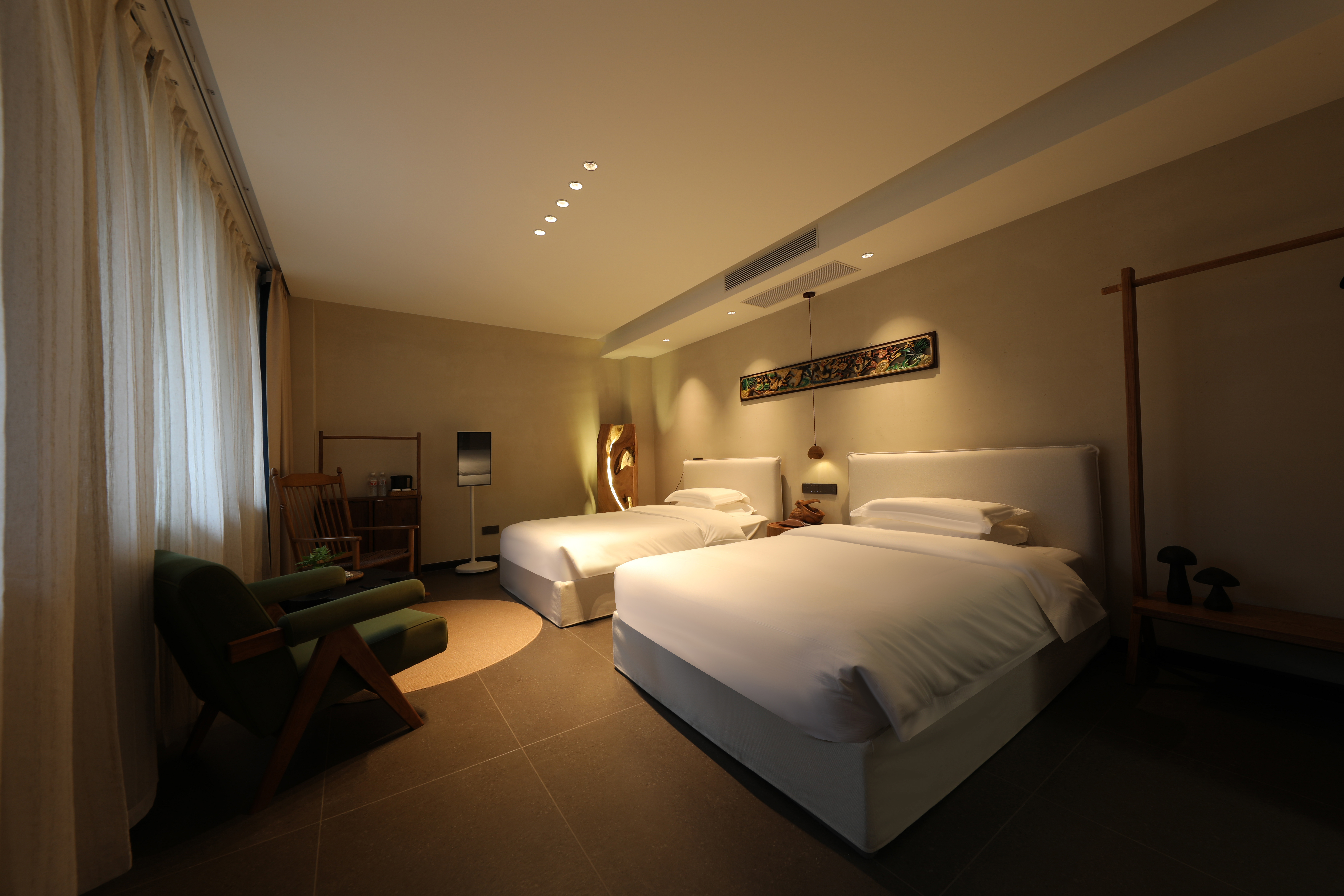 嵐風·雙床房【古樸侘寂傢俱·庭院觀景·深泡浴缸】