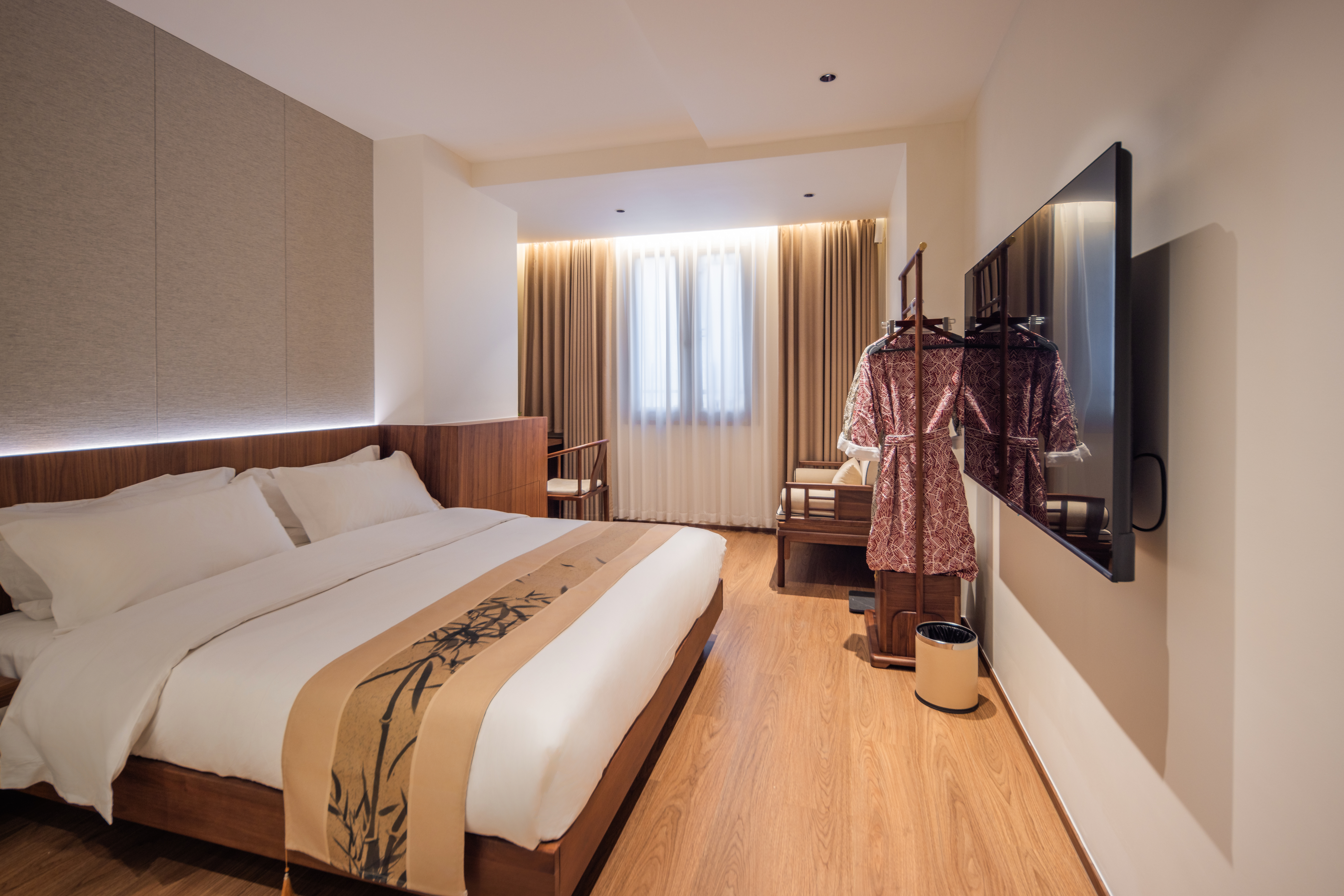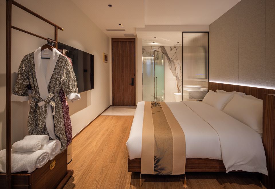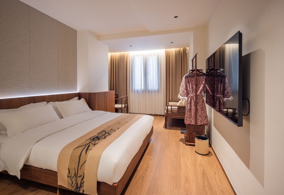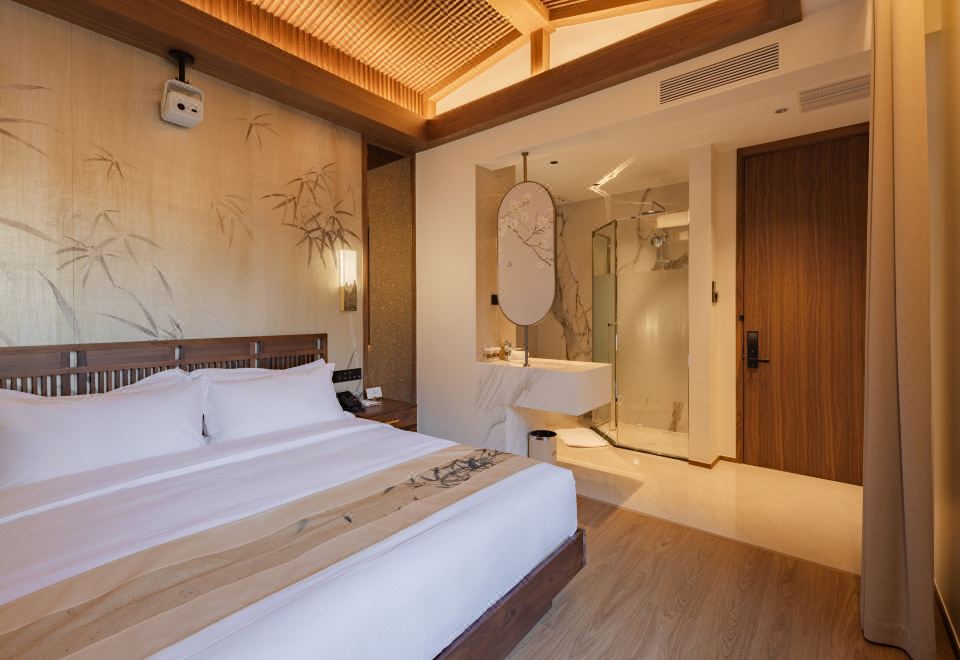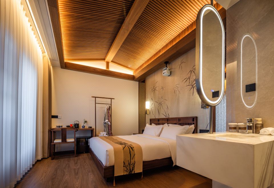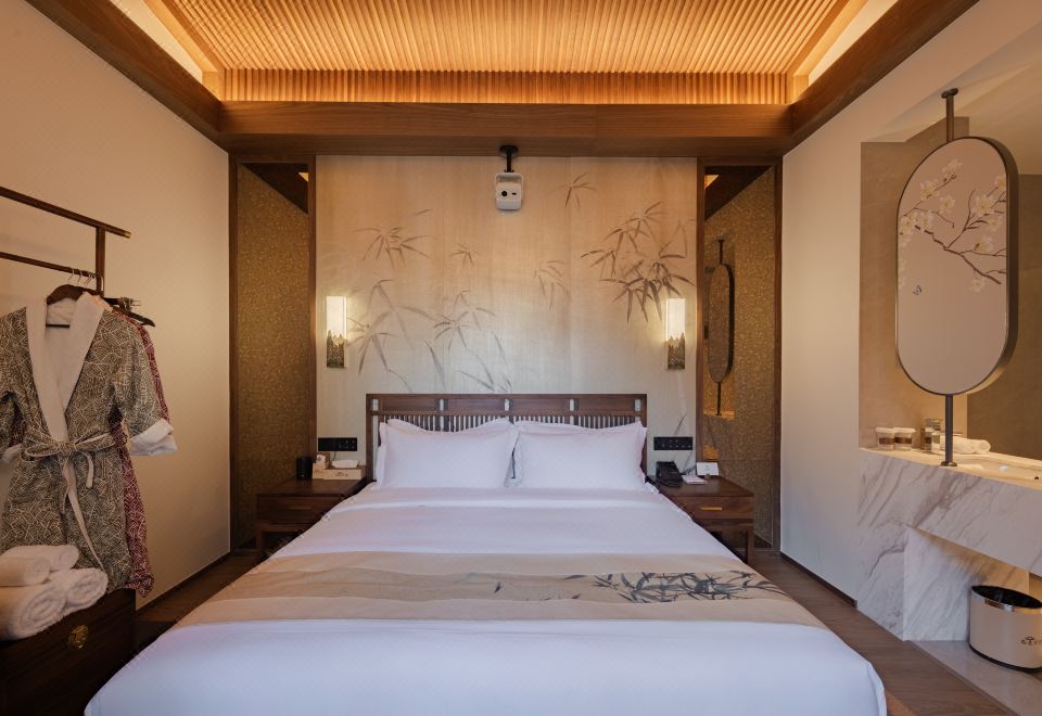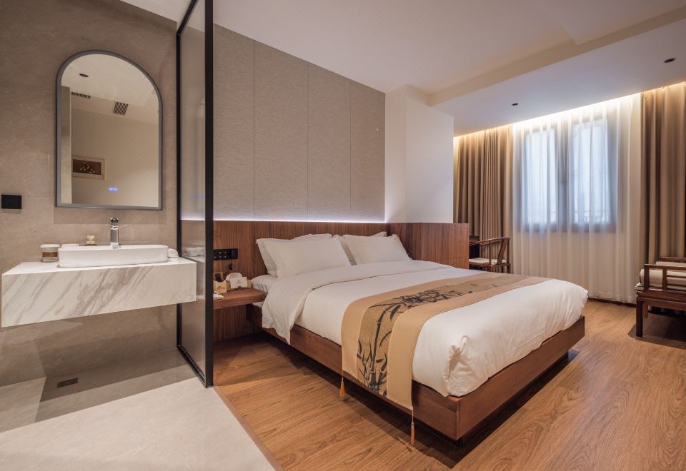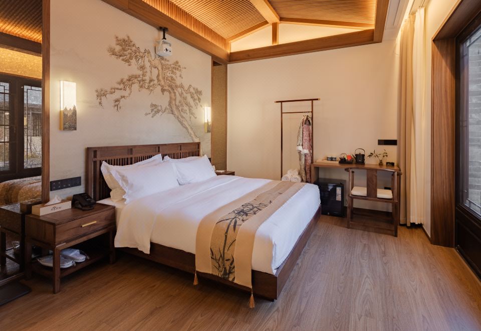 室雅大床房(新中式院落景+愛意沉浸式深睡舒眠超靜音零壓床墊+MINI冰箱+蘇紡親膚全鵝絨被芯+負離子加濕器+藍牙音箱)