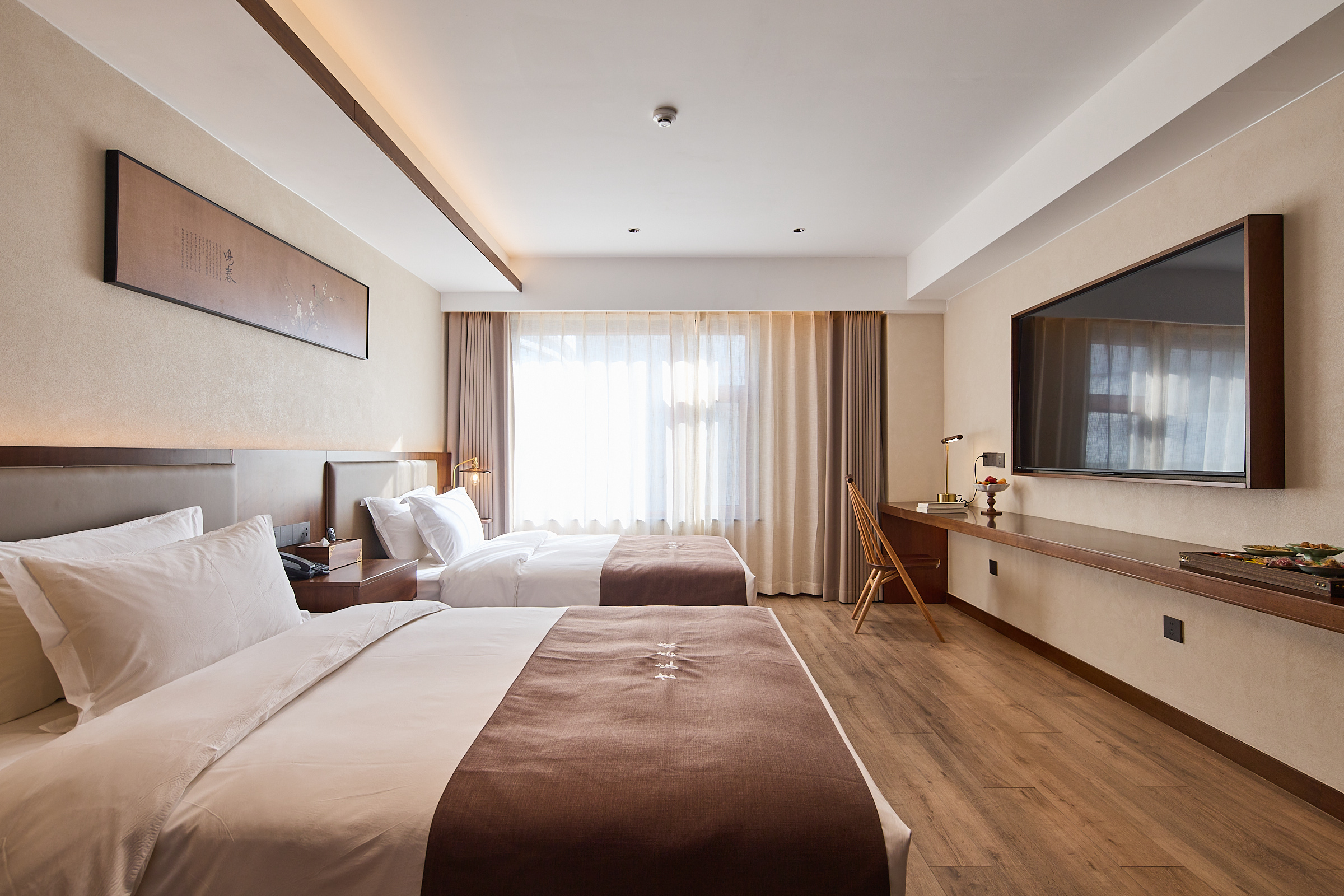 吉▪雲觀雙床房|靜音零壓床墊+親膚白鵝絨被芯+小冰箱