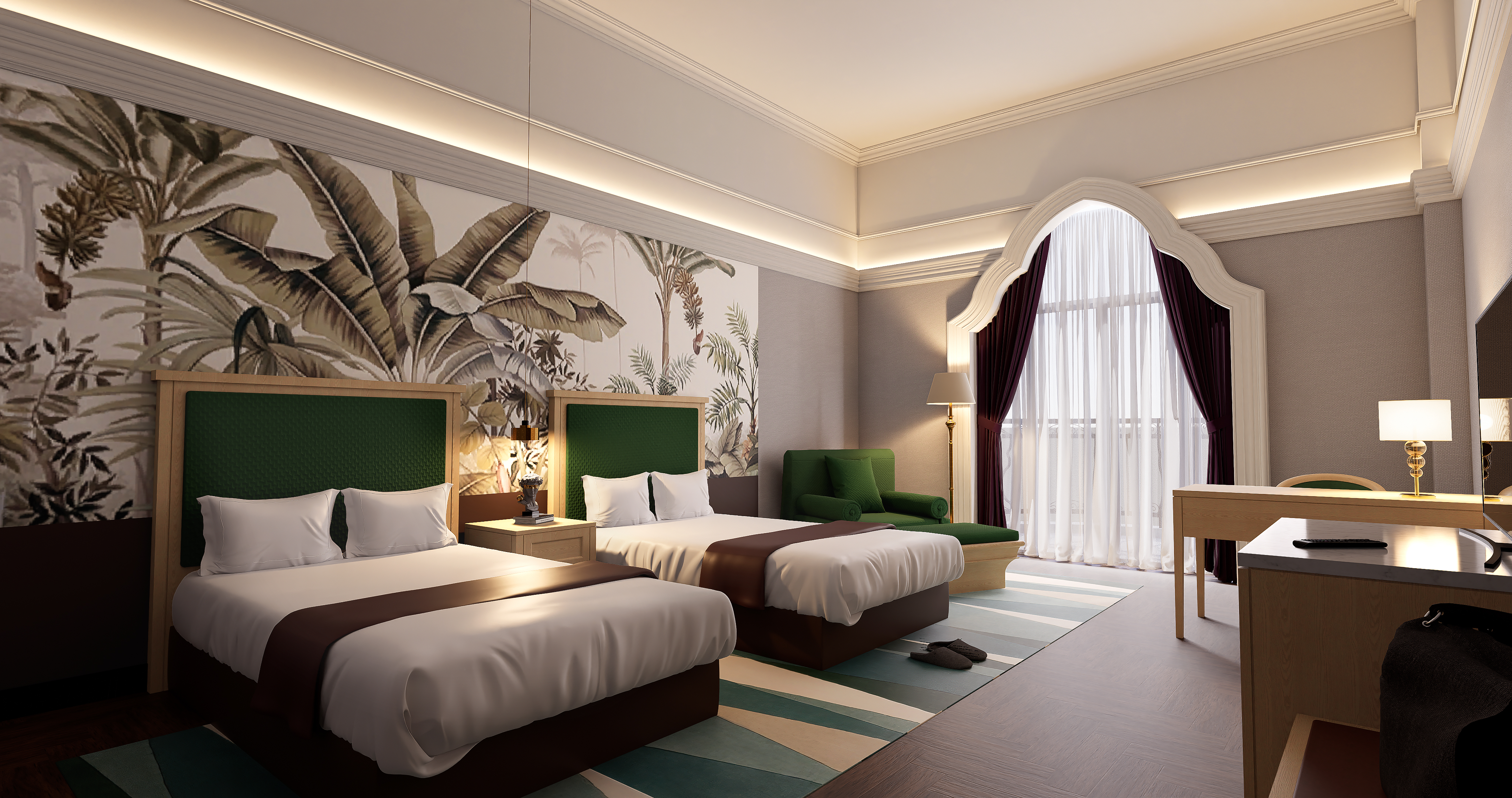 悦逸舒适双床房(舒适沙发+办公桌椅+品牌床垫+护眼枱灯)