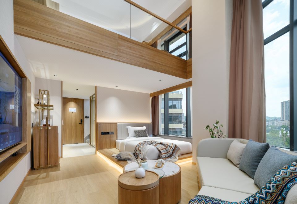 悦阁?景观复式双卧房+智能客控+65寸投屏电视+零压床垫