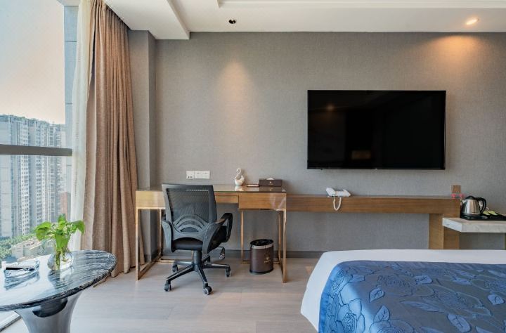180°观景大床房(城市夜景+轻柔床品+可投屏电视)