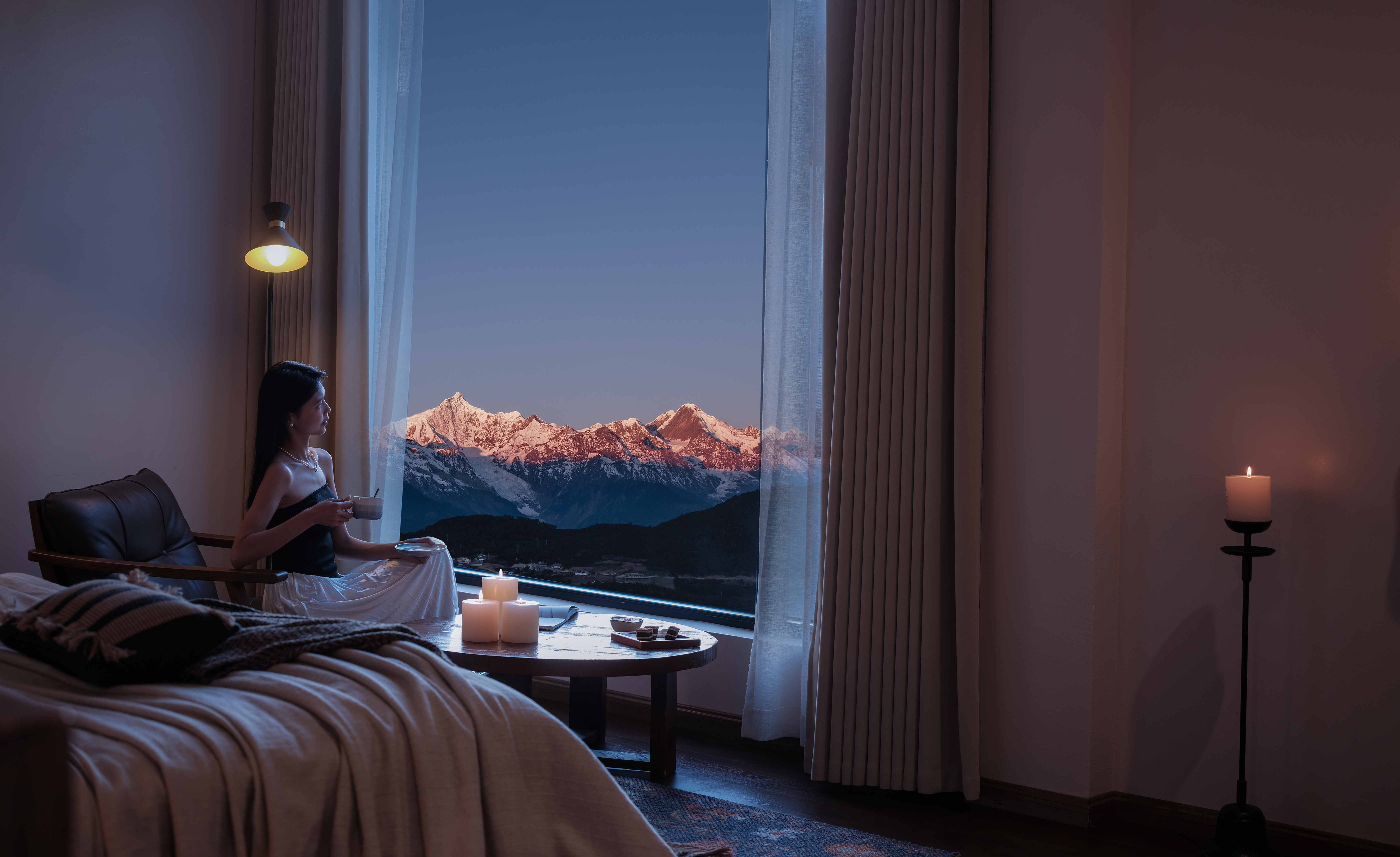 Kawagbo未山月·侧面雪山观景大床房|(弥漫式制氧+地暖+全屋智能+零压床垫)