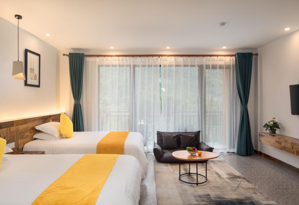 No.2 Mianzhu Homey Twin Room (Balcony Mountain View + Tub)