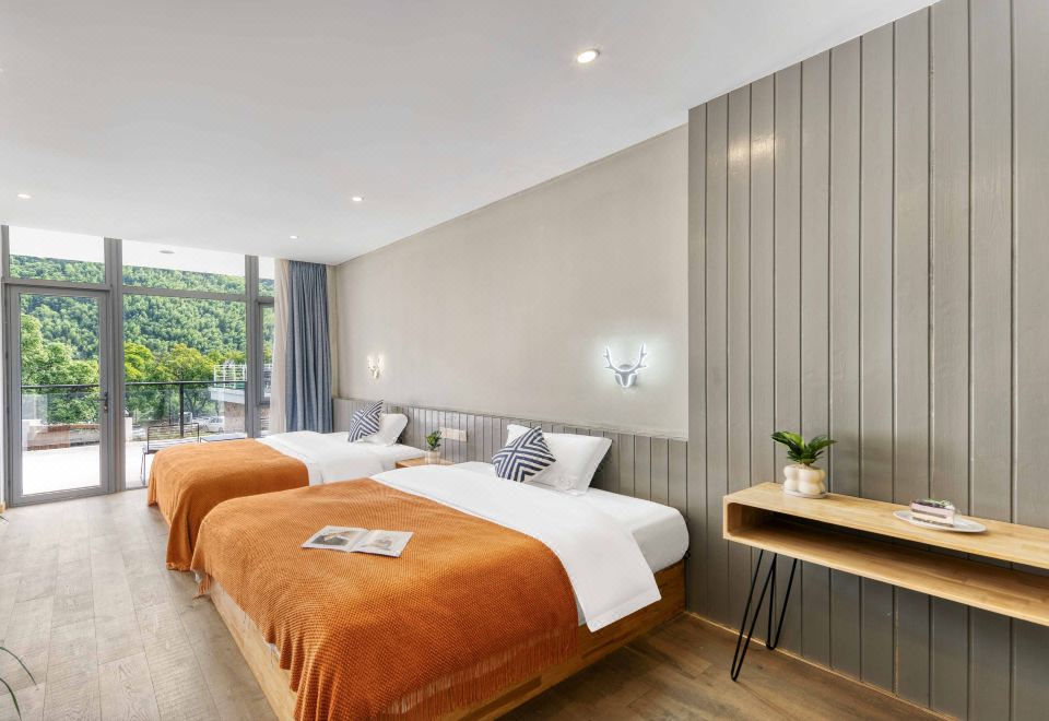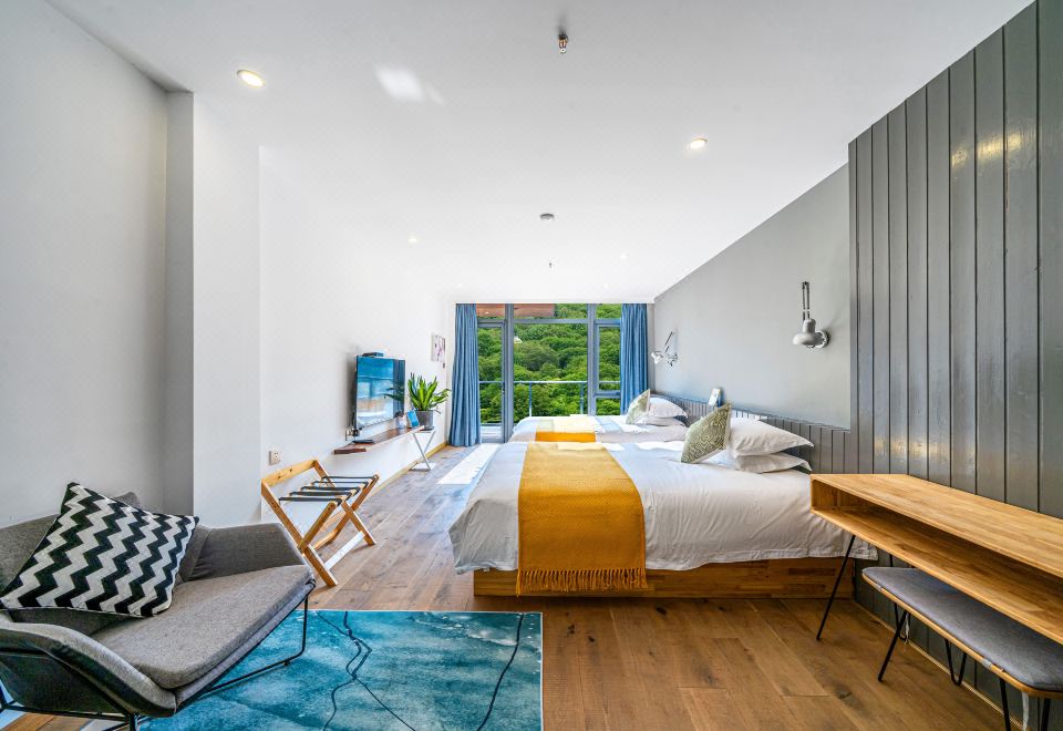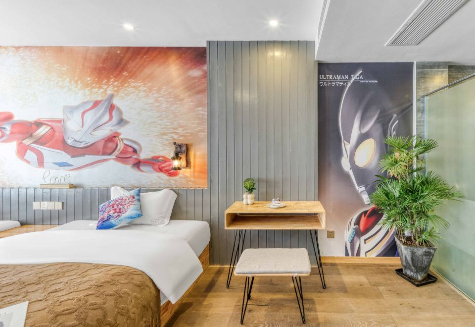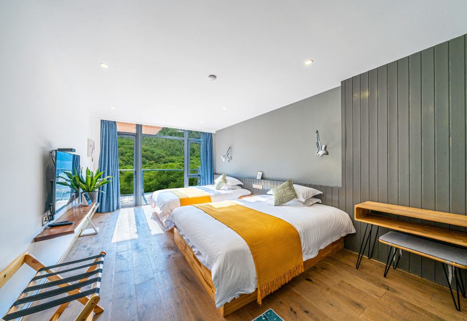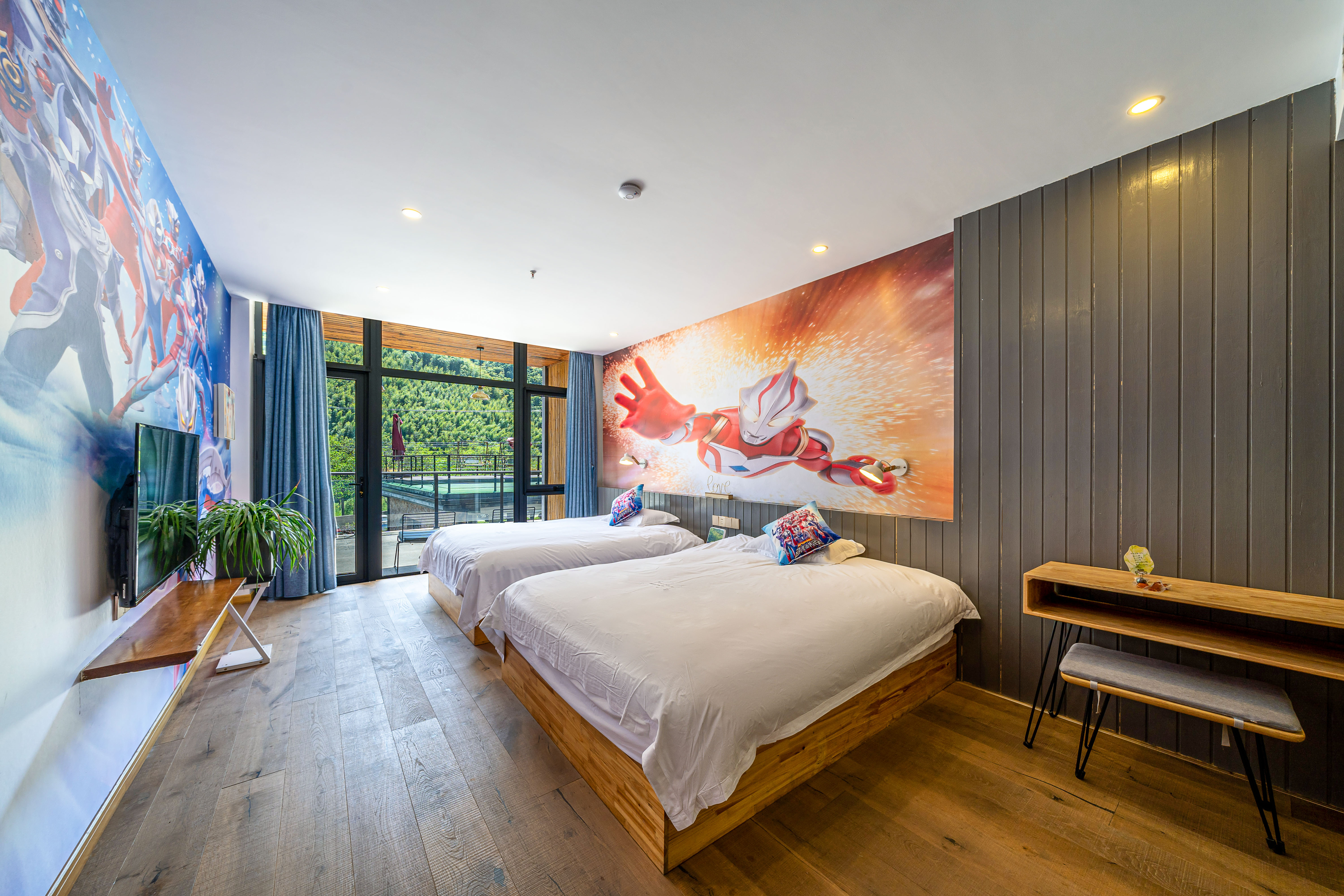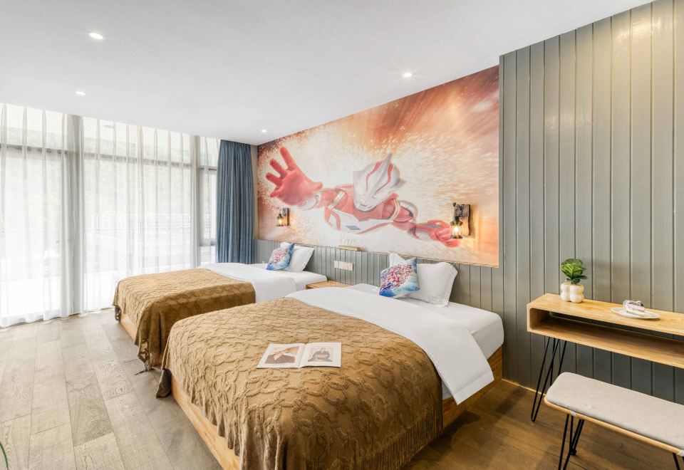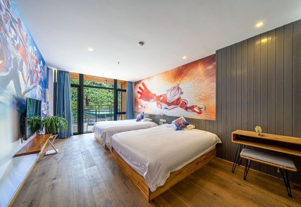 Tong Xin Family · 180 ° Panoramic Balcony Double Bed Room With Smart Tv And Themed Twin Beds