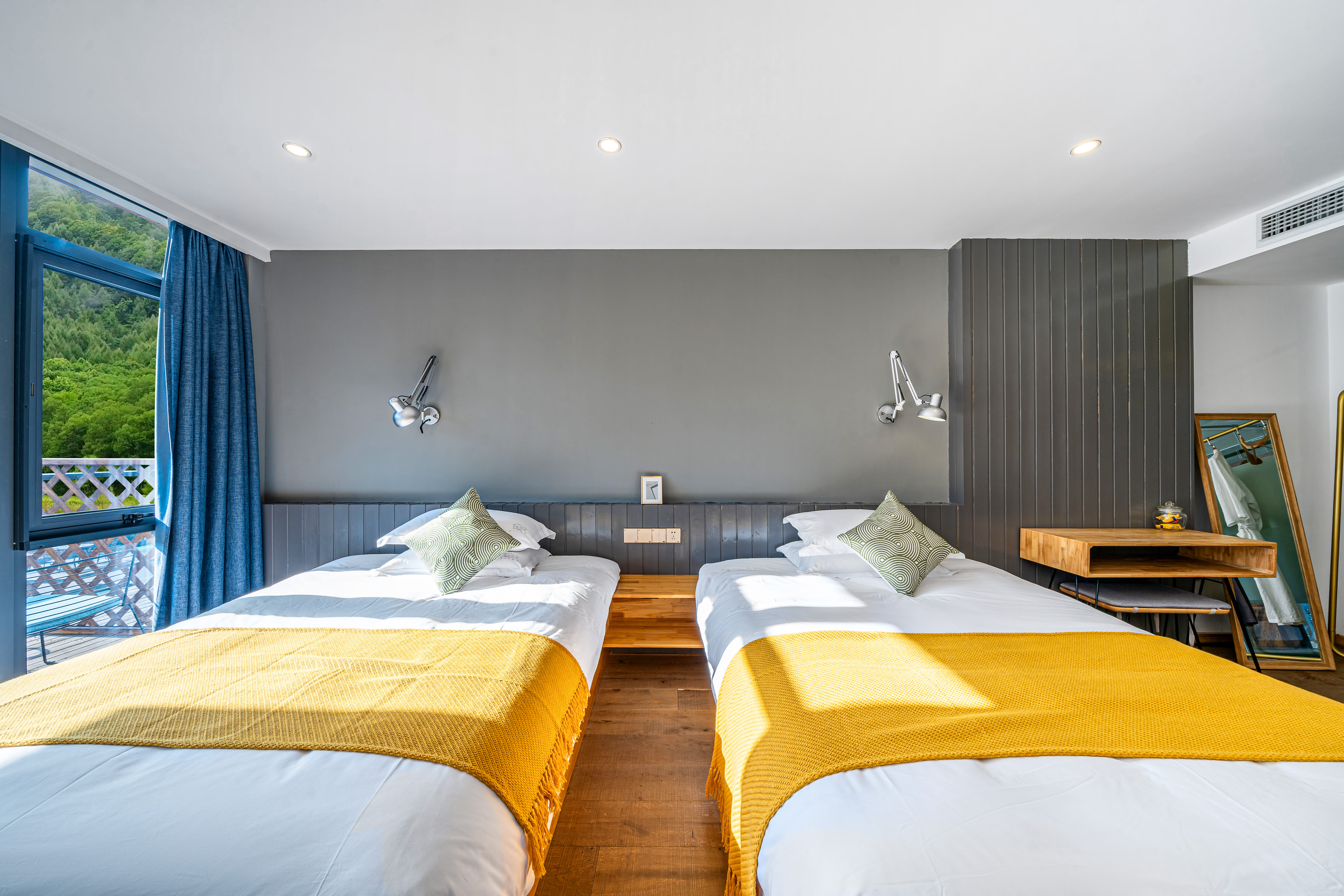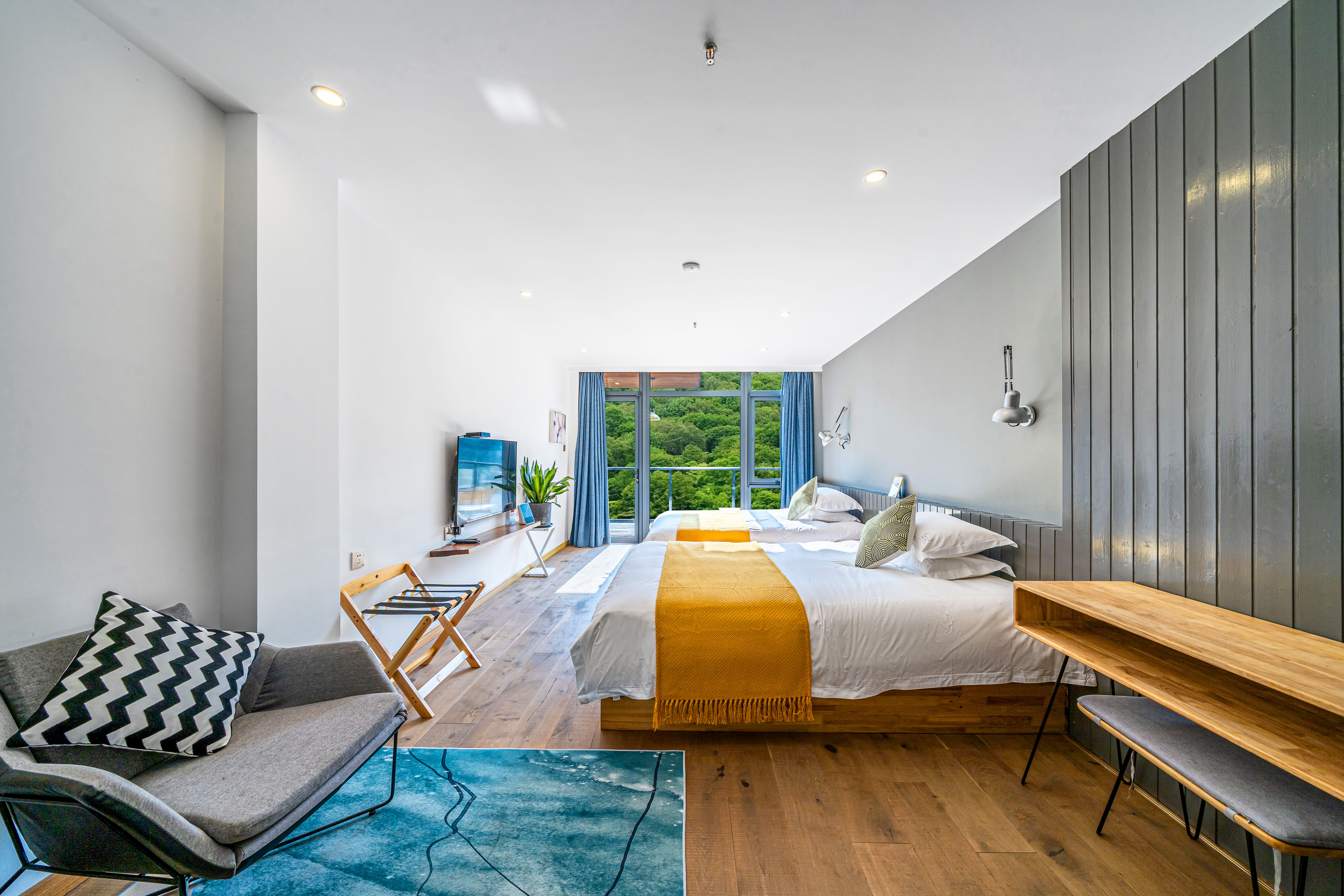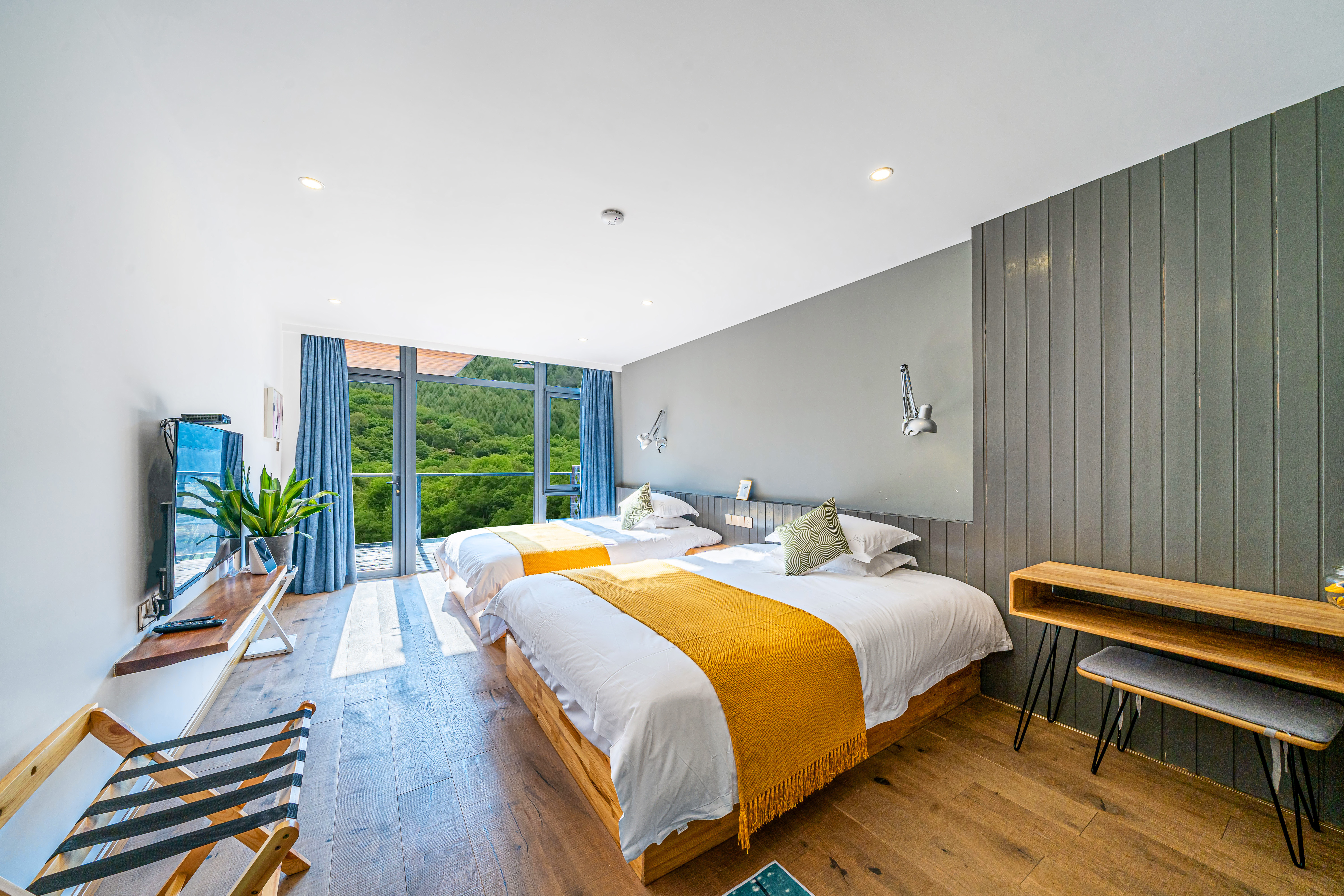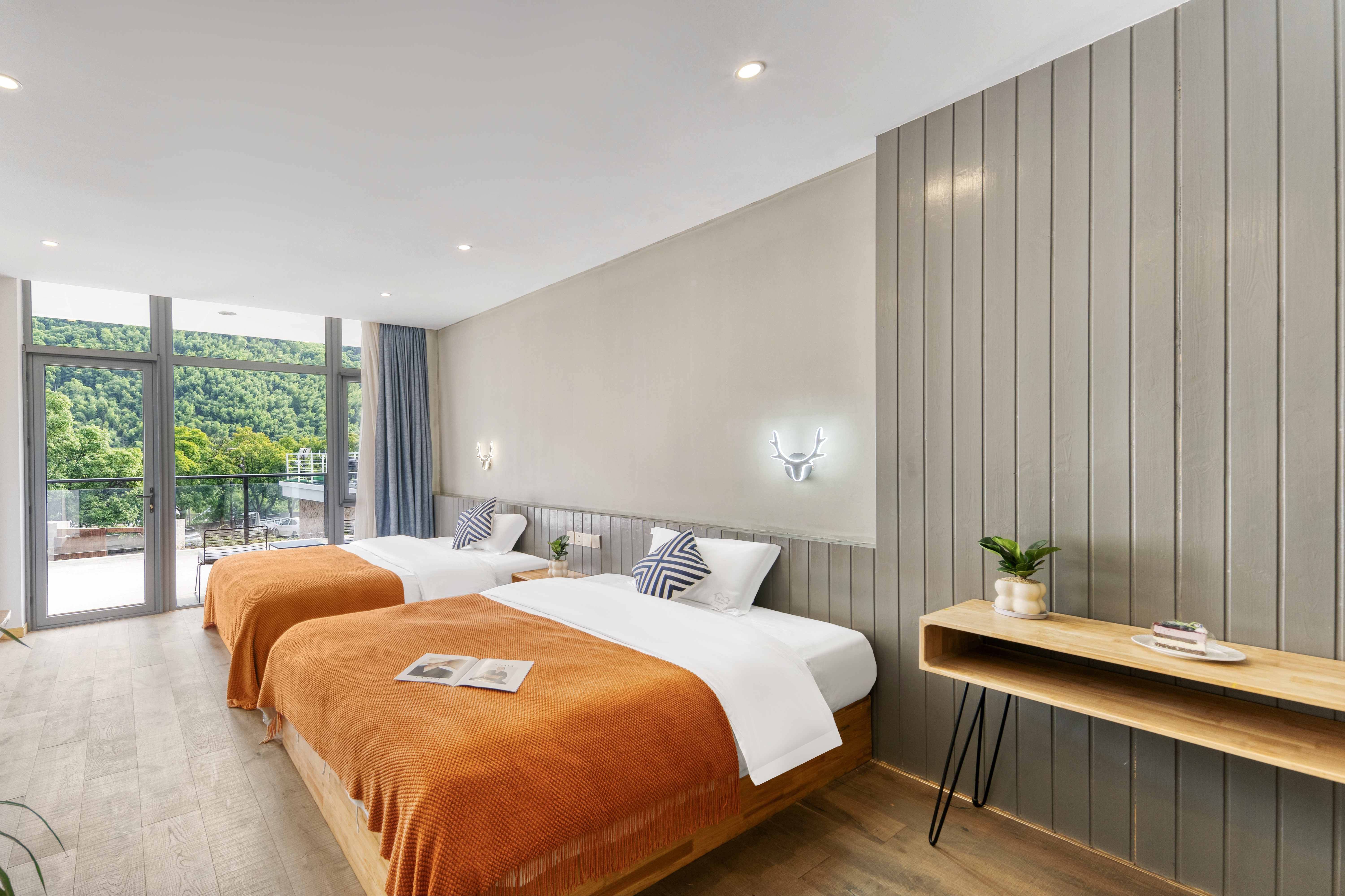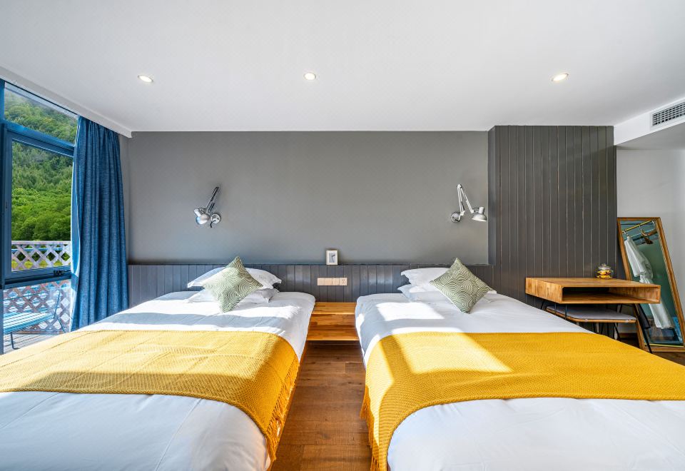 Tong Xin Family · 180 ° Panoramic Balcony Double Bed Room With Smart Tv And Themed Twin Beds