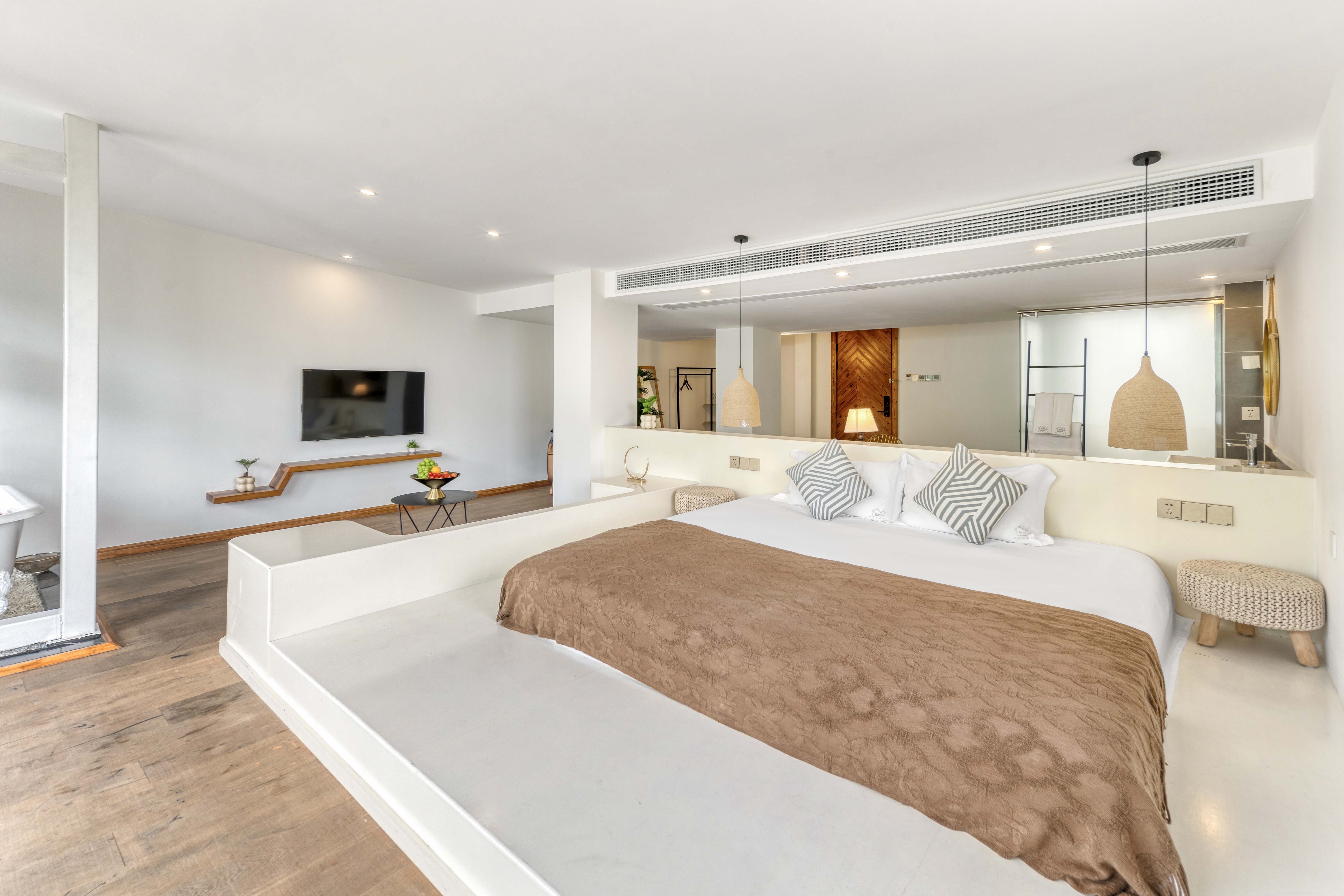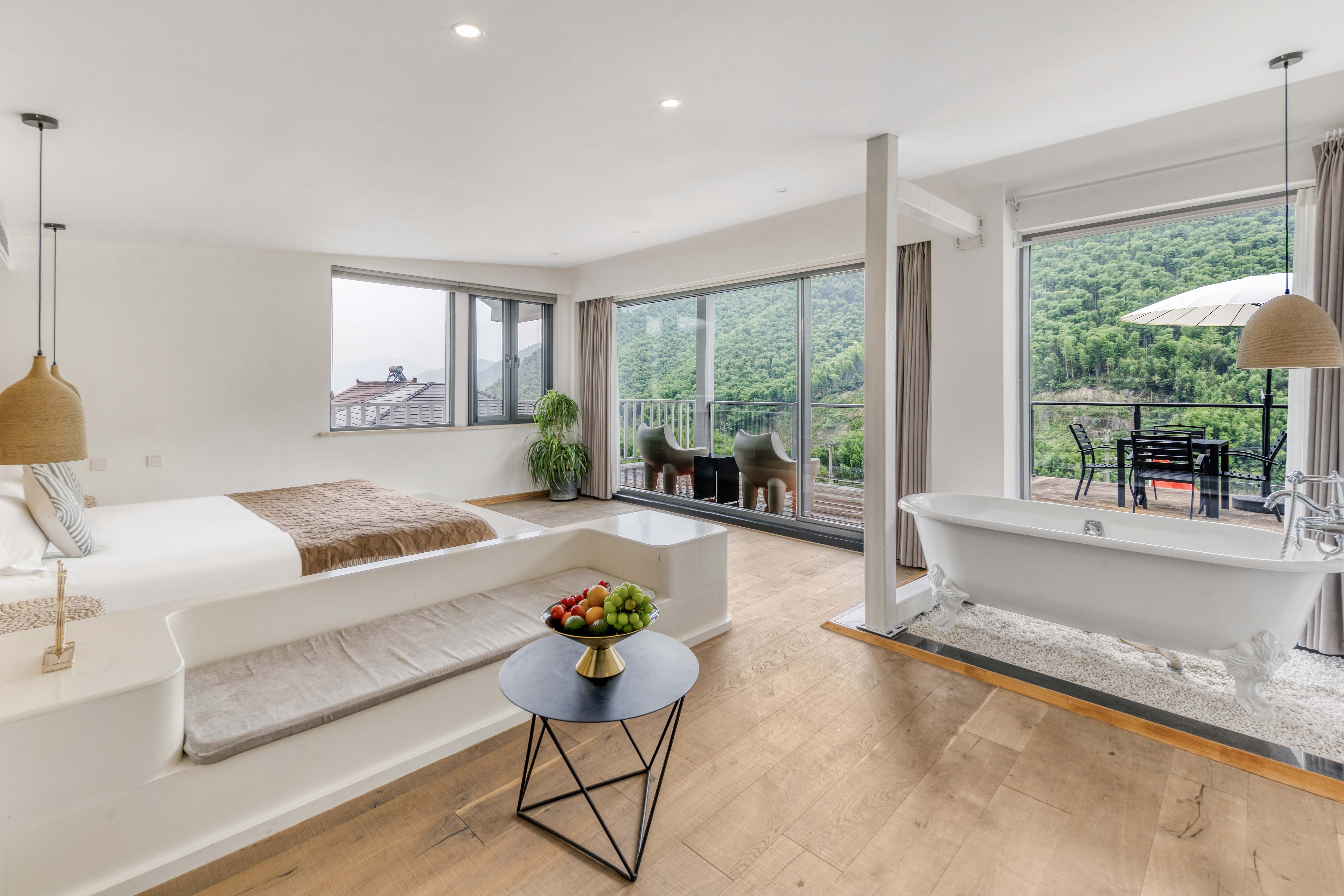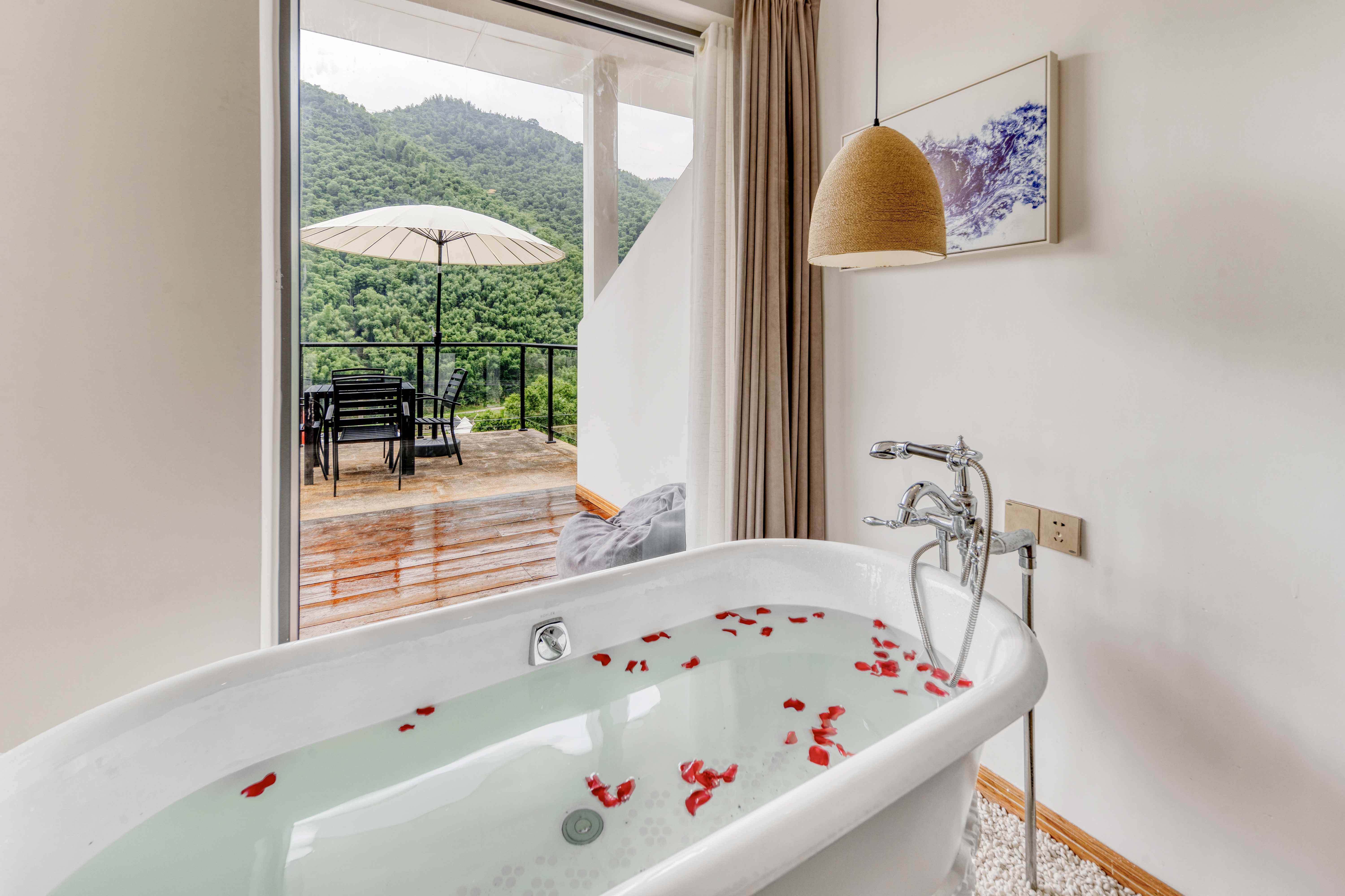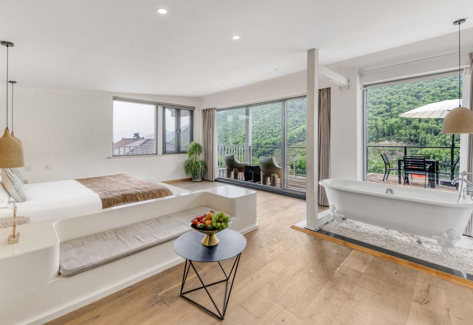 Rain Listening · 180 ° Panoramic Balcony Double Bed Room With Smart Tv, Large Bathtub, And Mountain View