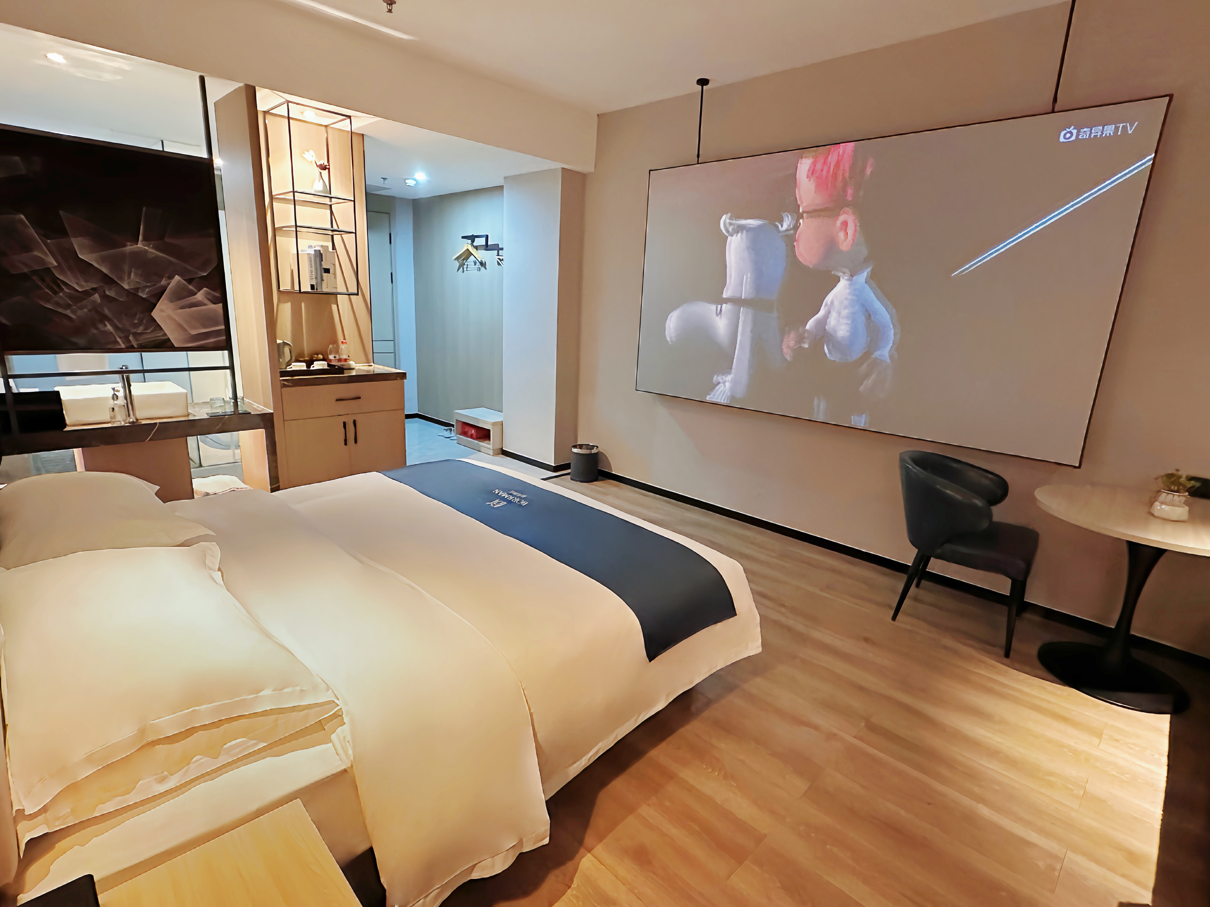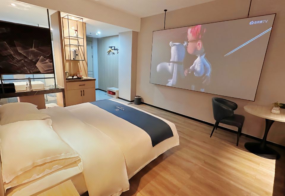 Cinema Double Bed Room (120-Inch 4K Screen + Extensive Film Library)