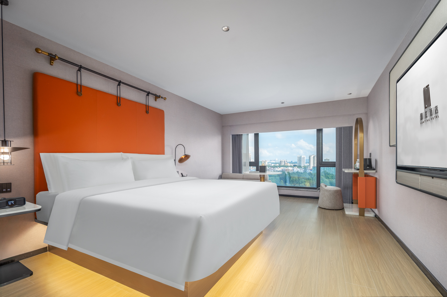 智能高级大床房(全景落地窗+全房型65寸大投屏电视)