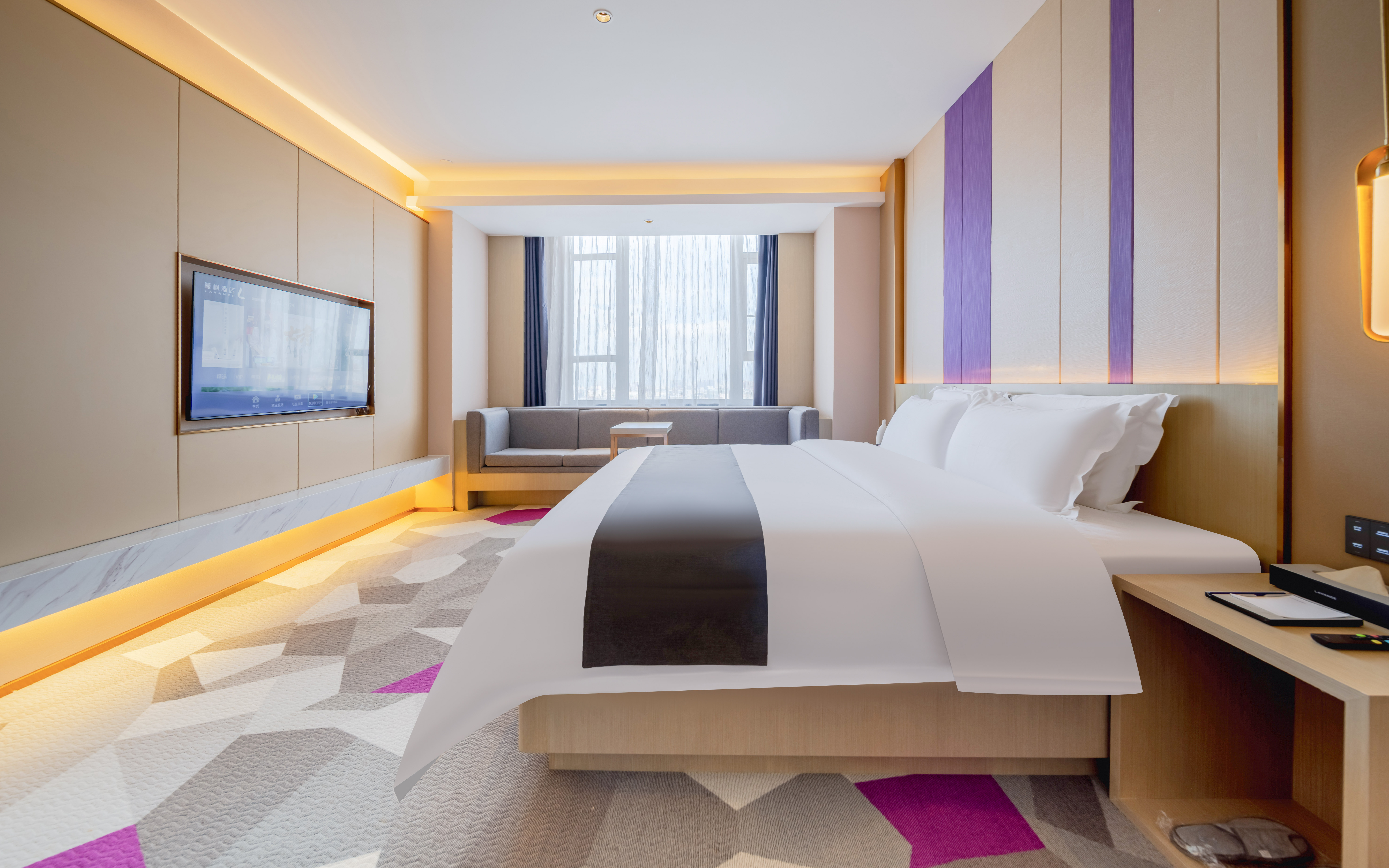 Pure Natural Double Bed Room With Executive Desk, Smart Projection&High-End Custom Mousse Mattress