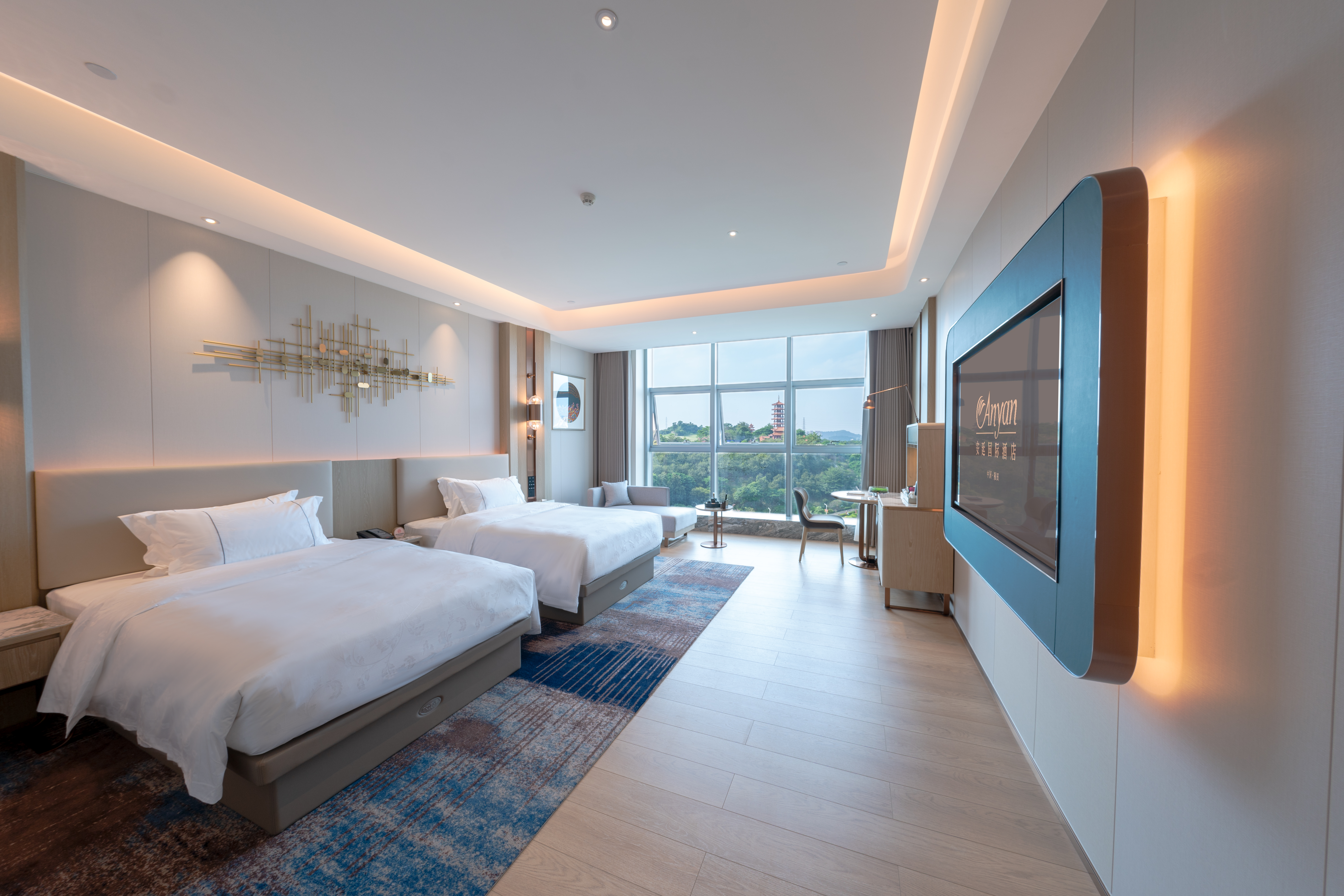 豪華雙床房(全景落地窗+功夫茶具)