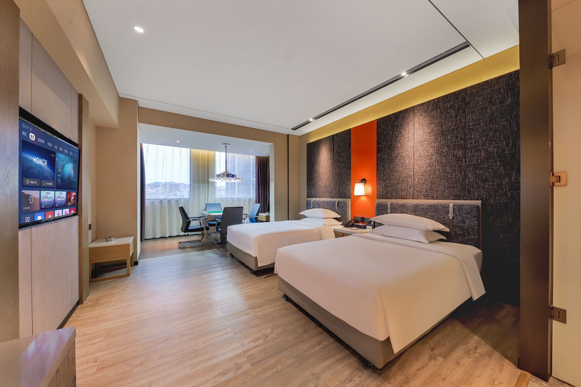 棋牌雙床房(舒適助眠床墊+大玻璃窗+衞生乾淨+冰箱+智能電視)