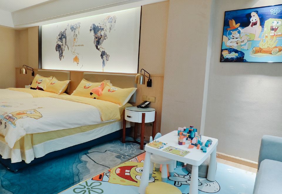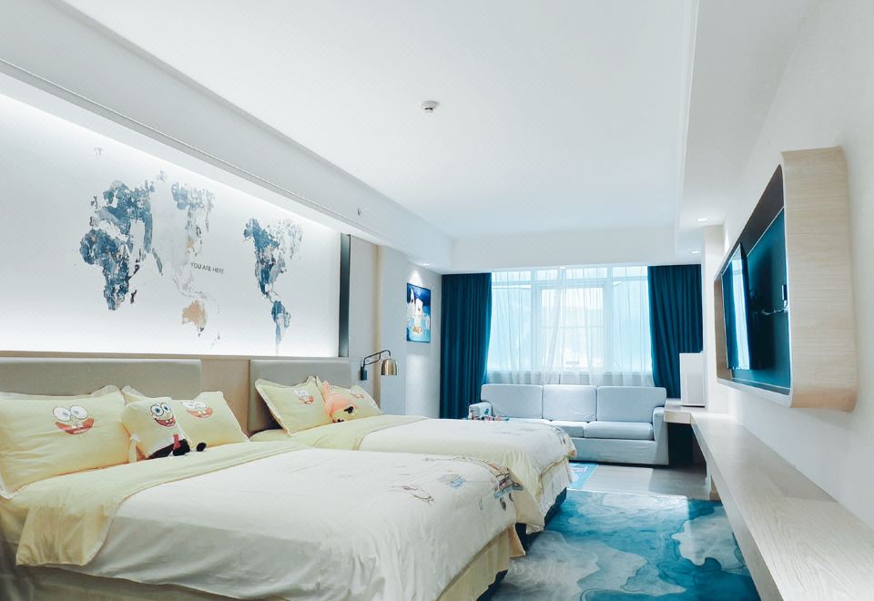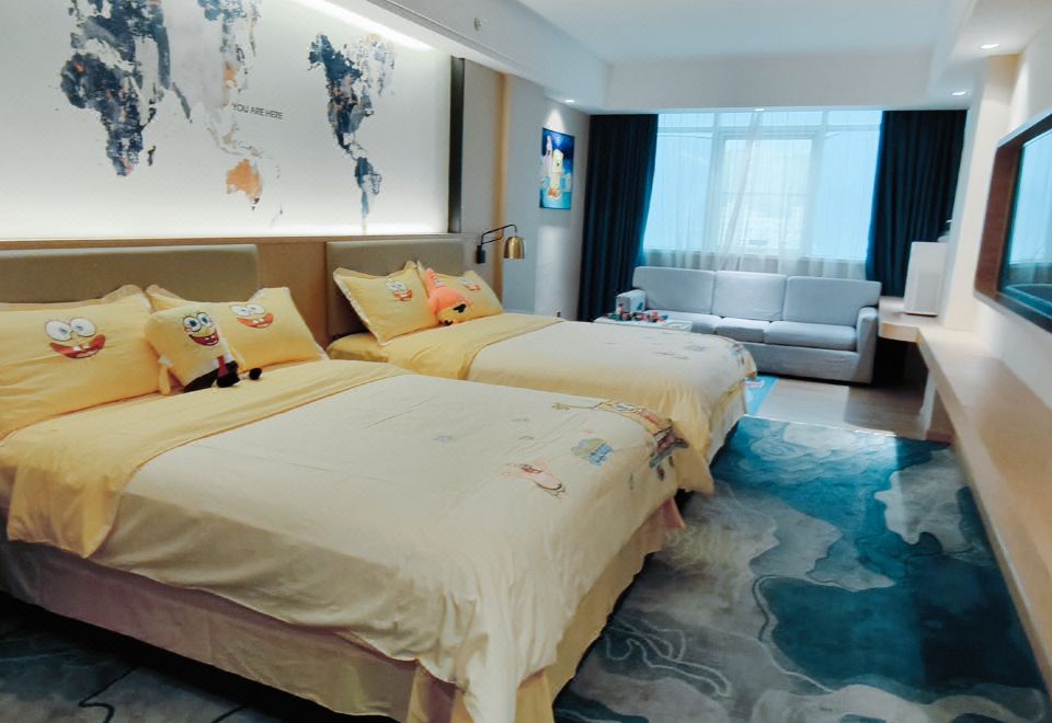 海綿寶寶親子主題雙床房(深度睡眠床墊+全身鏡+空氣凈化器+浴室化粧鏡)