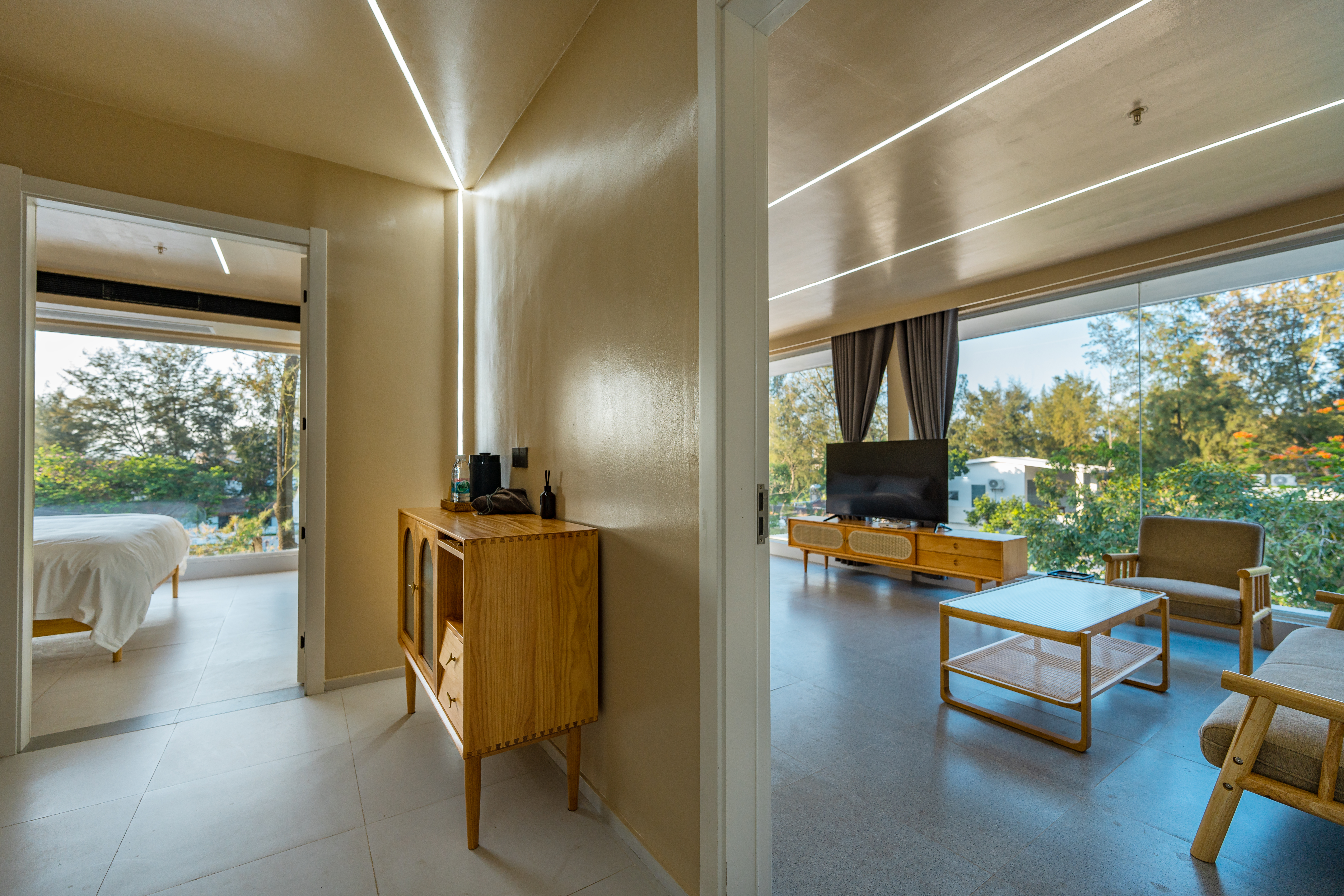 豪华双卧套房+园景落地大窗