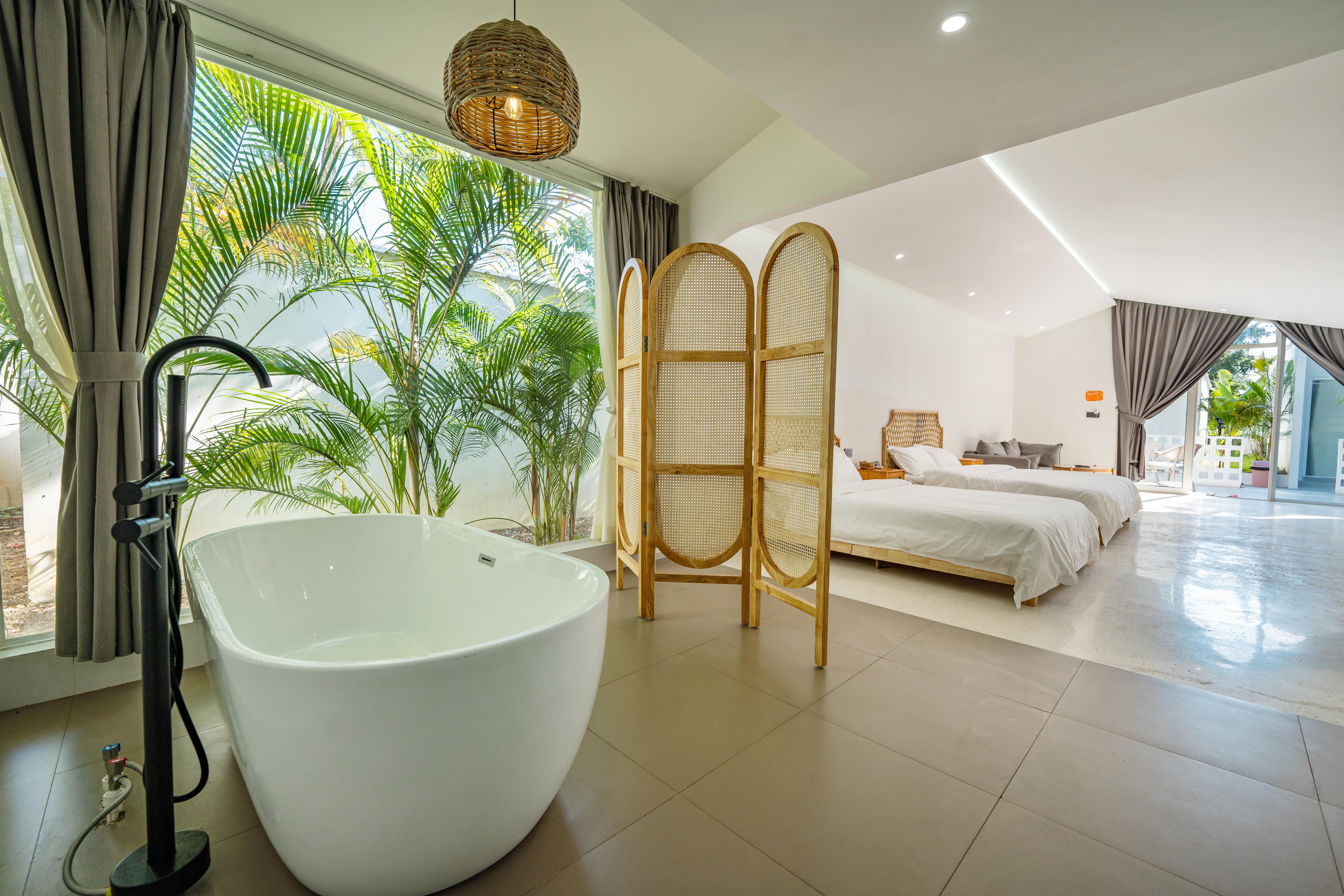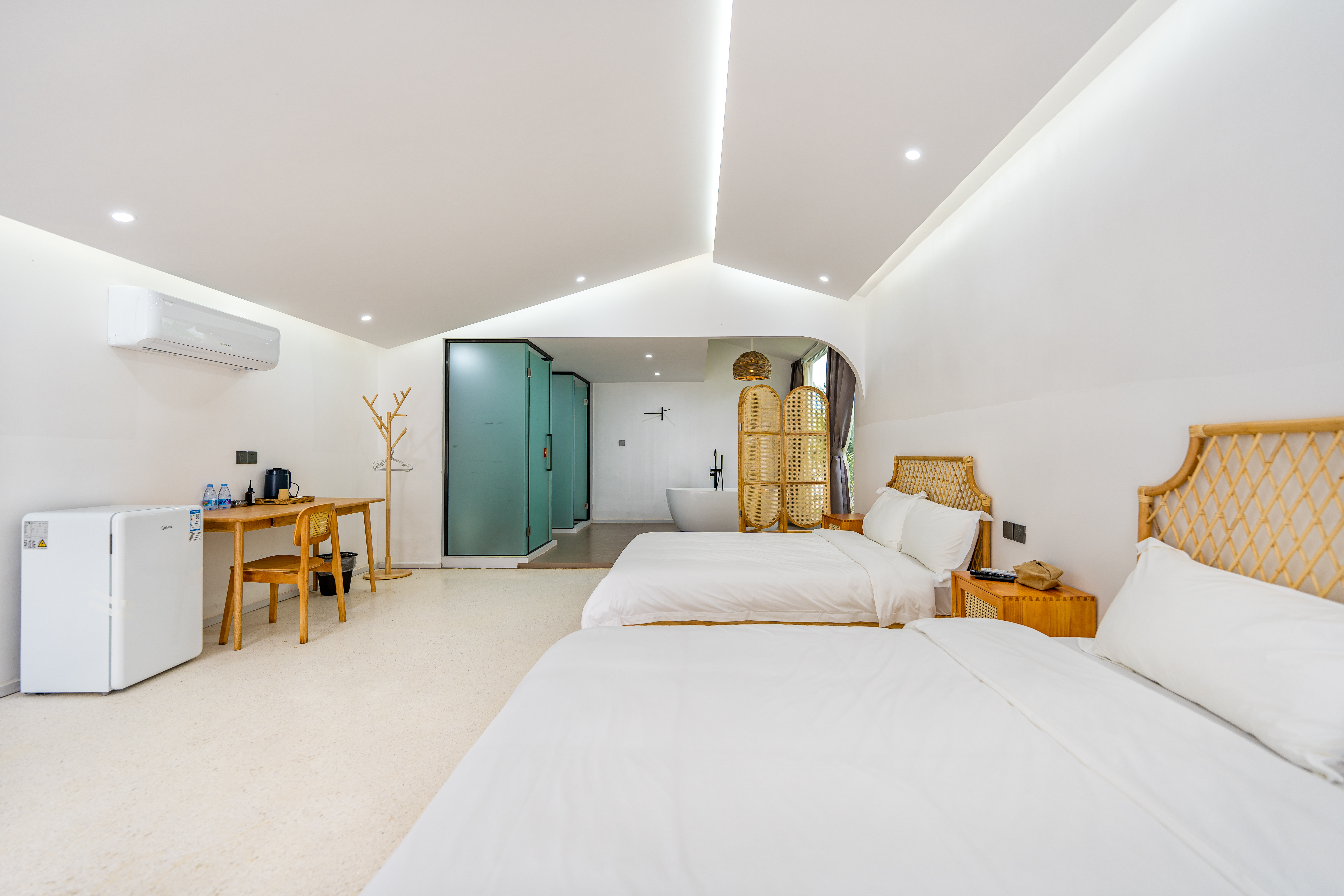 独栋亲子双床房+独立小院+轻奢浴缸+迷你冰箱+户外桌椅
