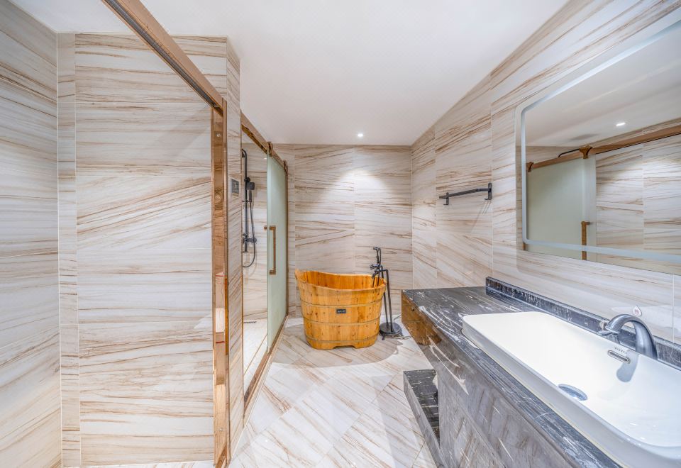 Zen Tatami Room With Tea Area, Lcd Tv, And Wooden Tub