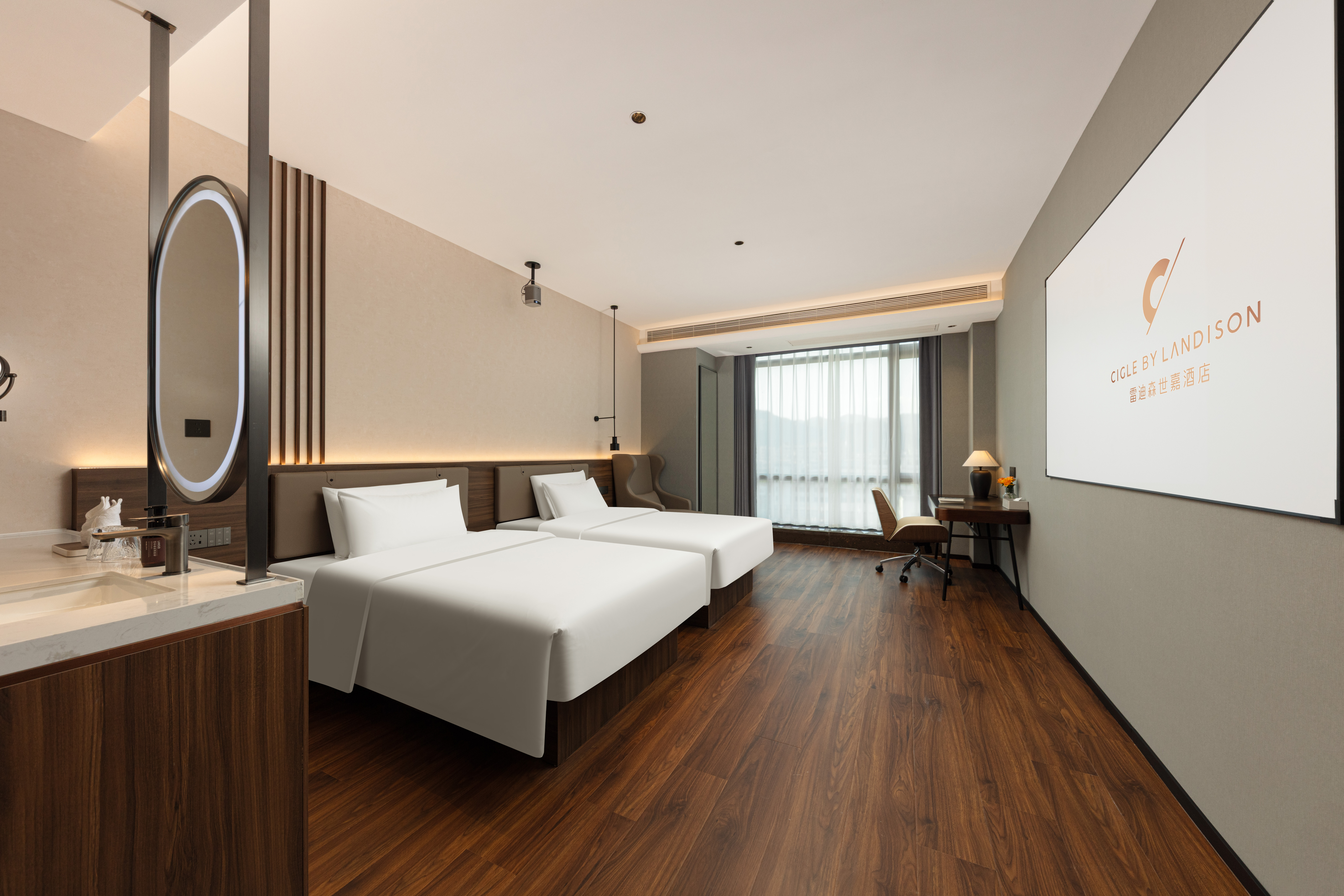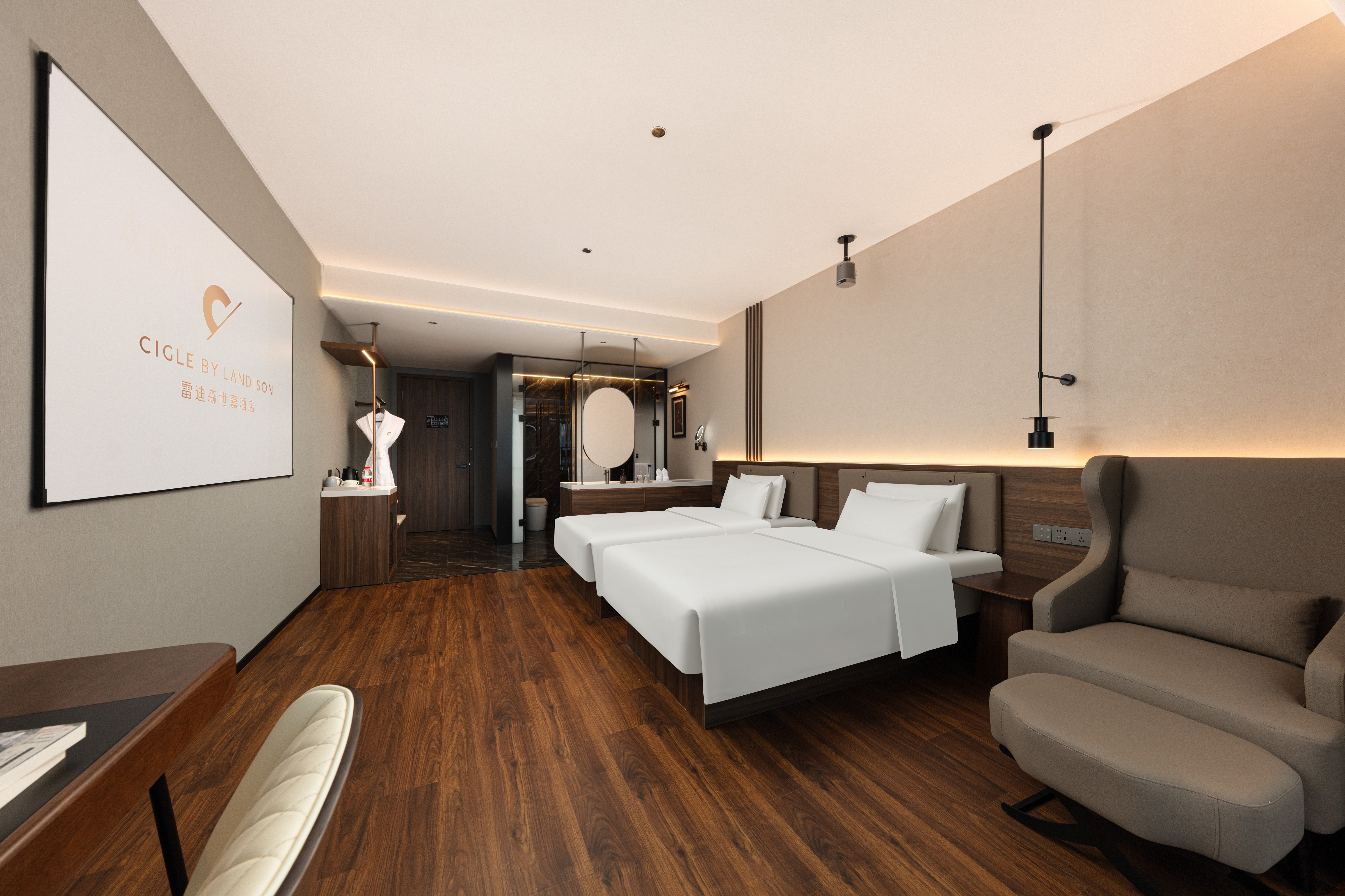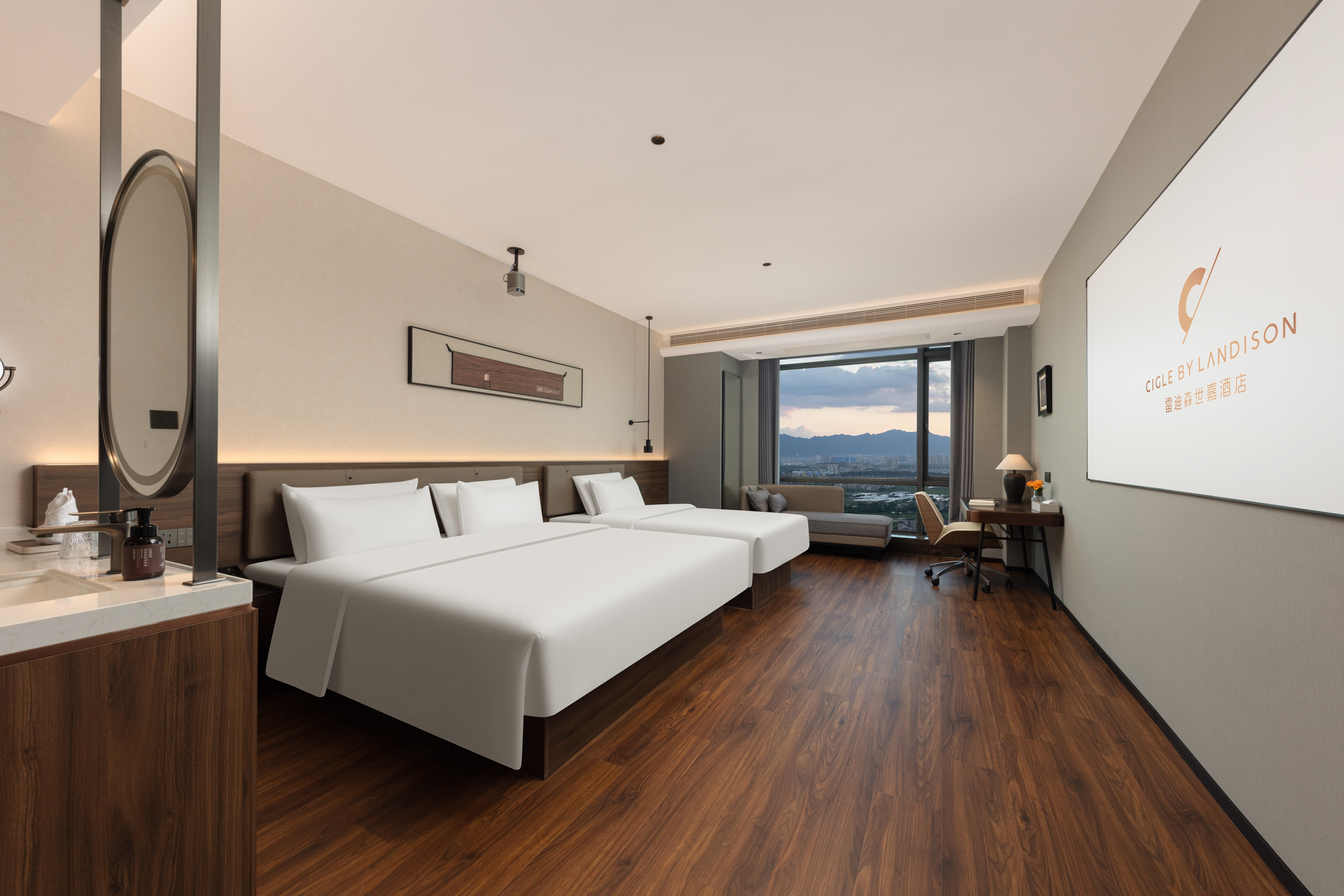 心怡影院双床房(极米投影+迷你冰箱+全景落地窗)