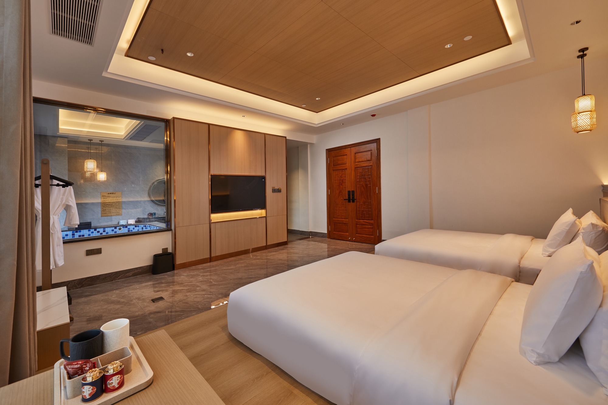 雅致温泉双床房(入户私汤+榻榻米+TOTO智能衞浴)