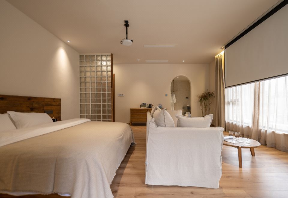 听风上汤大床房270o超大观景阳台(露台私汤·真火壁炉·全屋地暖·Marshall音响)