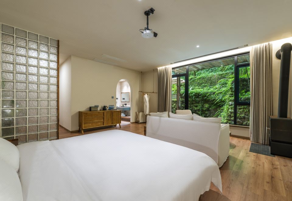 细雨·山景上汤大床房(露台私汤·真火壁炉·全屋地暖·Marshall音响)