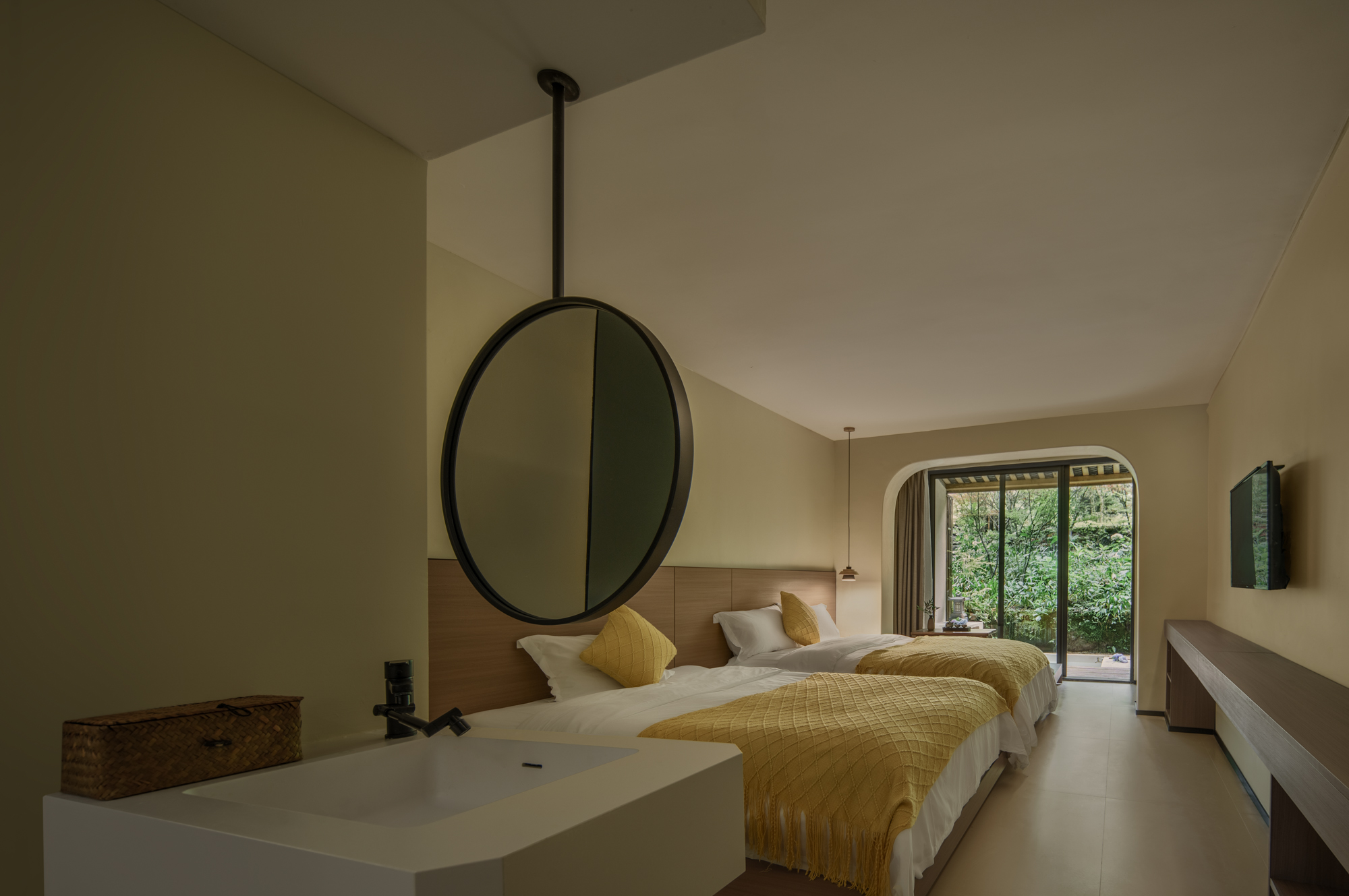 山景庭院私汤双床房—庭院独立私汤+中央空调+智能马桶