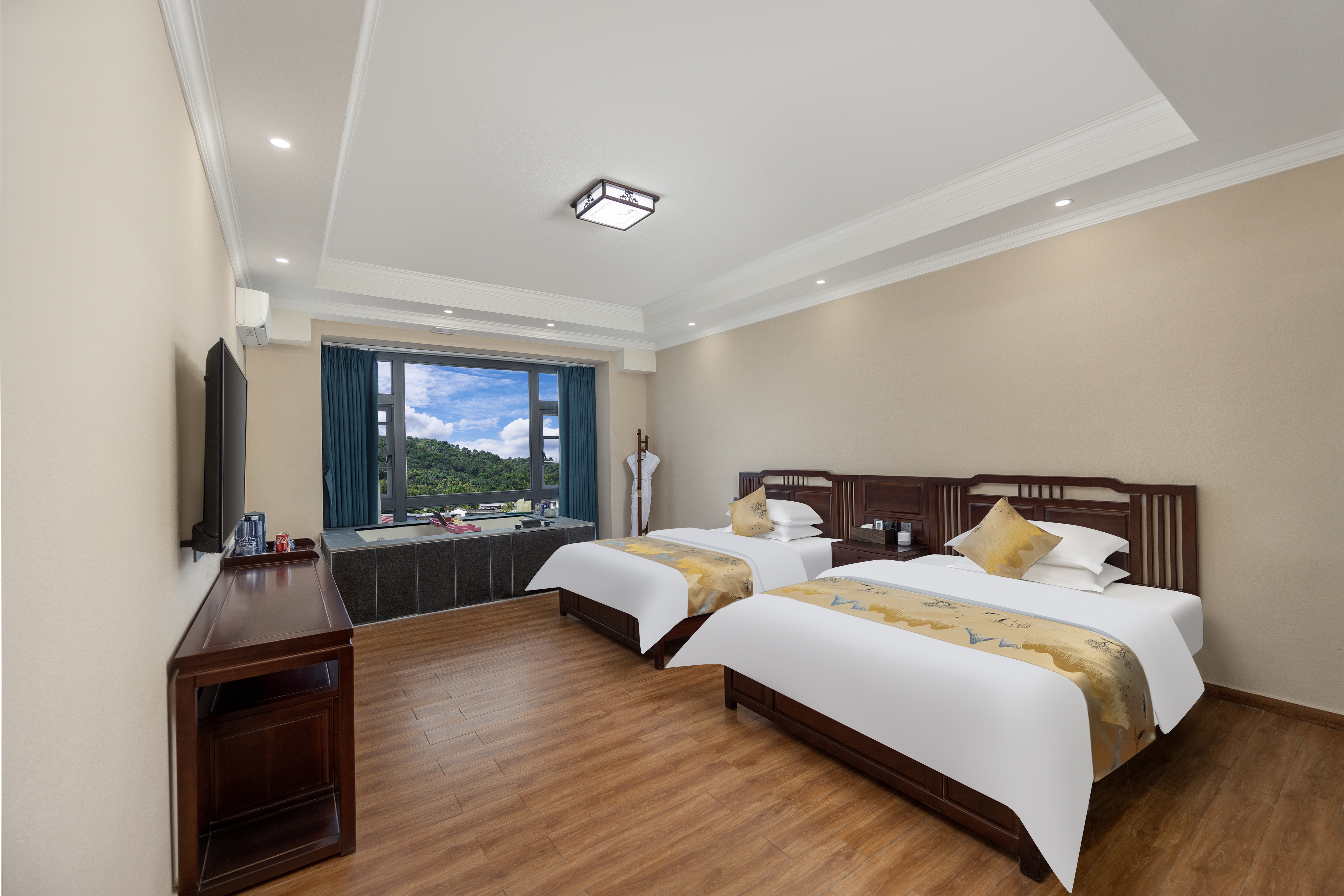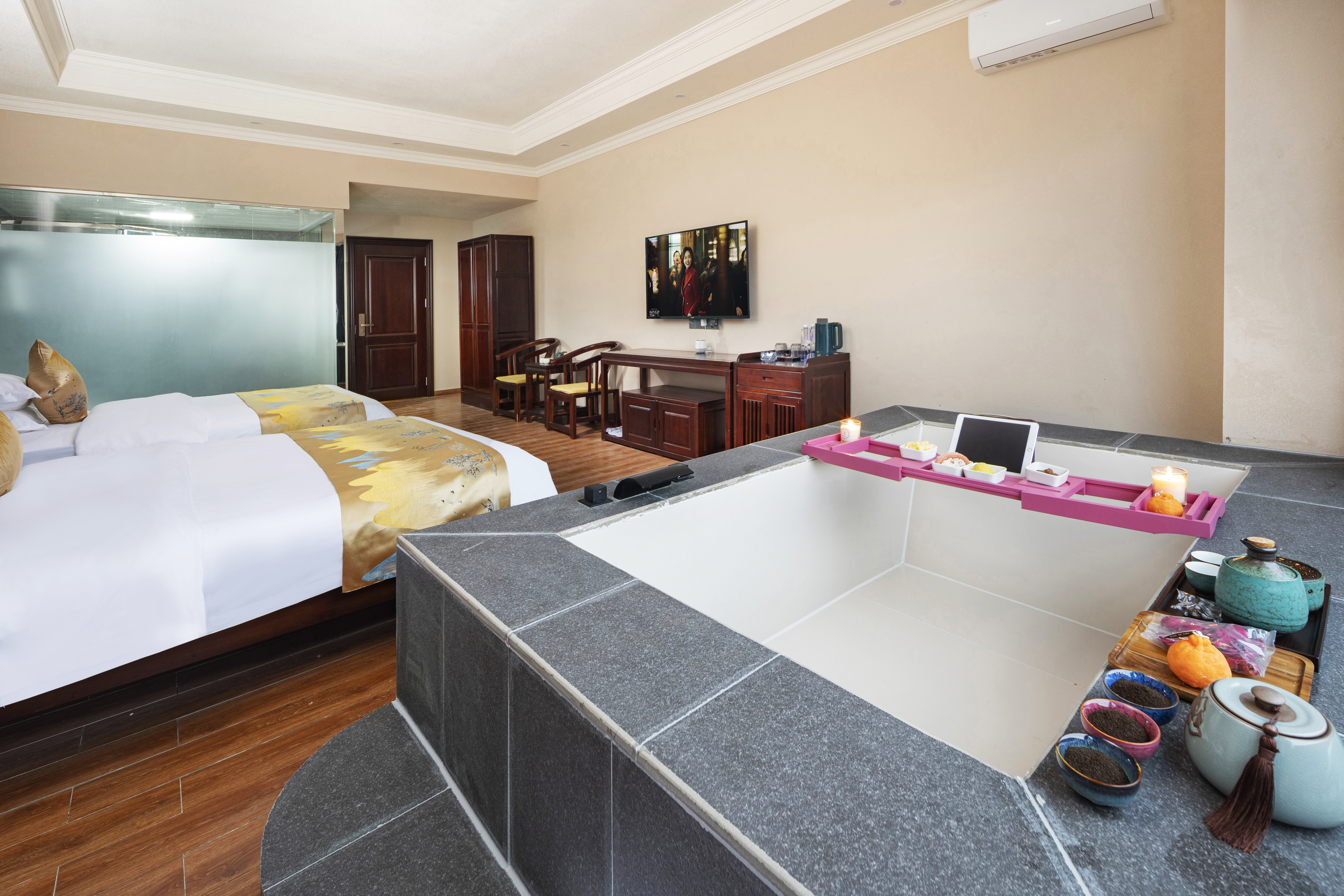 Wudao Xianyun Private Hot Spring Two Double Beds Room (Double Hot Spring + Smart Guest Control + Latex Mattress)