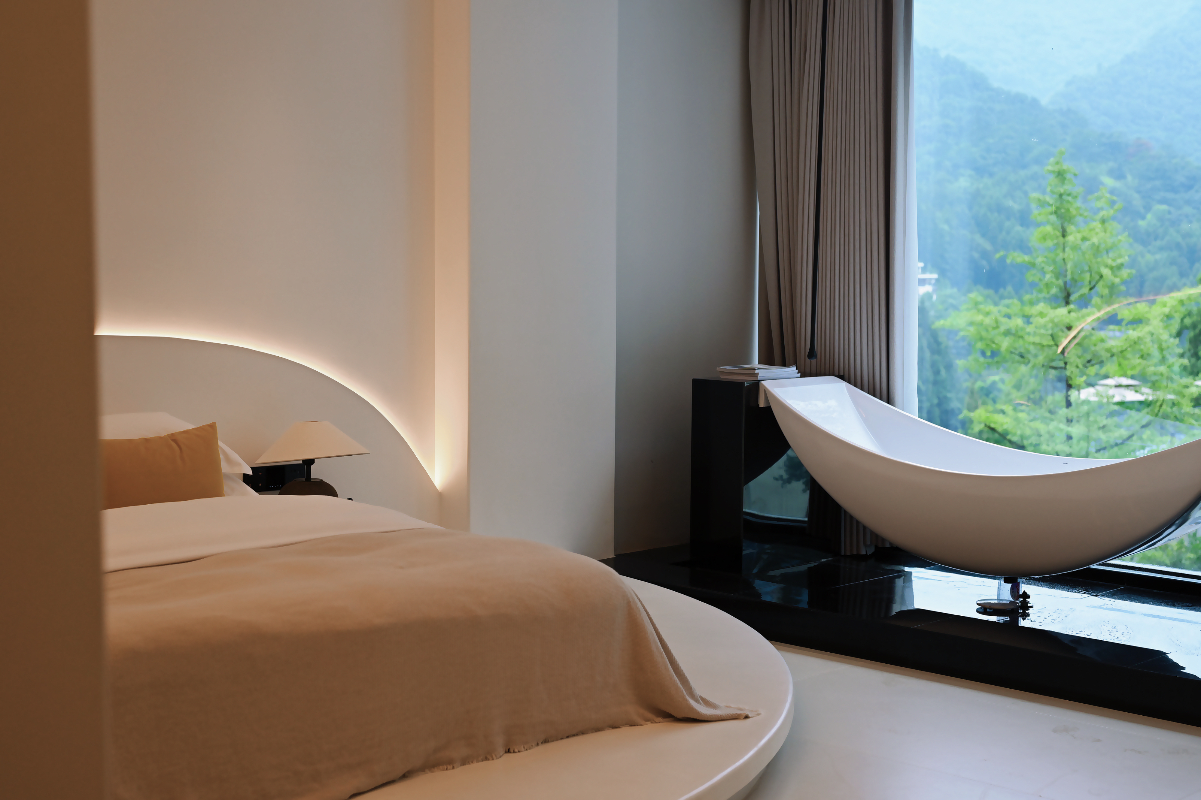 月半·私汤大床房「中央空调·圆形私汤·独享泳池景观」