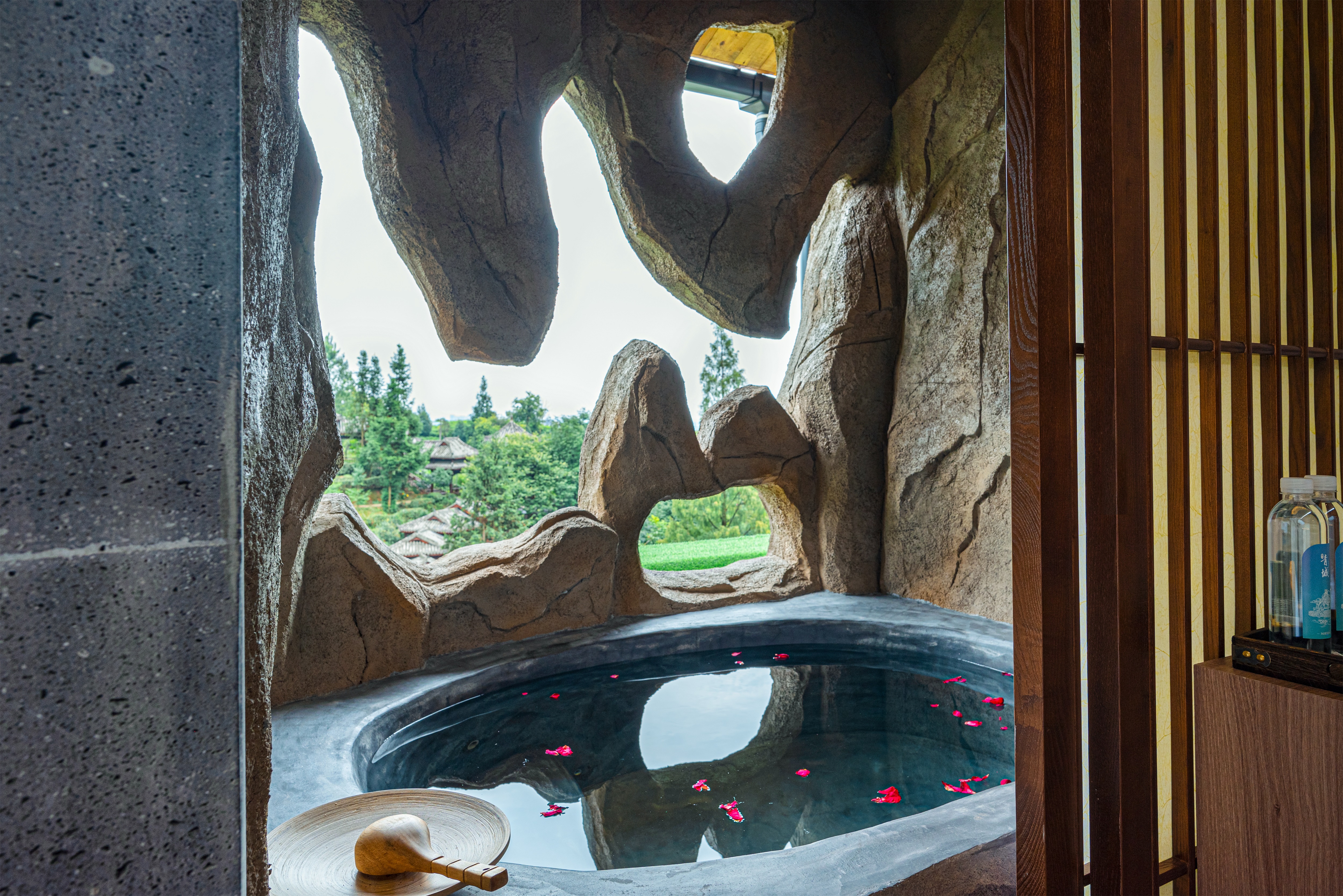 Tea Mountain-View Cabin Villa With Private Hot Spring And Projector Double Bed Room[Cave Private Hot Spring + Smart Guest Control + Large Screen Projection]