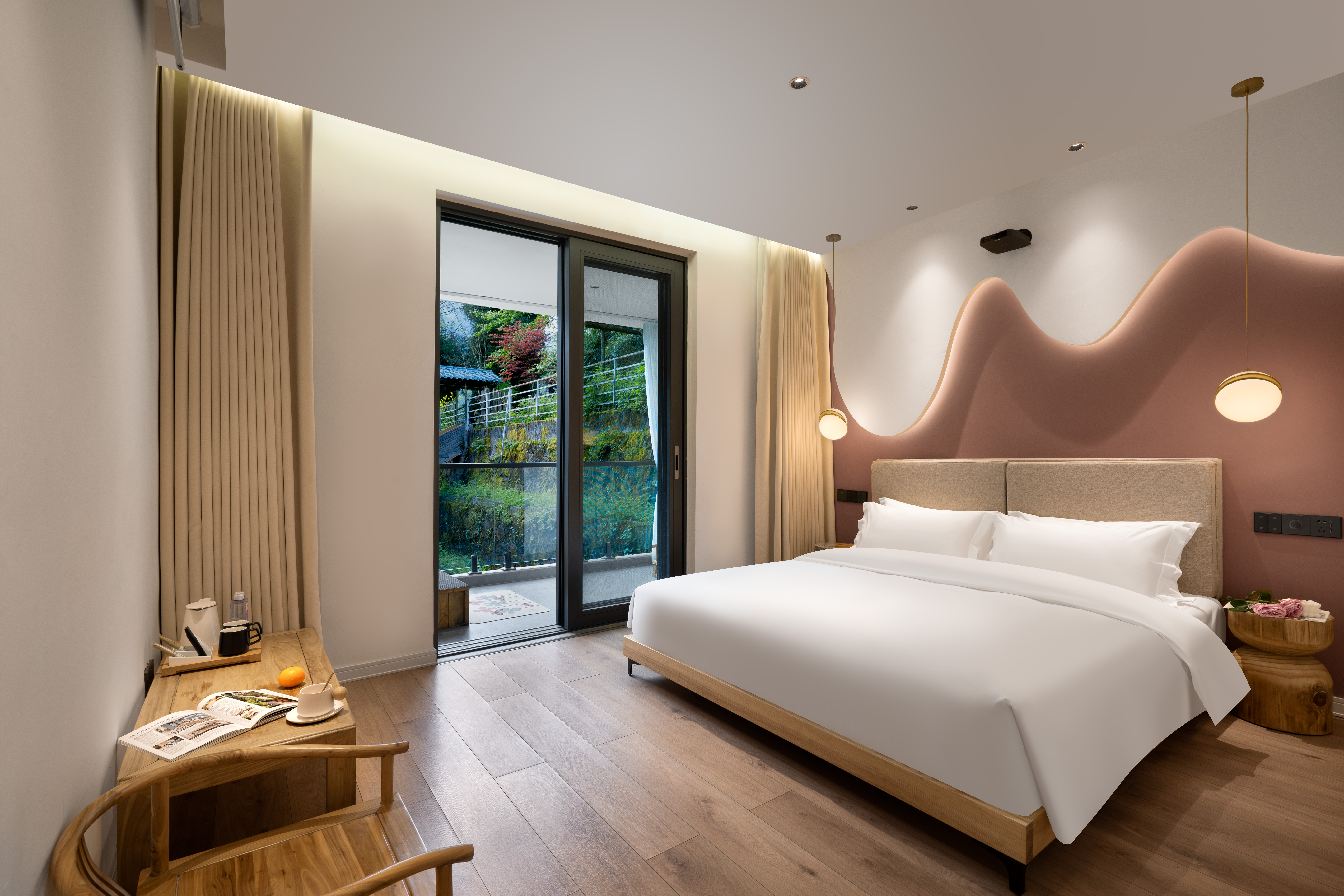 秋池·山景私汤阳台双床房「高清投影+全屋地暖」