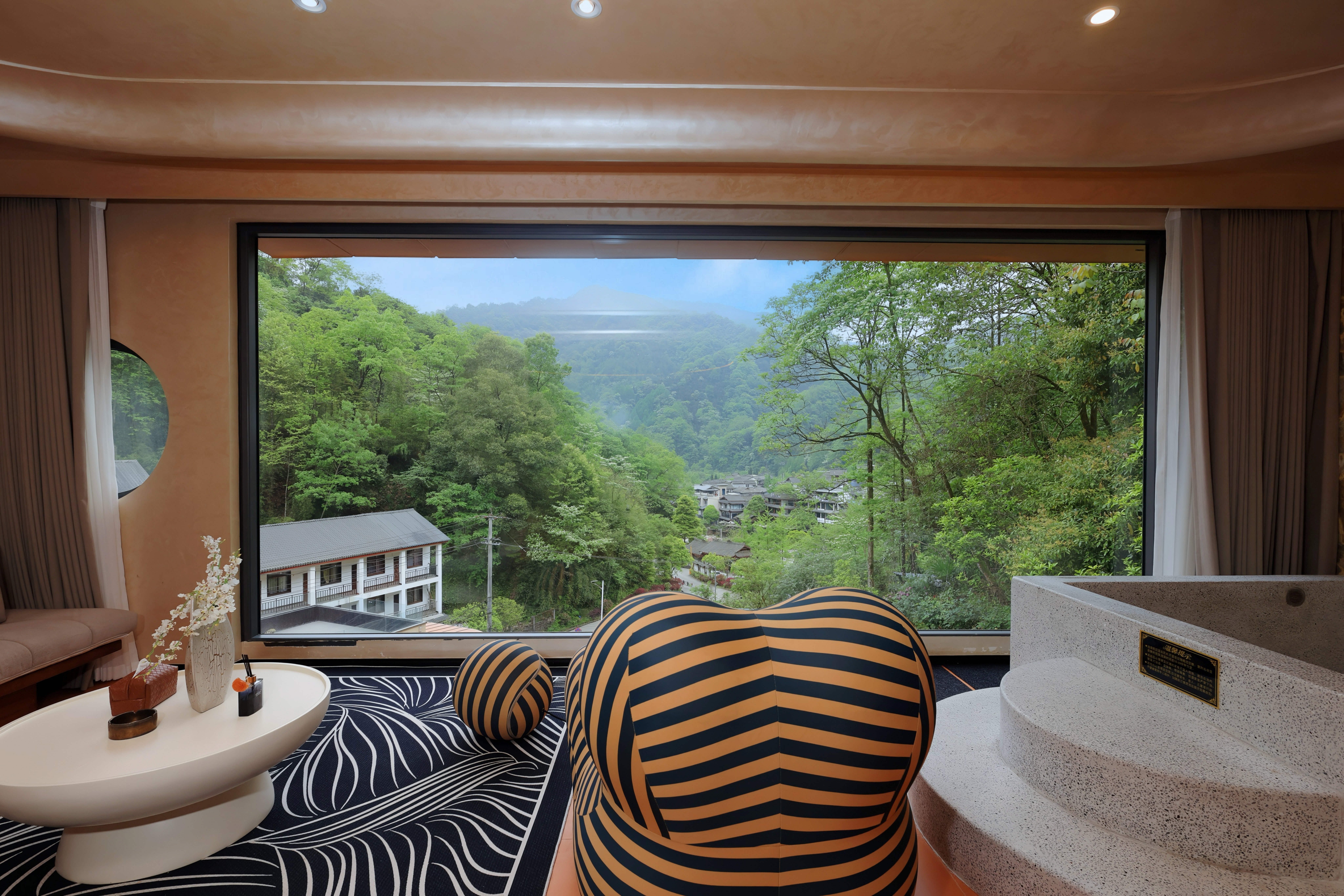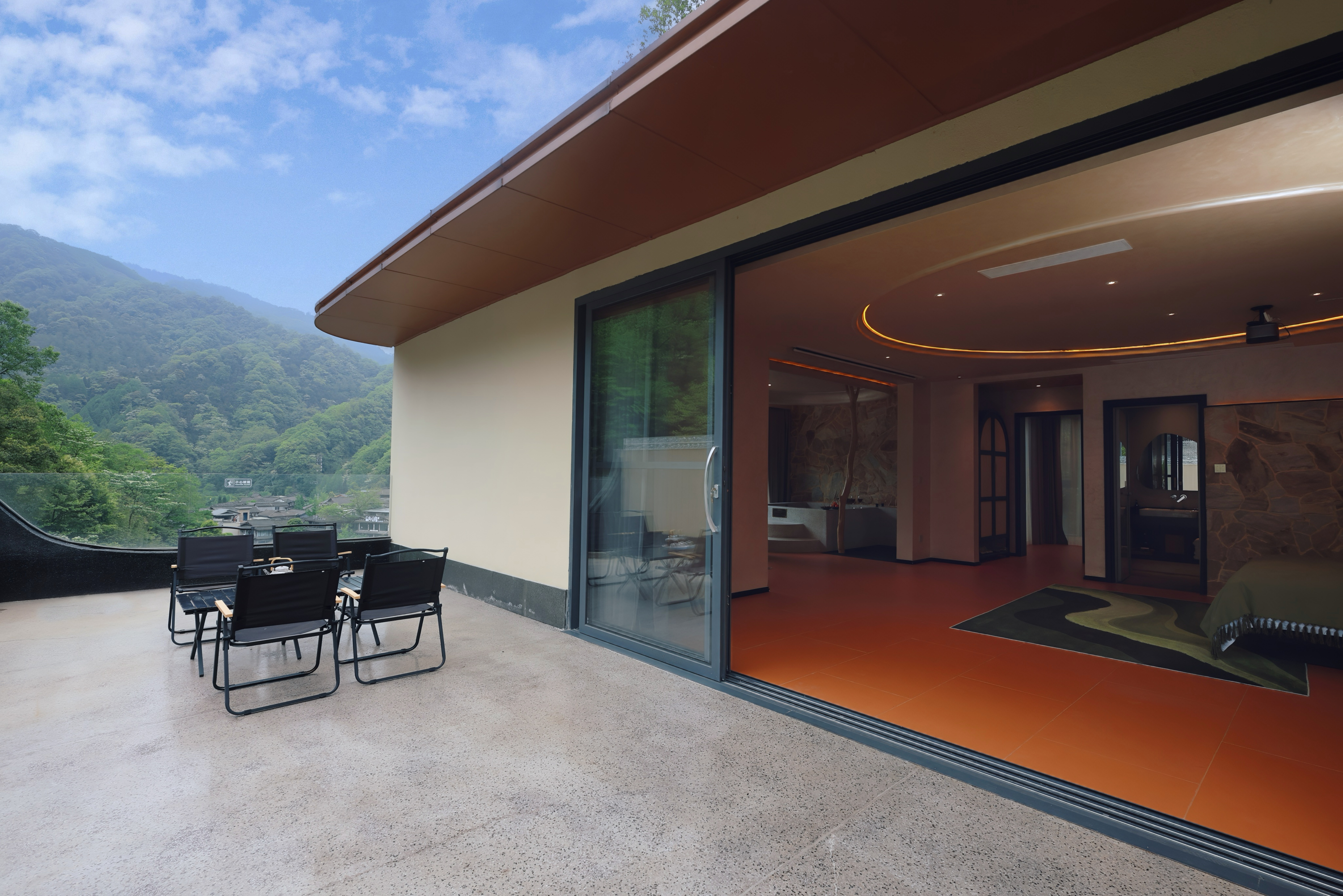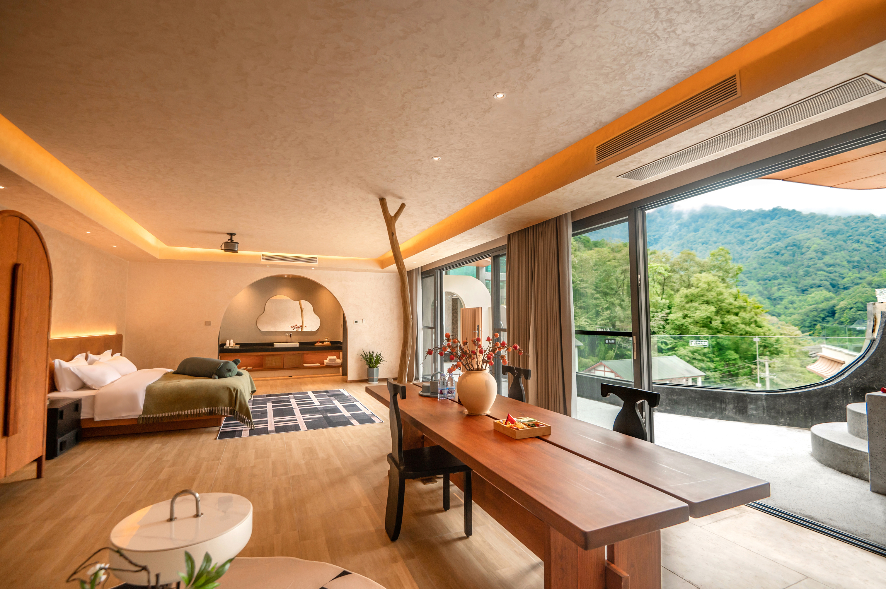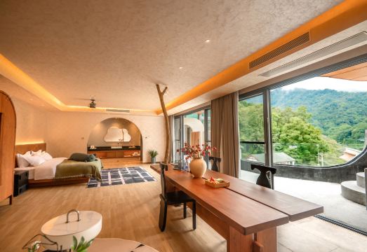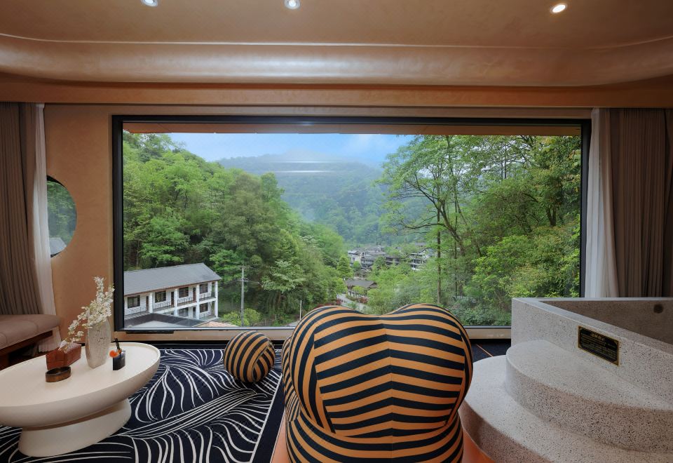 蝉羽·270°观山私汤双床套房(全屋地暖+俯瞰古镇露台)