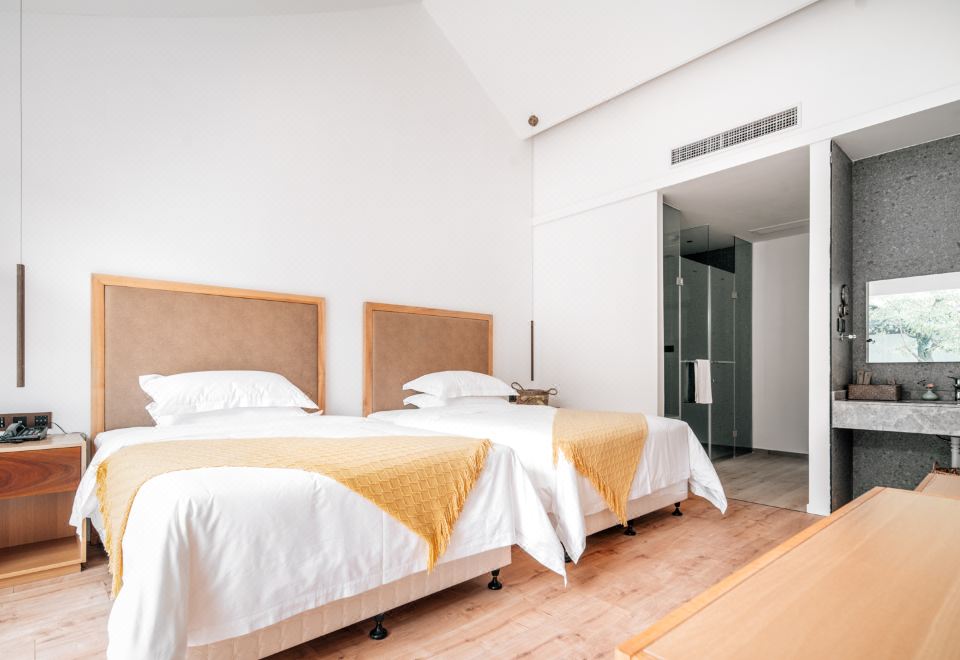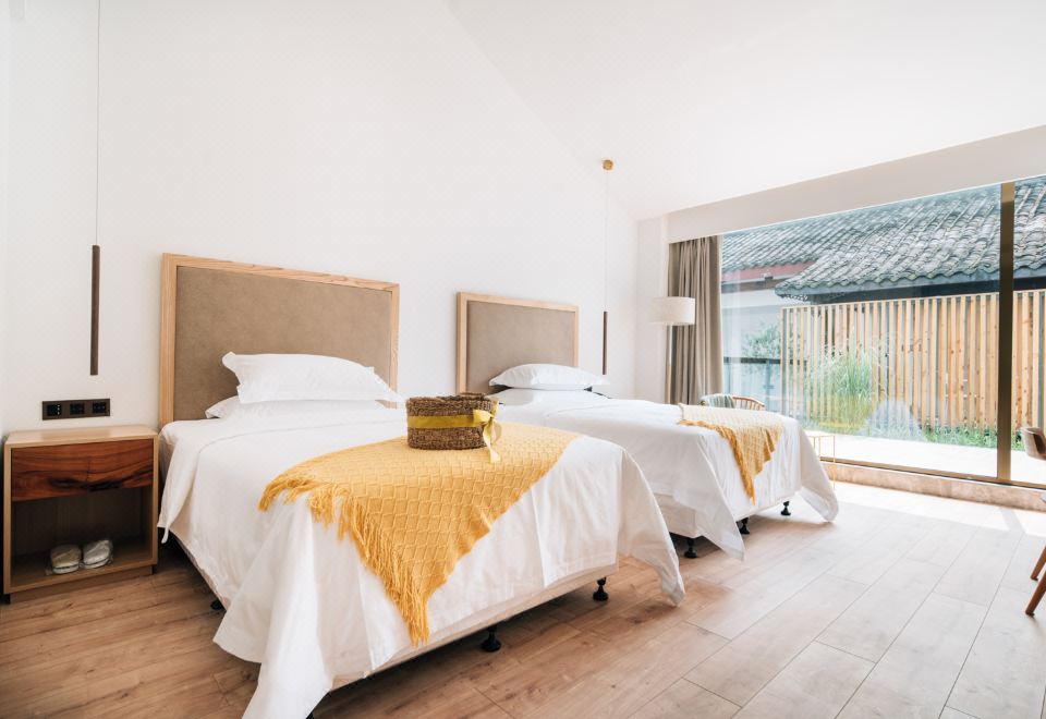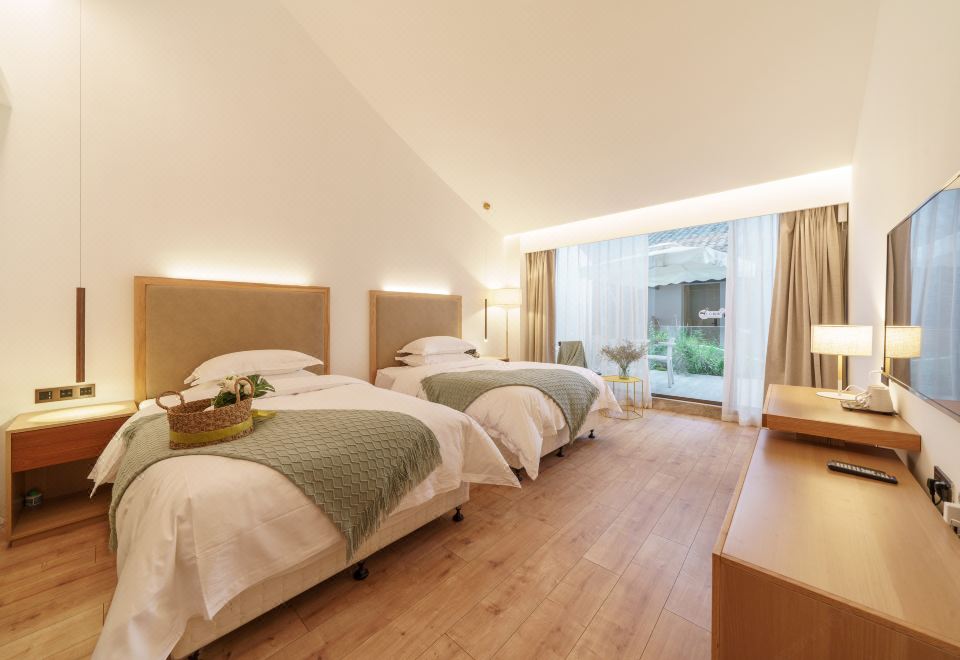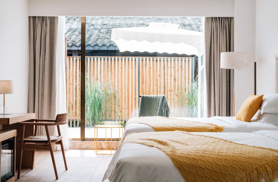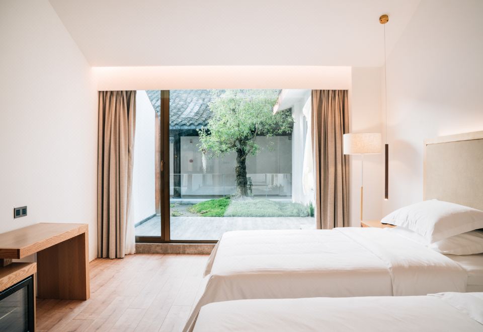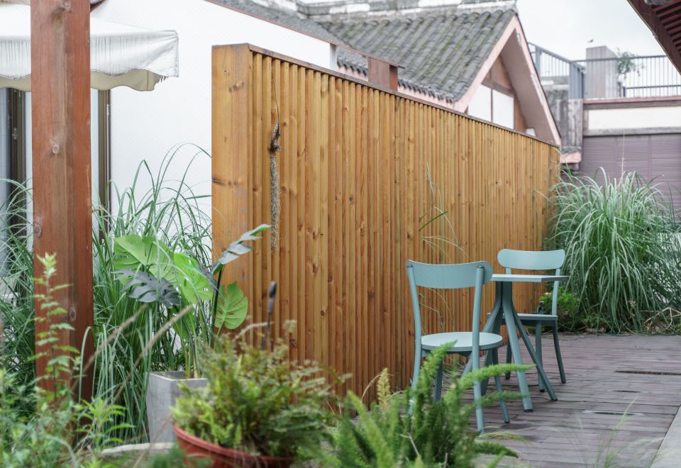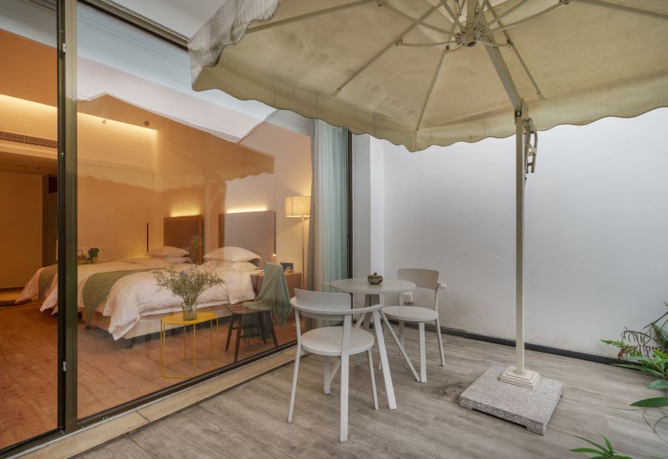 雨下花园露台景观双床房